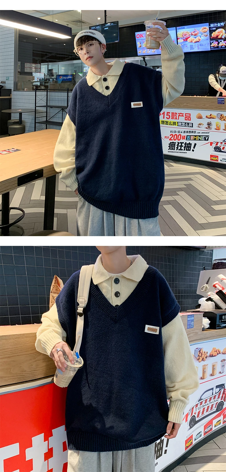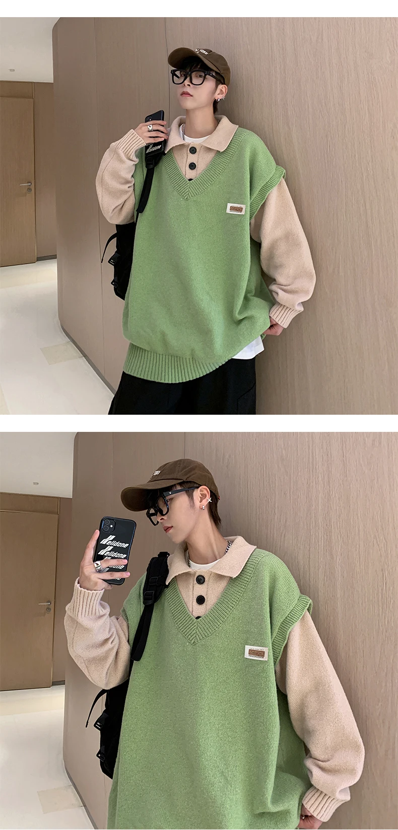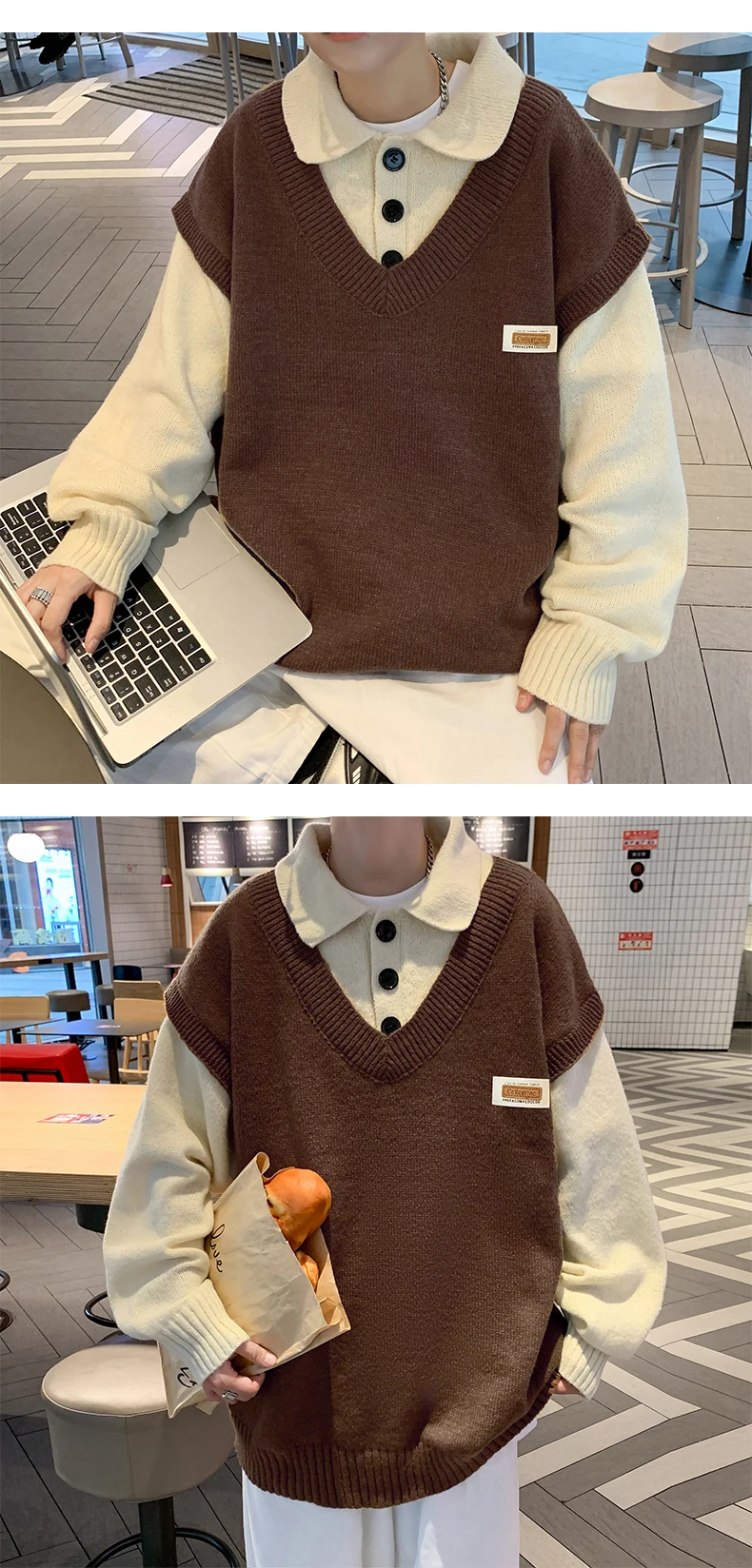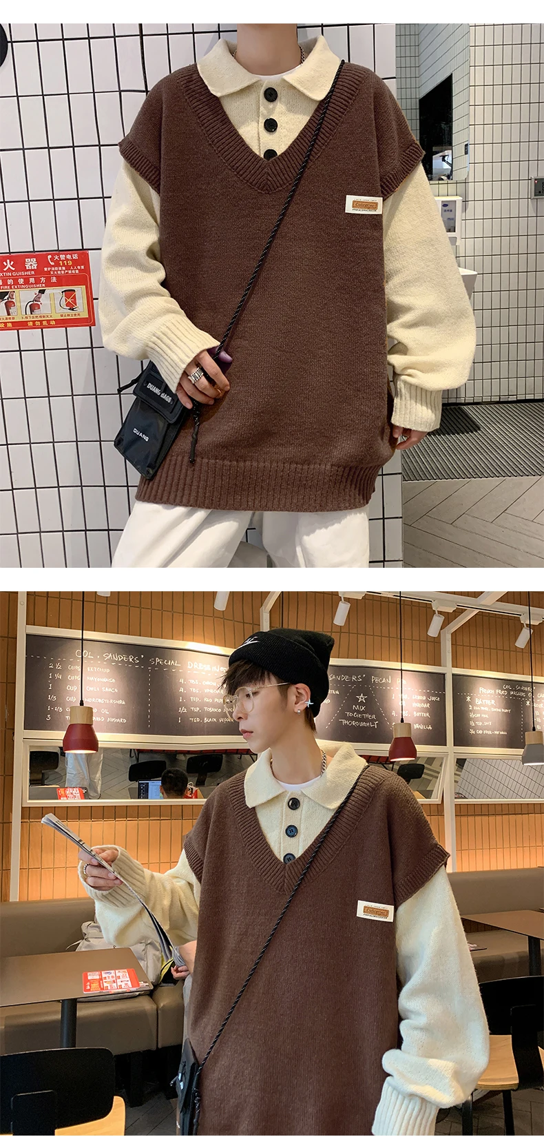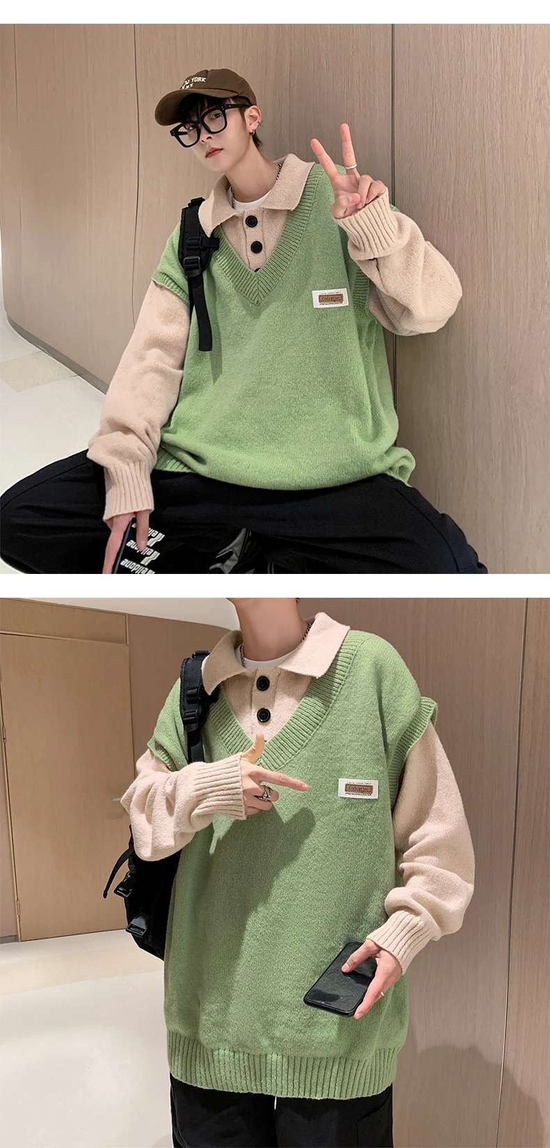 Wiaofellas Fake two collar sweater men winter style lazy coat loose knit in autumn and winter