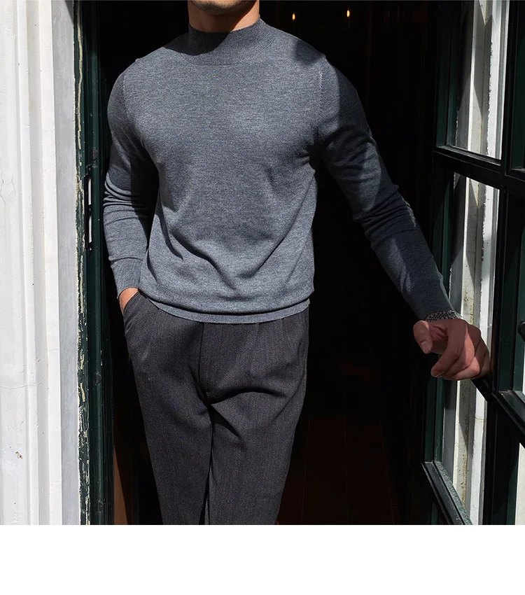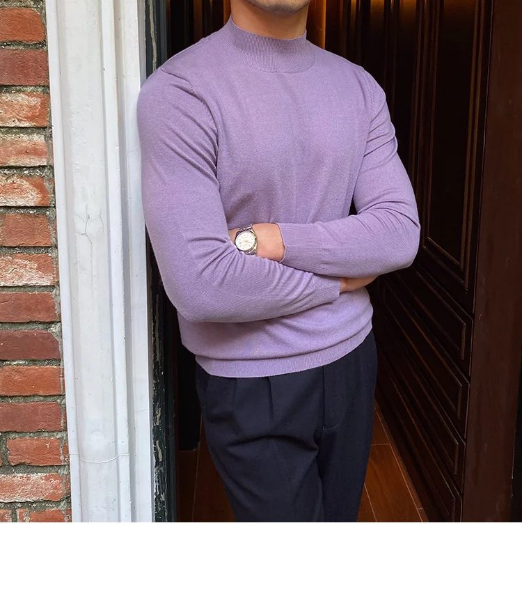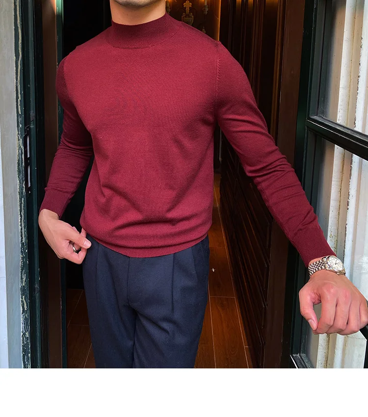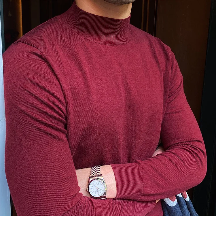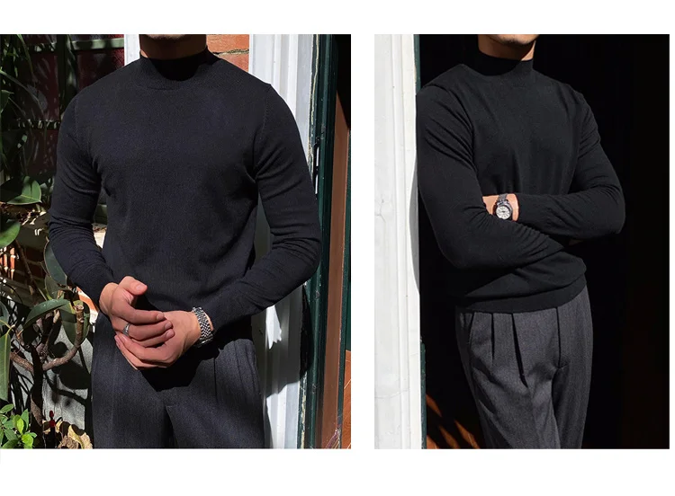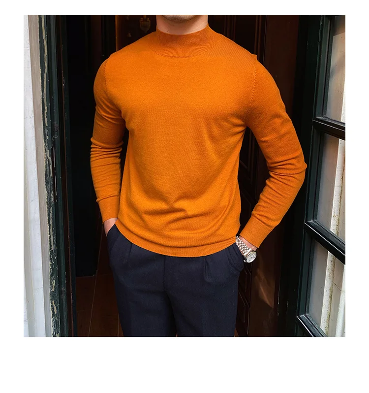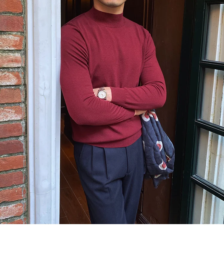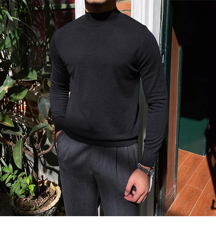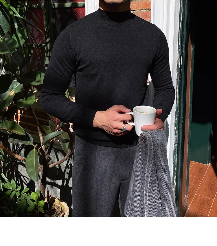 WIAOFELLAS - Fall Wool Half High Neck Knit Casual Knitted Sweater Social Club Outfits Herren Pullover Simple Home Pull Homme Sweater For Men