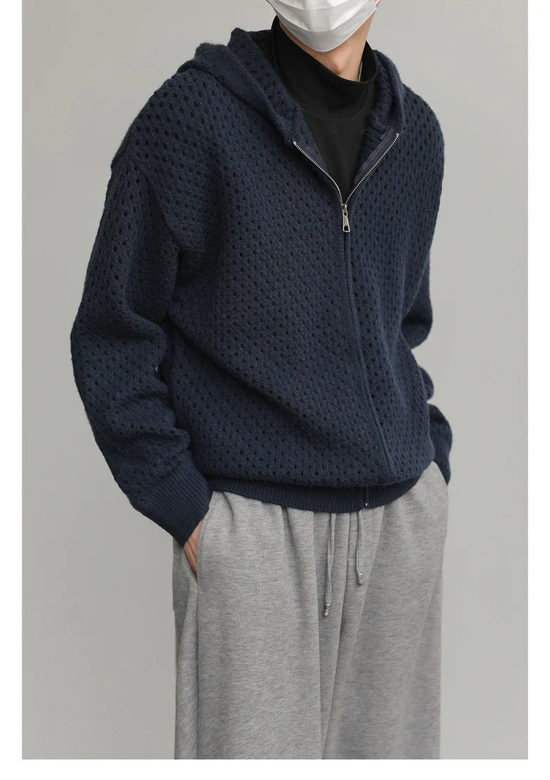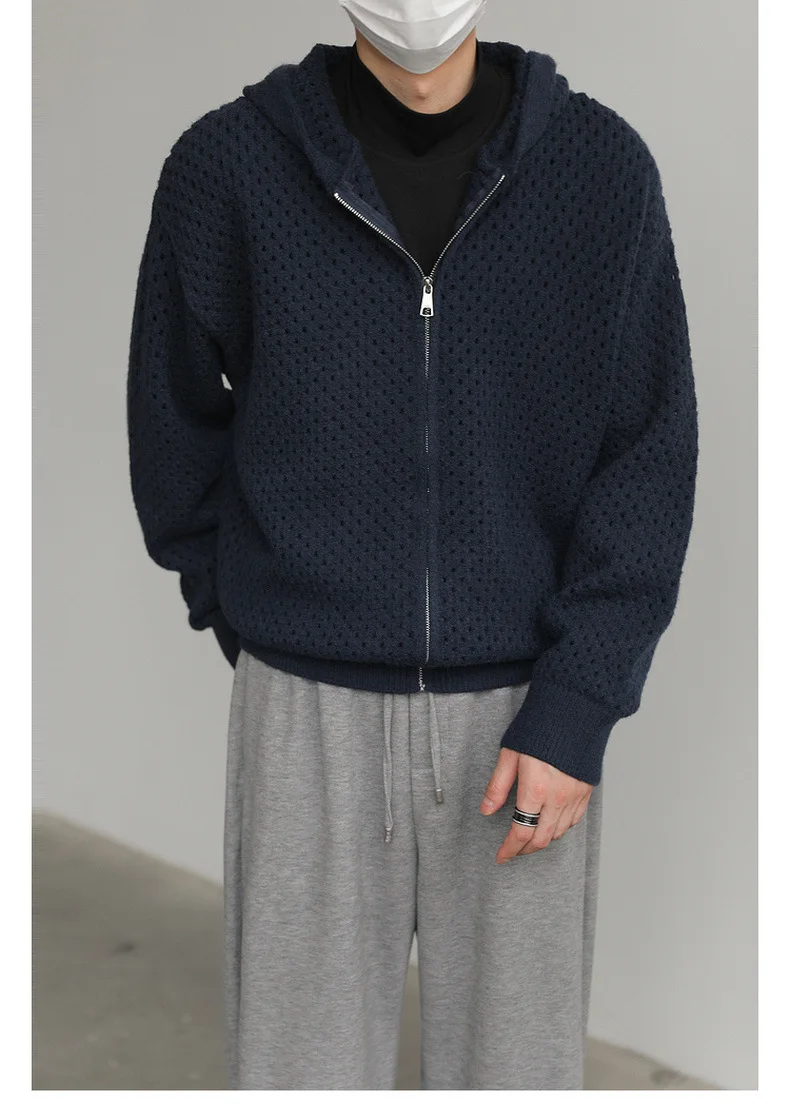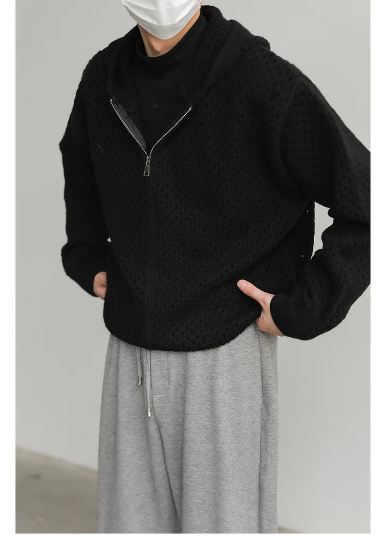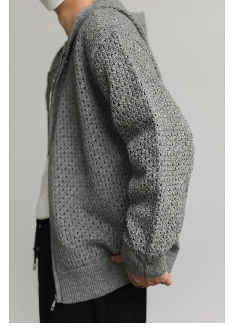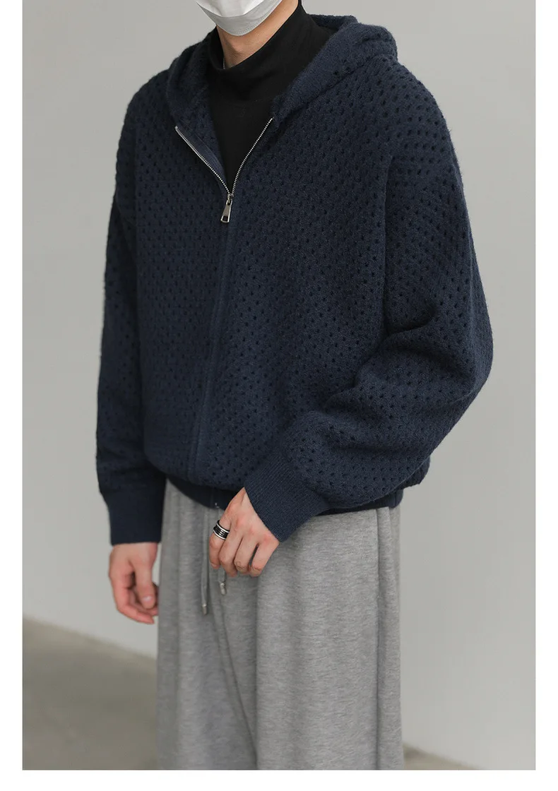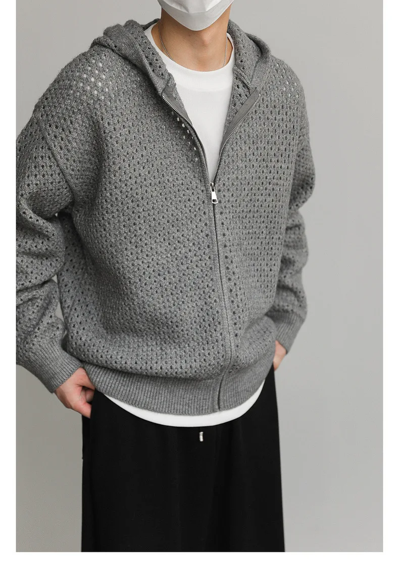 WIAOFELLAS - Hollow Hooded Knitted Cardigan Sweater Men's Spring and Autumn New Couple's Jacket Casual Versatile Fashion Top