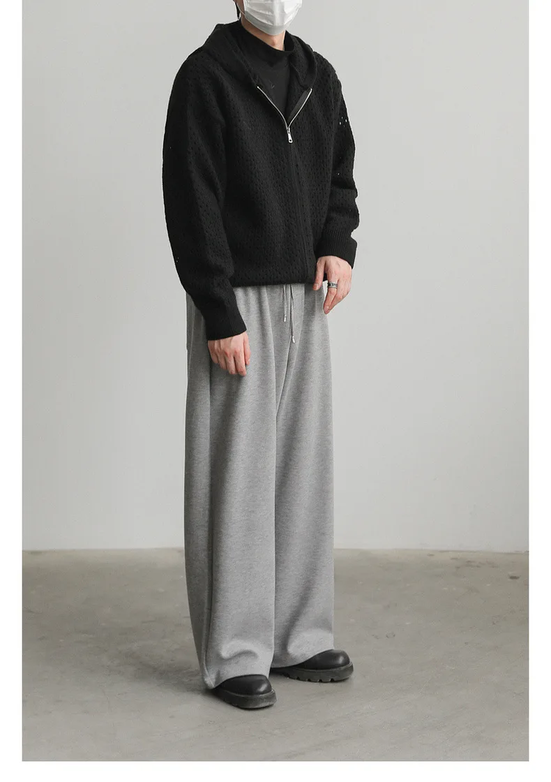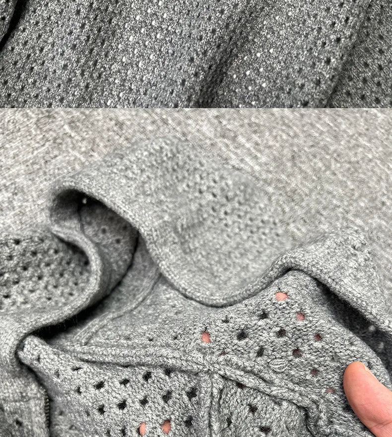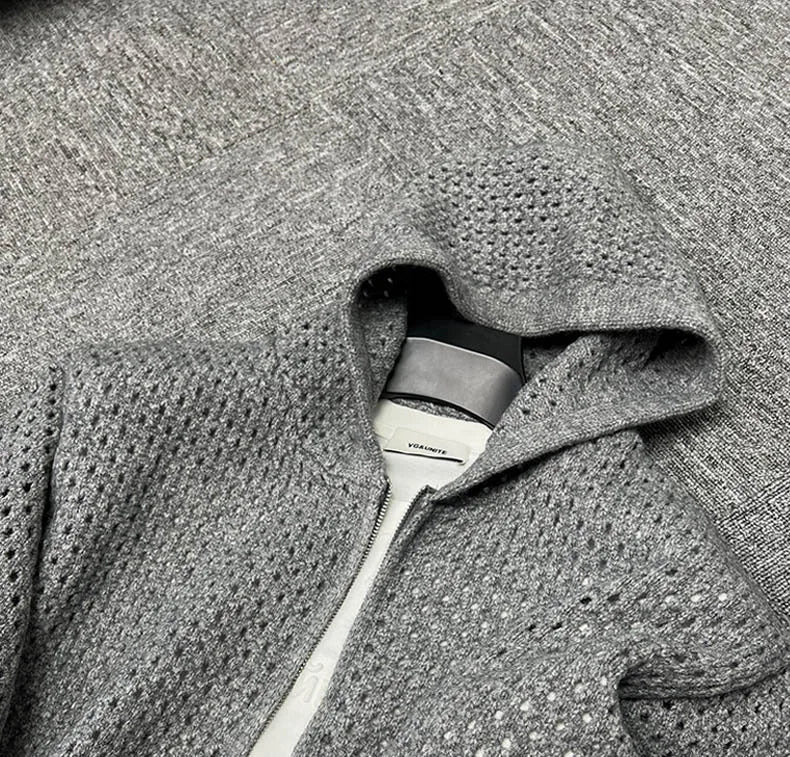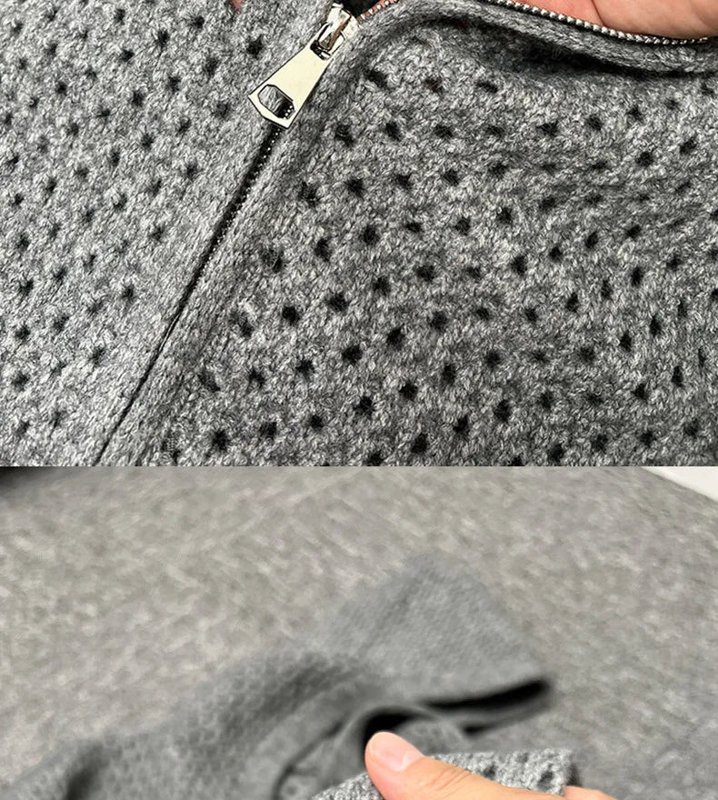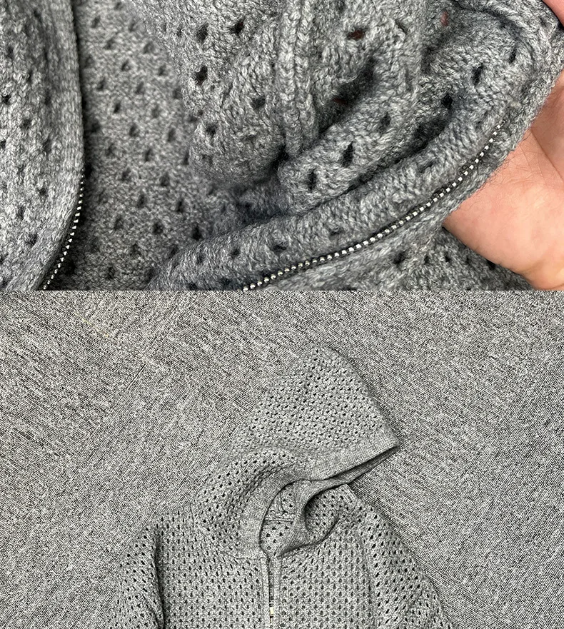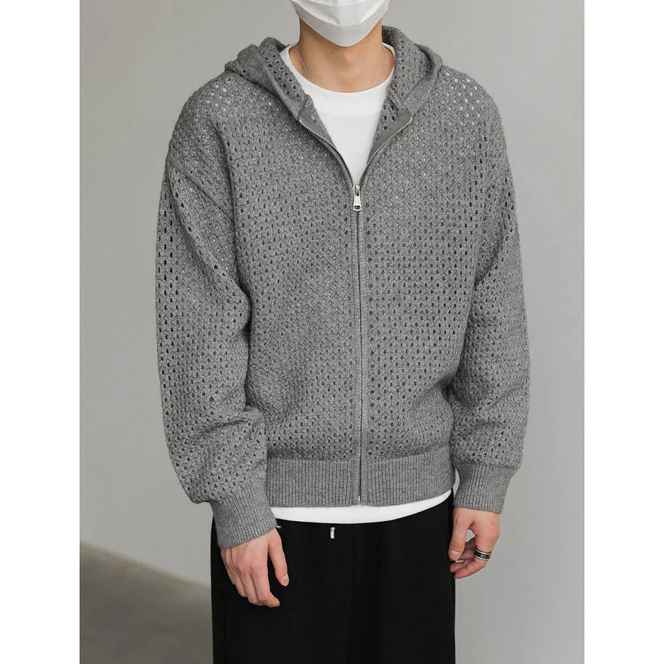 WIAOFELLAS - Hollow Hooded Knitted Cardigan Sweater Men's Spring and Autumn New Couple's Jacket Casual Versatile Fashion Top