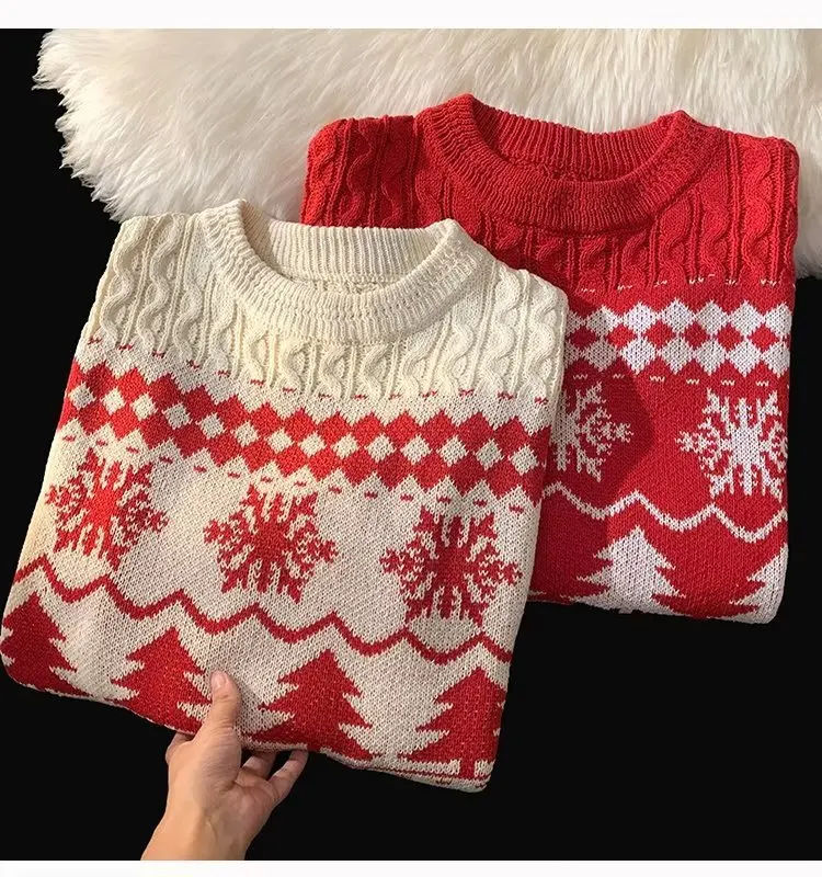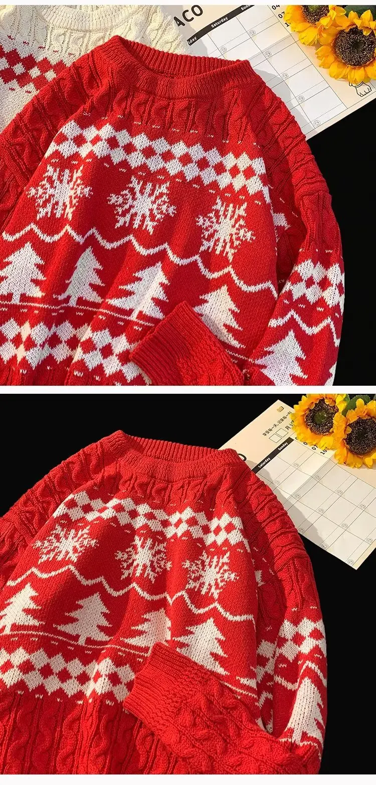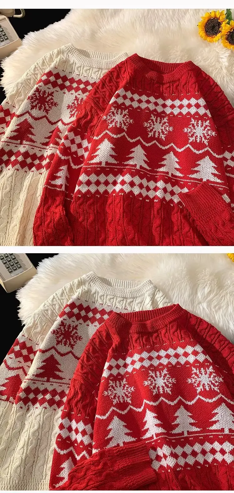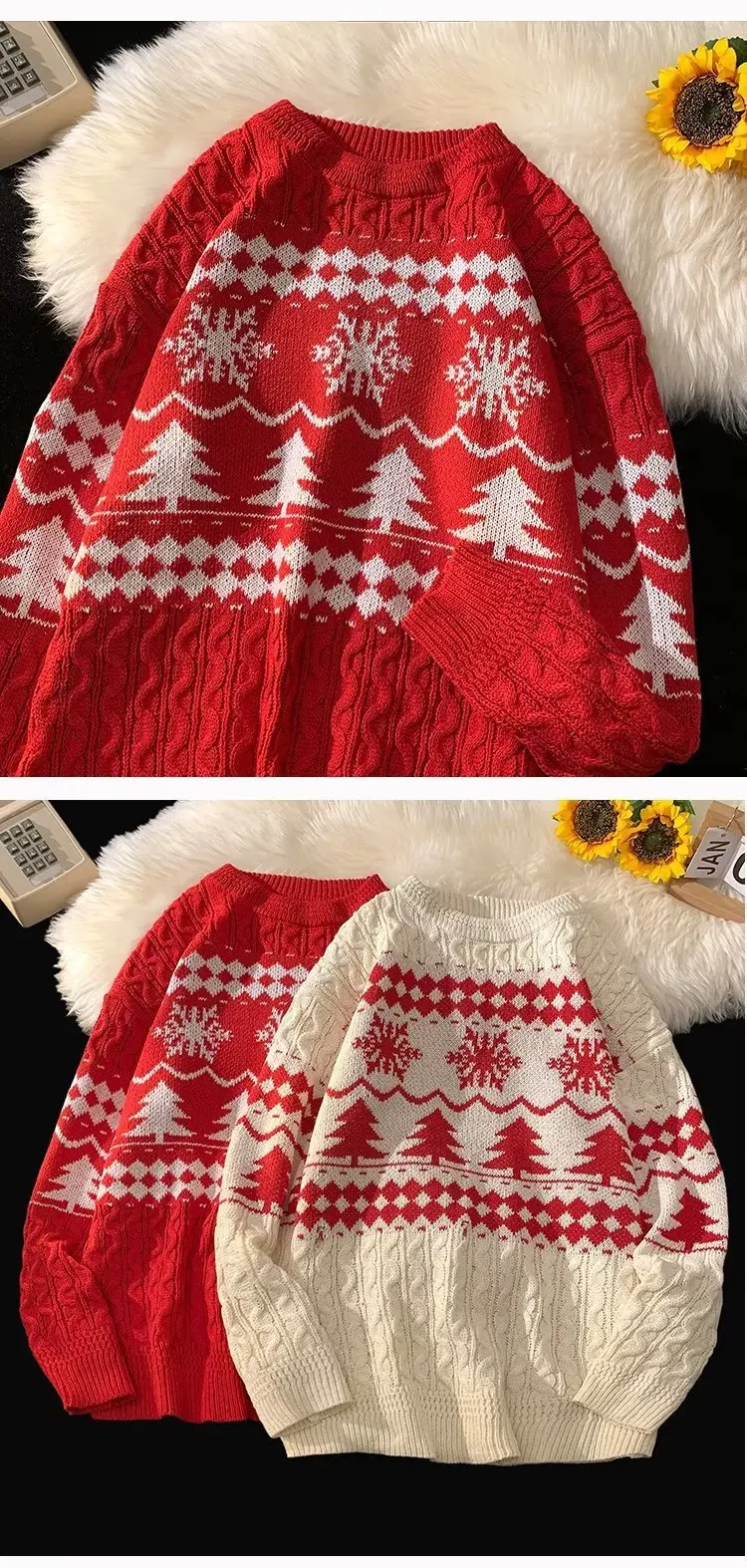 WIAOFELLAS - Japanese Retro Diamond-shaped Christmas Sweater Men and Women Couple Winter Pullover Knitted Sweater Top