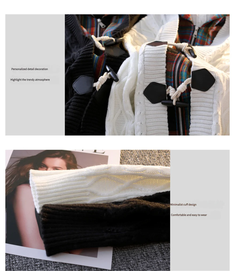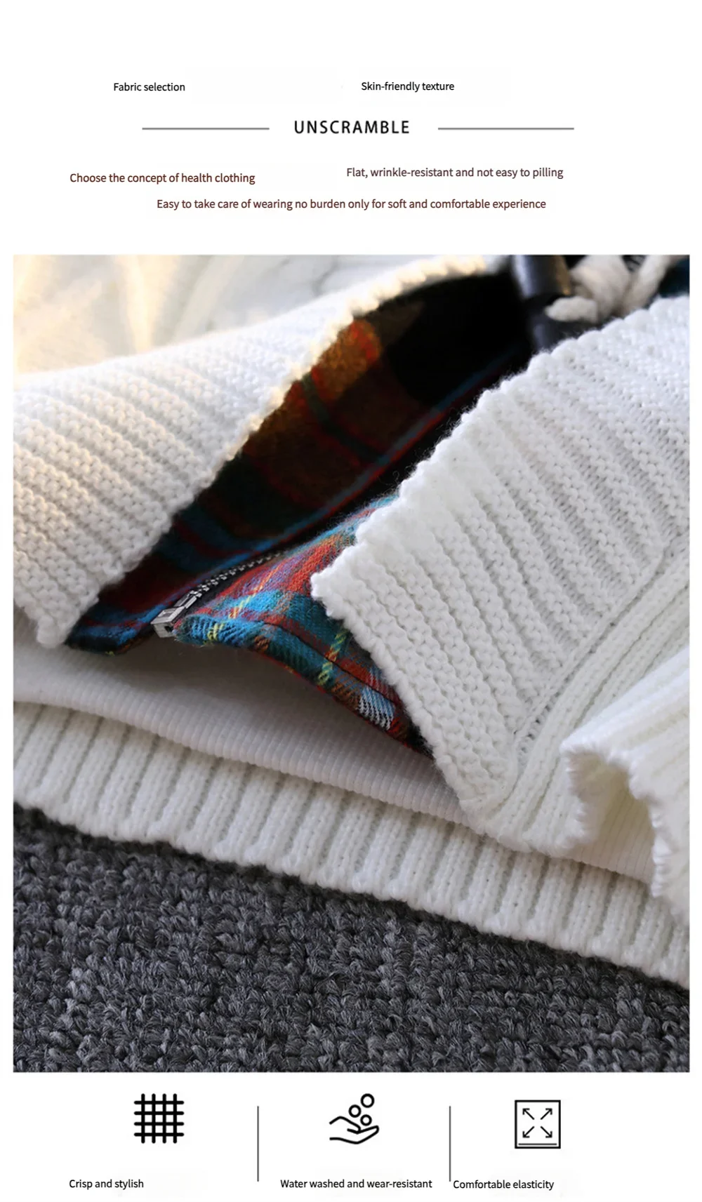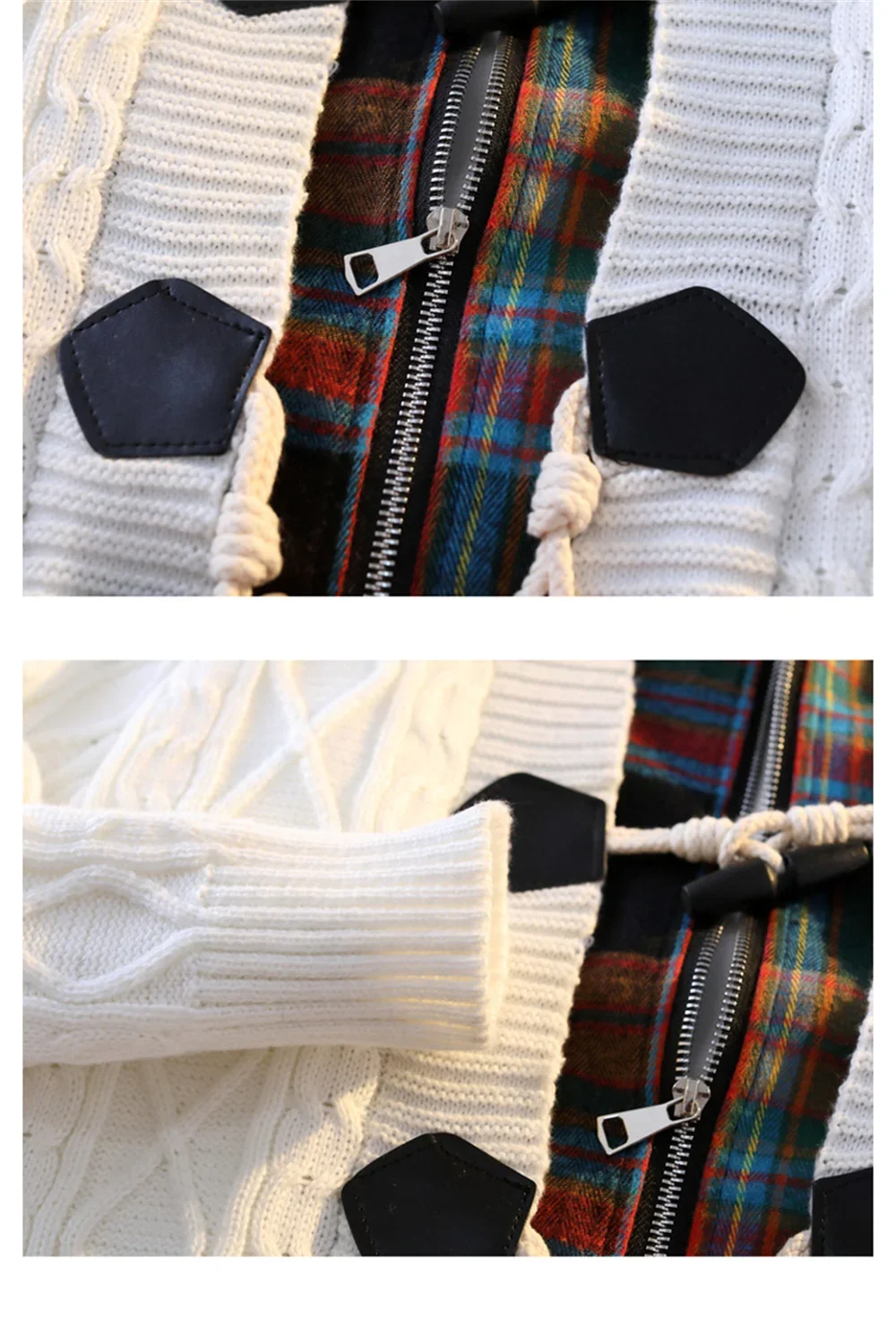 WIAOFELLAS  -  Korean Casual Checkered Hooded Sweater Holiday Style Fake Two-piece Jacket for Men New Autumn and Winter Cardigan for Teenagers