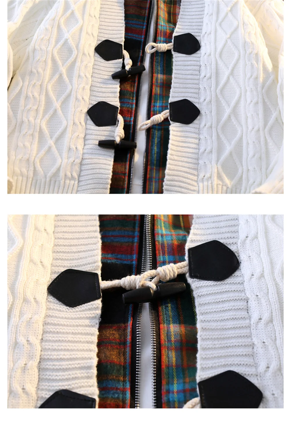 WIAOFELLAS - Korean Casual Checkered Hooded Sweater Holiday Style Fake Two-piece Jacket for Men New Autumn and Winter Cardigan for Teenagers