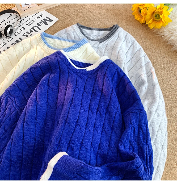 WIAOFELLAS - Korean Street Trendy Contrast Knitwear for Men Women Knit Pullover Spliced Crew Neck Sweater Autumn Winter New Couple Sweaters