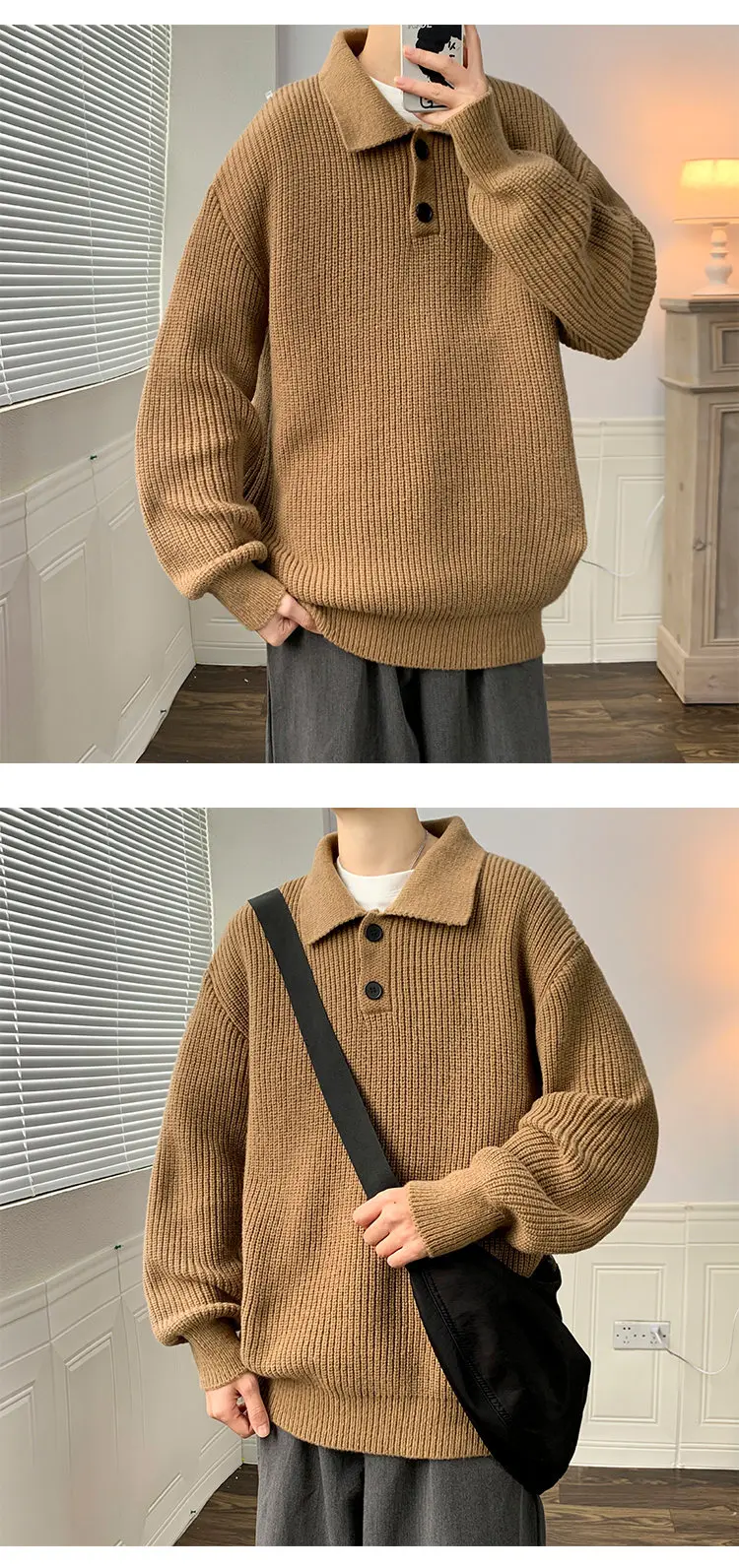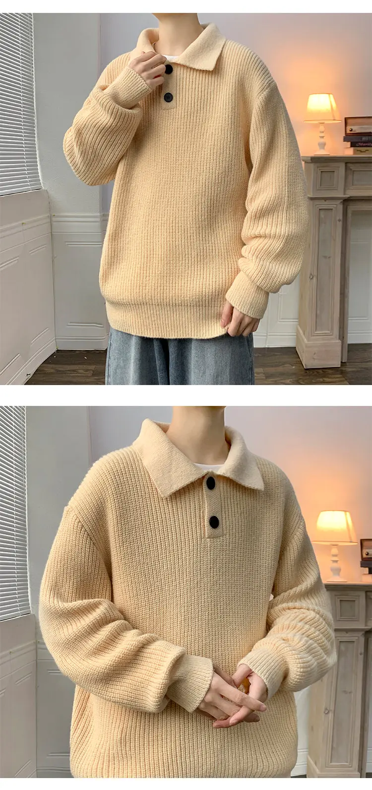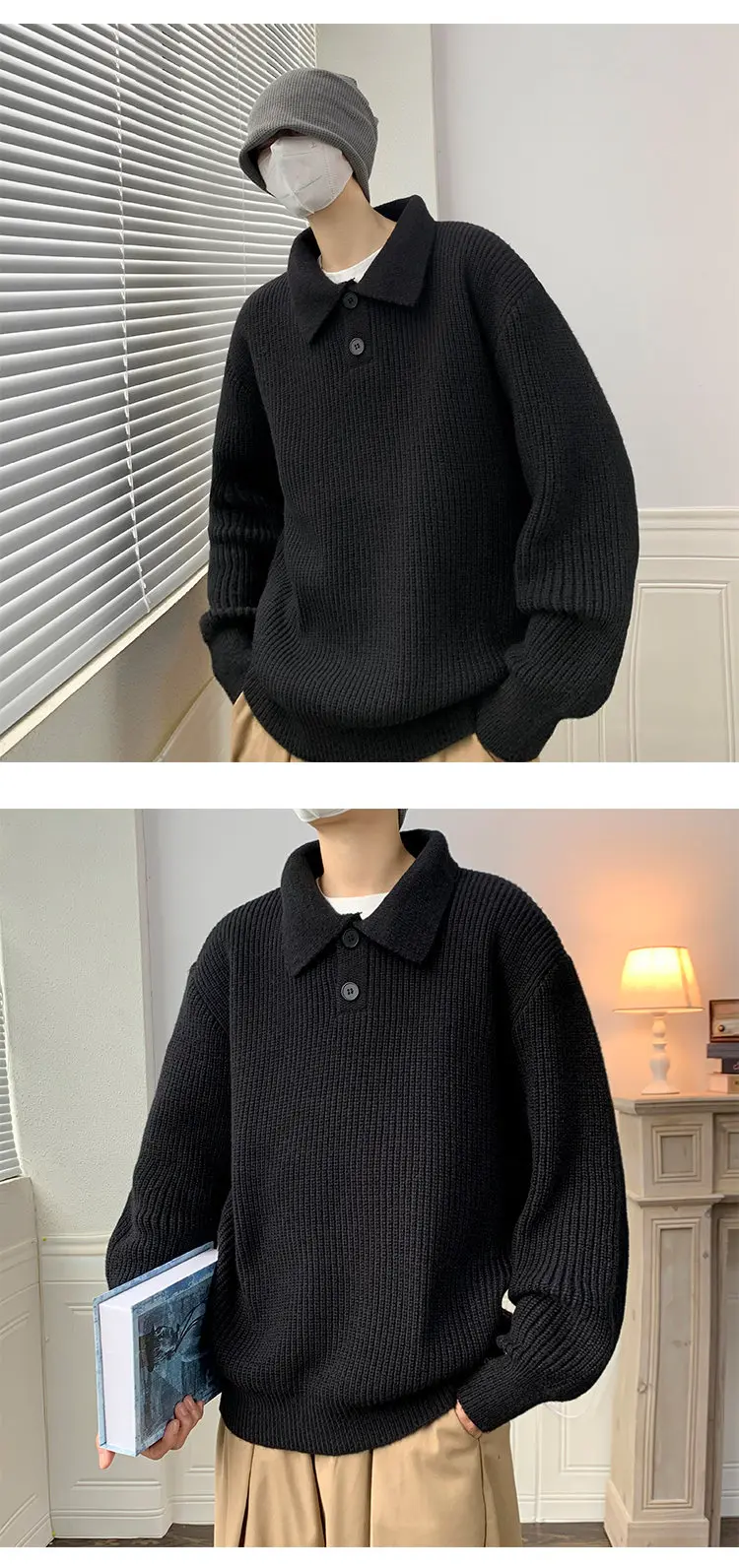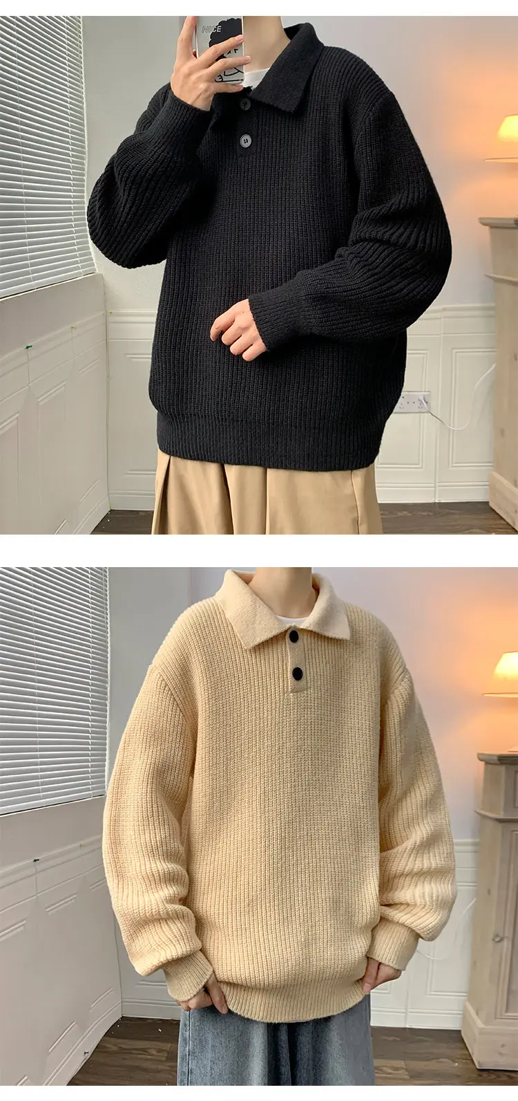 Wiaofellas Lapel Sweater Men Warm Fashion Casual Knitted Pullover Men Japanese Streetwear Loose Long Sleeve Sweater Mens Jumper Clothes