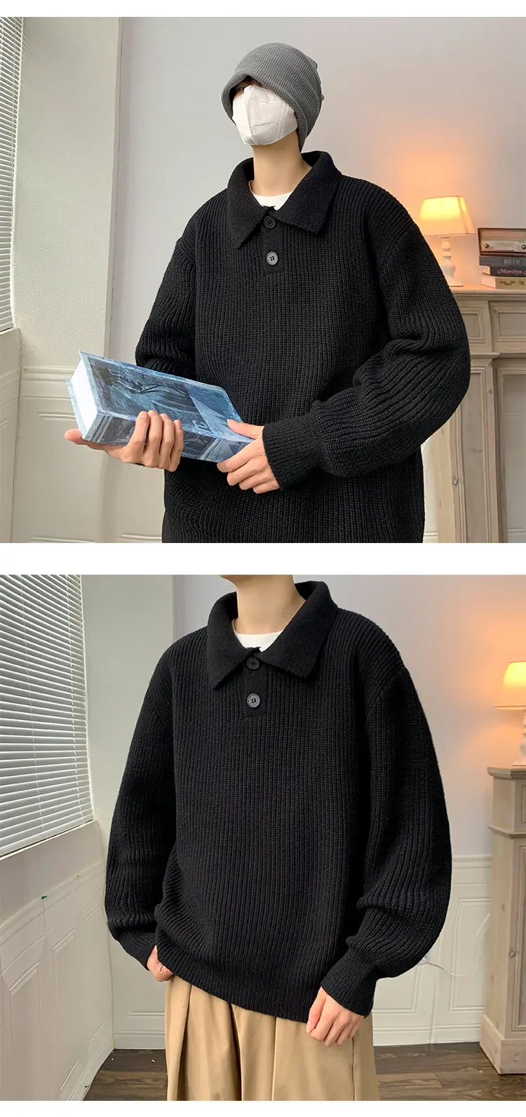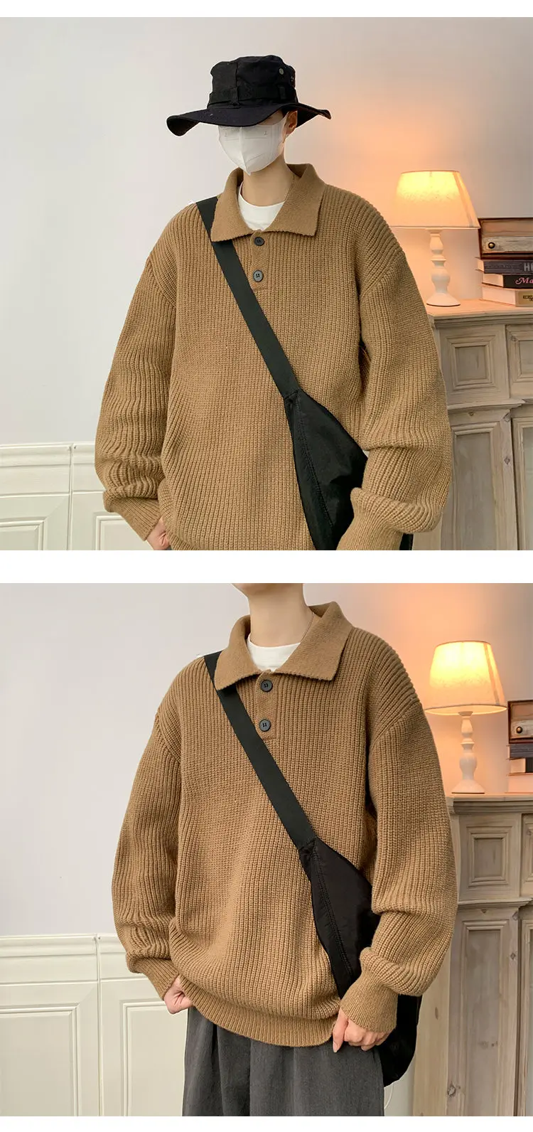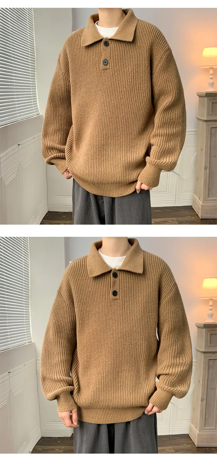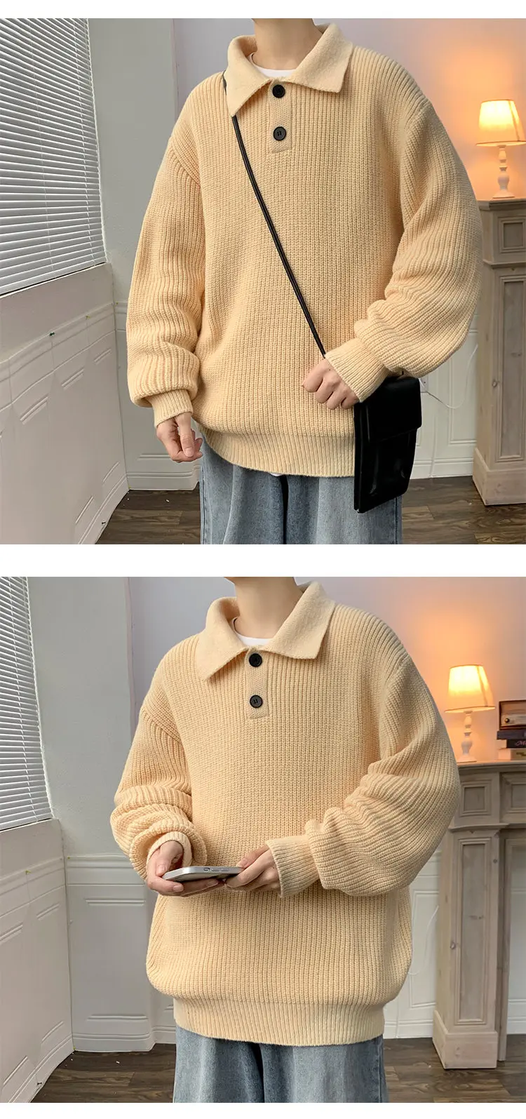 Wiaofellas Lapel Sweater Men Warm Fashion Casual Knitted Pullover Men Japanese Streetwear Loose Long Sleeve Sweater Mens Jumper Clothes