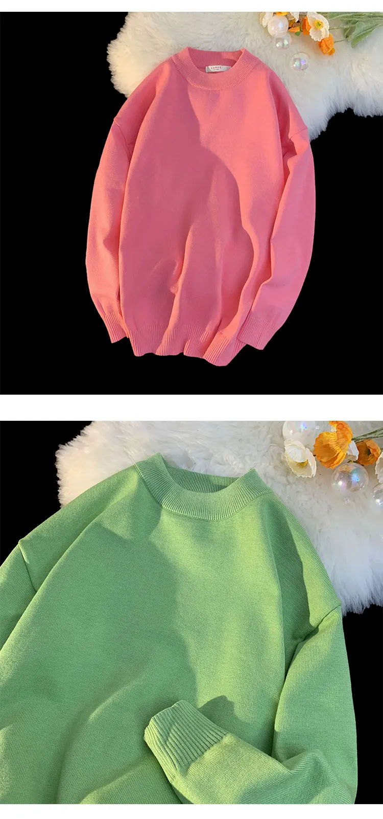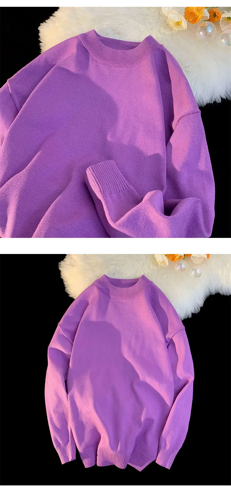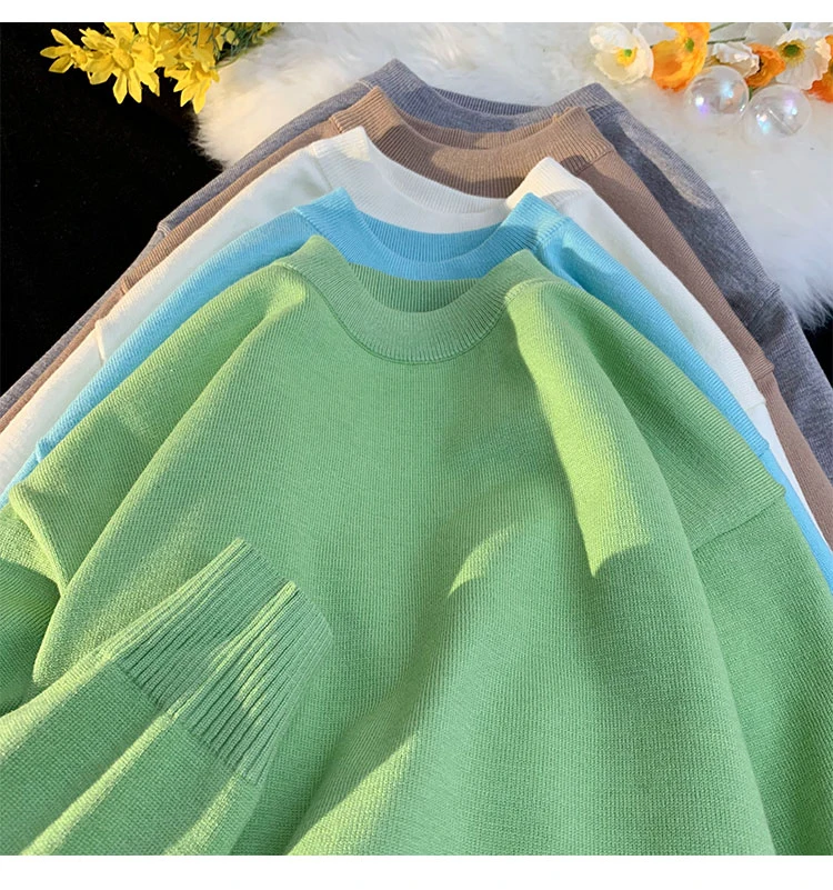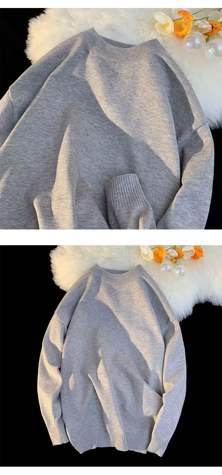 WIAOFELLAS - Men Autumn Winter Fashion Round Neck Sweater Tops Men's O-neck Knitted Tops Male Oversize Loose Casual Pullovers P138