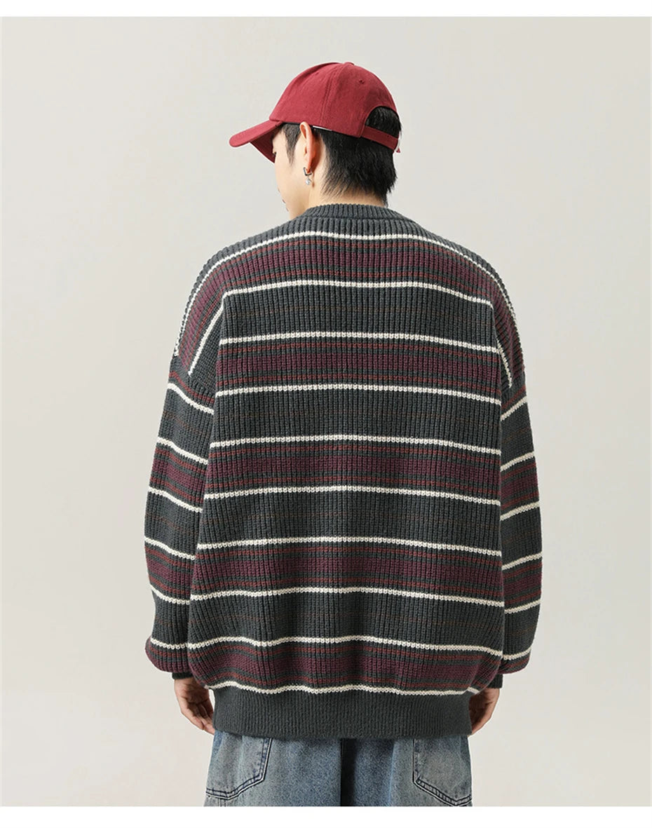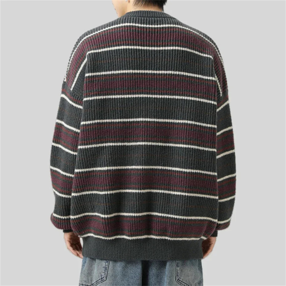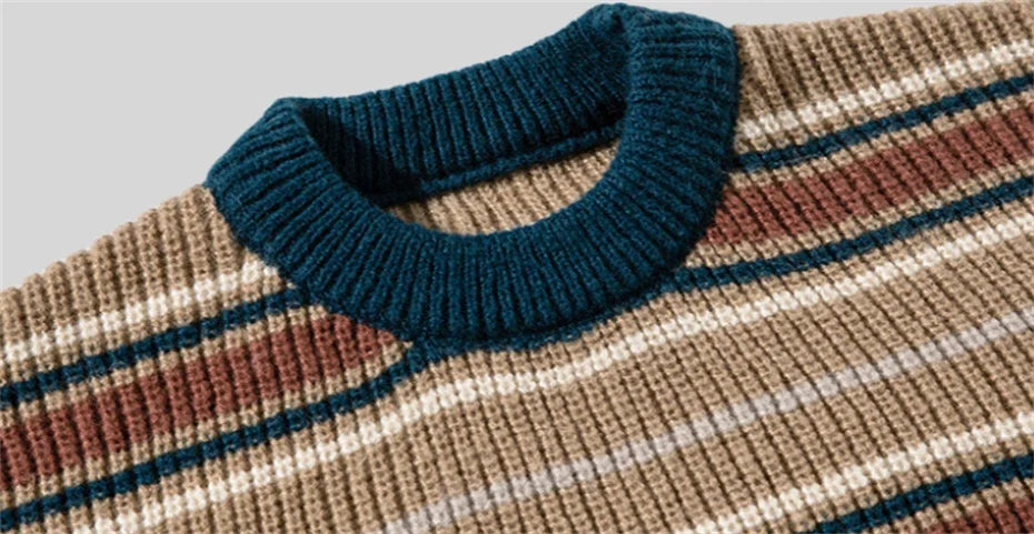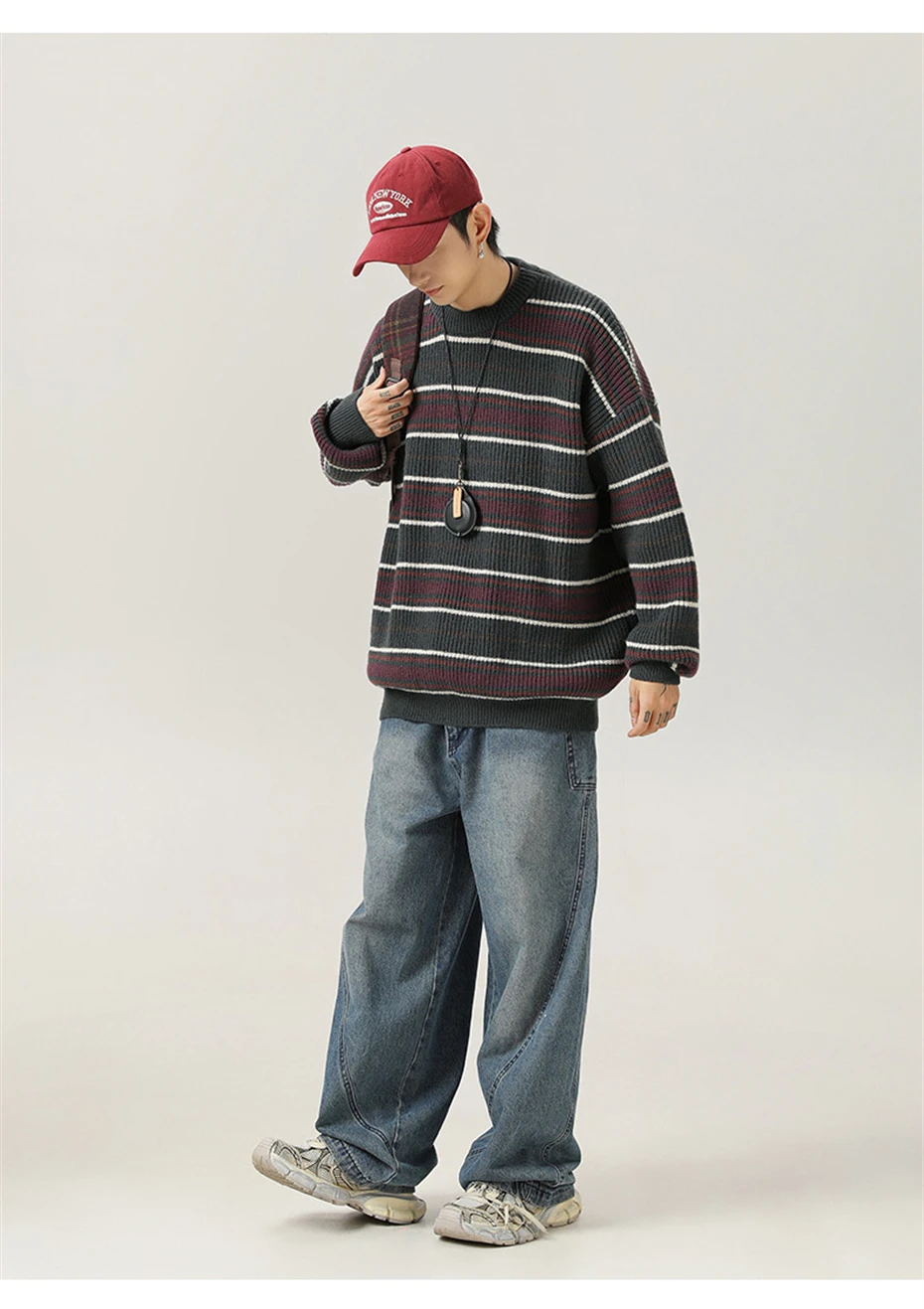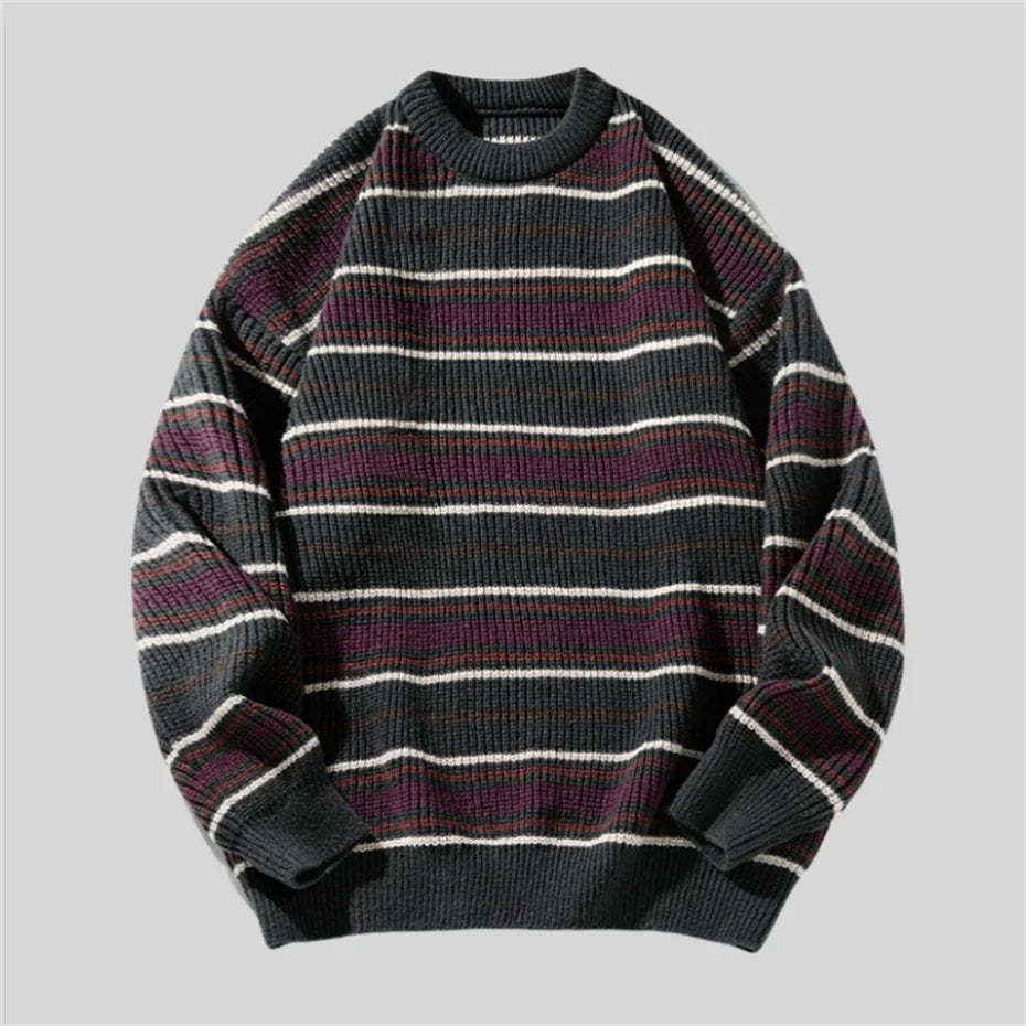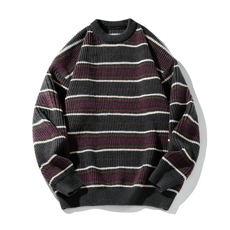 WIAOFELLAS - Men Smooth Striped Sweater Winter Knitted Jumpers Pullover Men Streetwear Hip Hop Harajuku Japan Style Patchwork Grey Sweaters