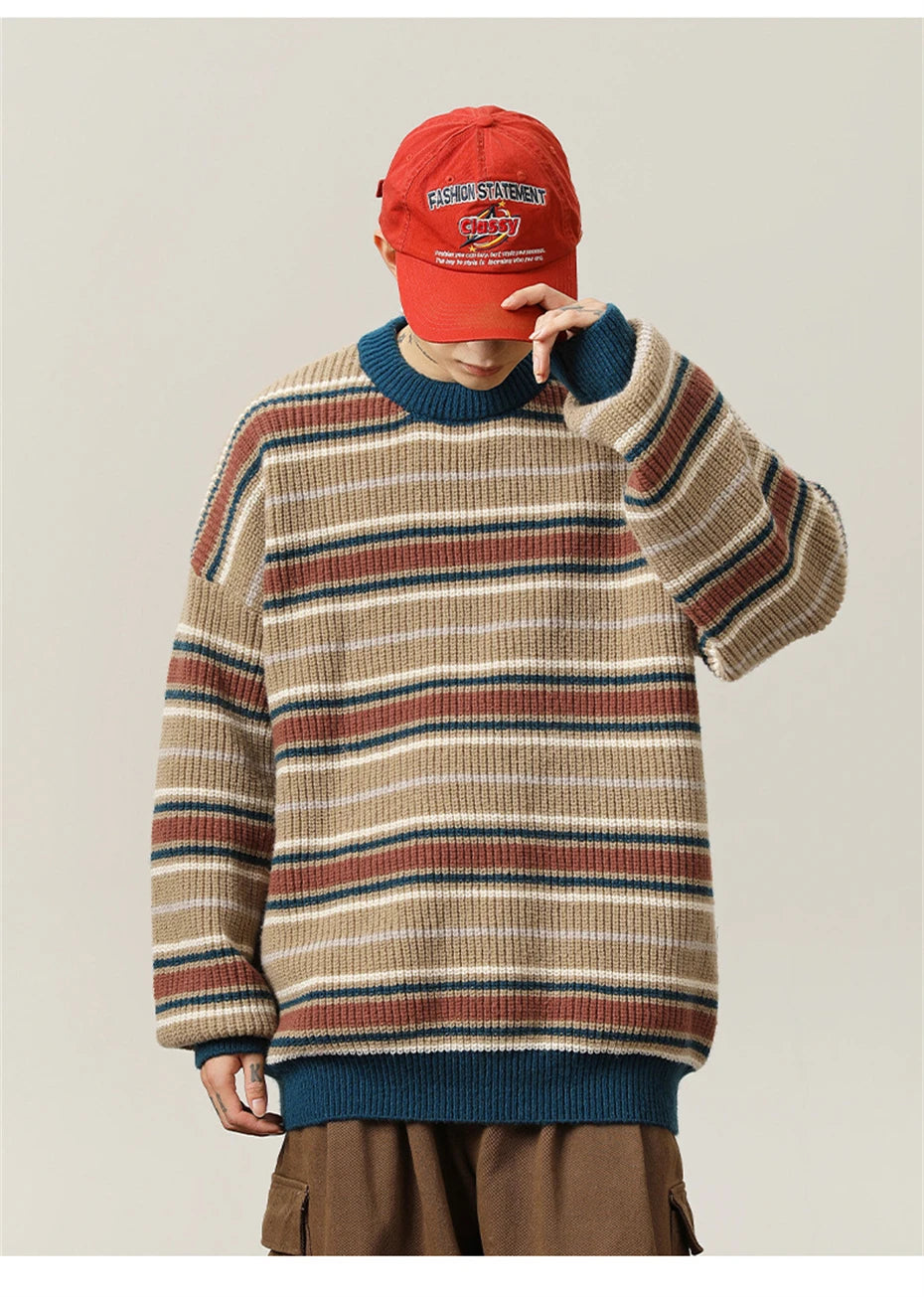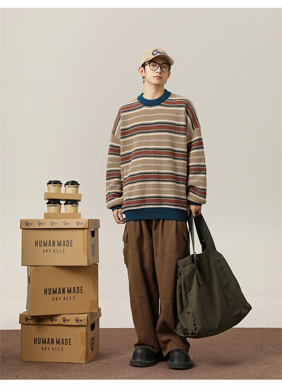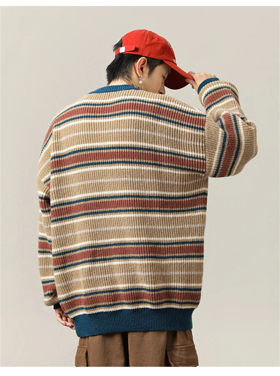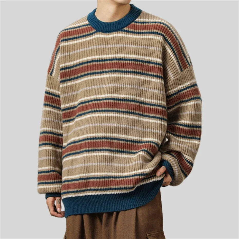 WIAOFELLAS - Men Smooth Striped Sweater Winter Knitted Jumpers Pullover Men Streetwear Hip Hop Harajuku Japan Style Patchwork Grey Sweaters