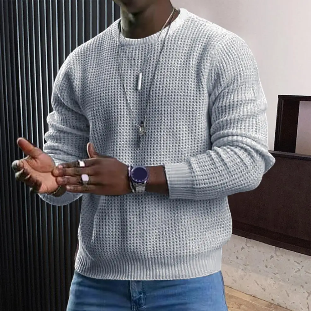 Wiaofellas Men Spring Top Long Sleeves Round Neck Solid Color Soft Pullover Warm Casual Mid Length Men Autumn Sweater Top Male Clothes