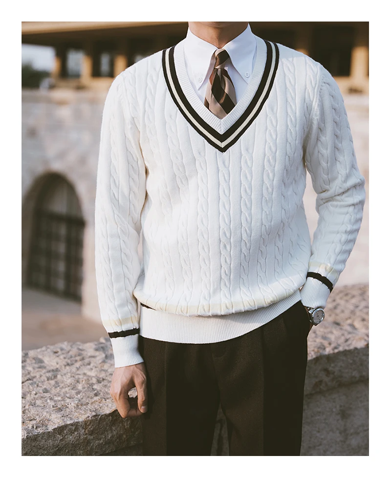 Wiaofellas Men Weaver Clean and Simple Knitted Sweater Pullover Autumn Winter New Fashion Casual V-neck Sweater Knitwear B222