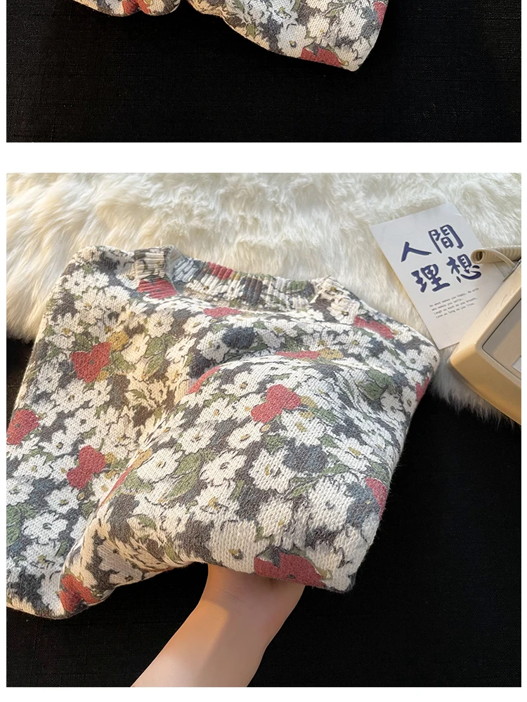 WIAOFELLAS - Men's Autumn Winter Fashion Thicken Warm Sweater Tops Male Round Neck Loose Pullovers Men Korean Print Knitted Tops P59