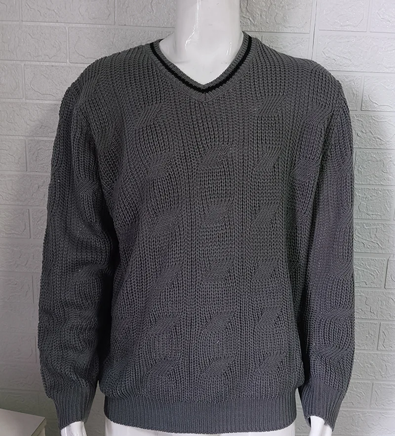 Wiaofellas Mens Fashion Slim Contrast Color V-neck Knitted Sweater Harajuku Long-sleeved Knitted Top Autumn/Winter Bottoming Pullover Men