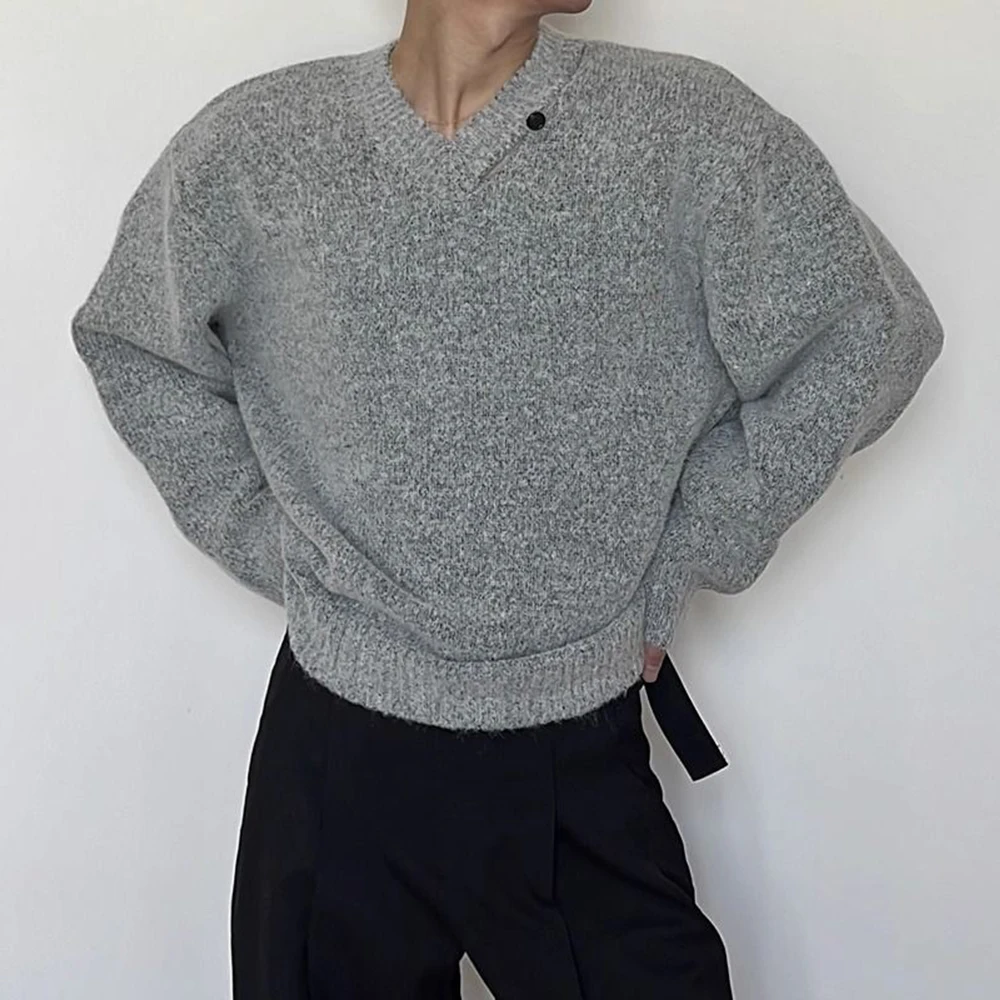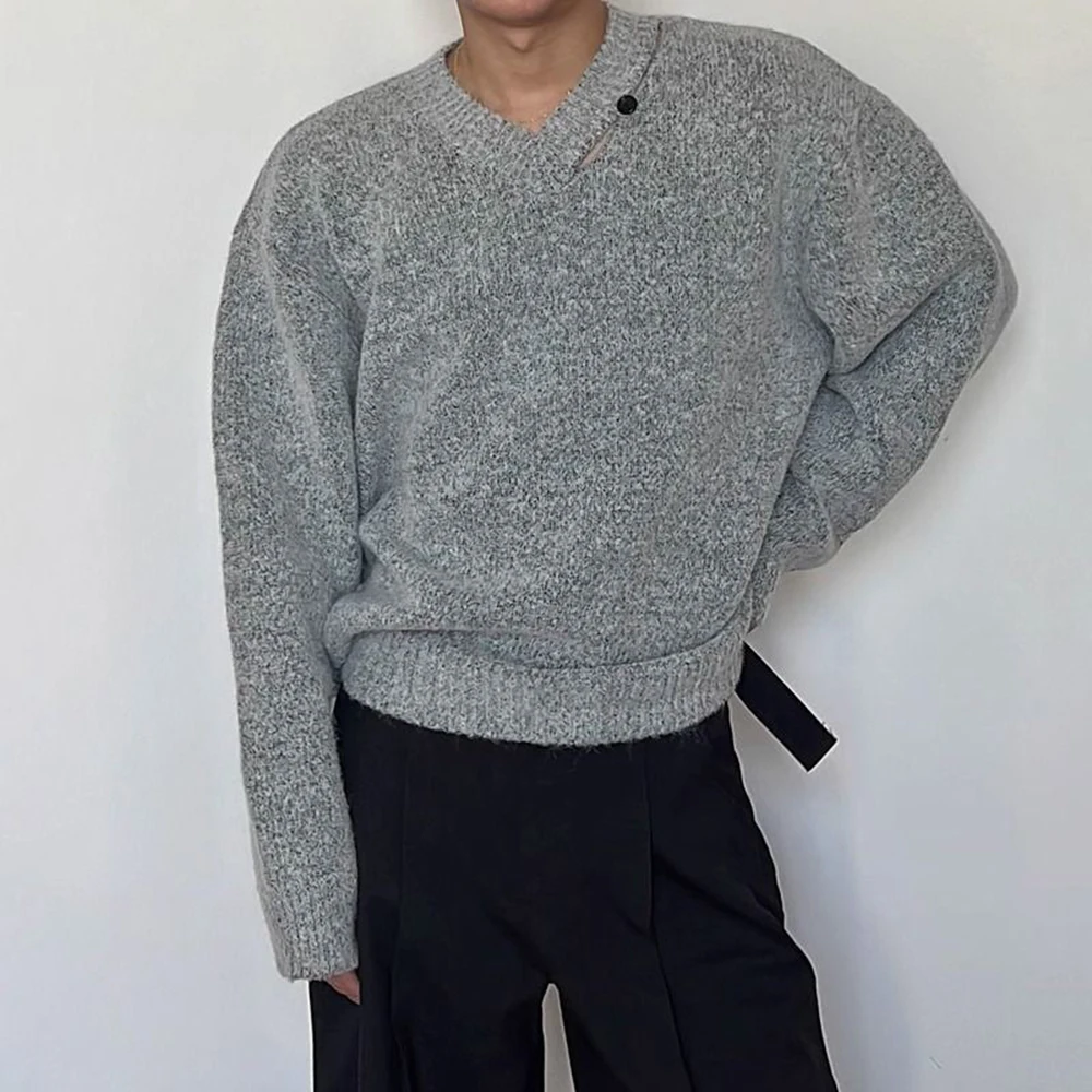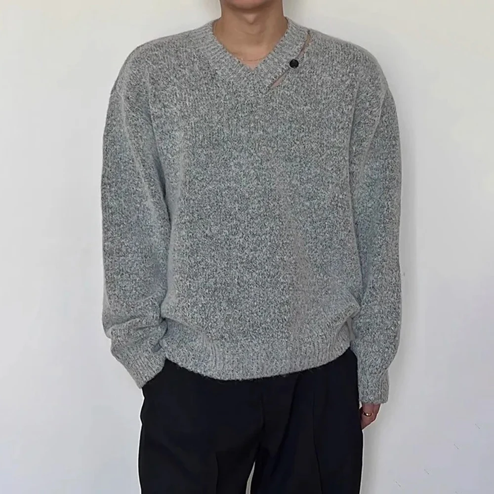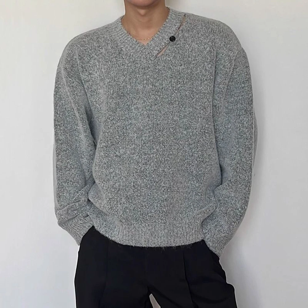 WIAOFELLAS - Mens Sweater Hollow V-Neck Casual Knitted Sweater Streetwear Campus Youth Fashion Trend Male Long-Sleeve Top Men'S Clothing