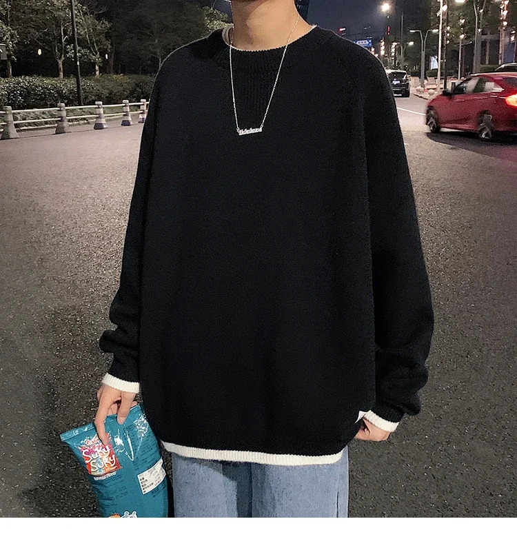 WIAOFELLAS - Mens Sweaters Fashion Casual Loose O Neck Oversize Harajuku Streetwear Knitwear Outwear