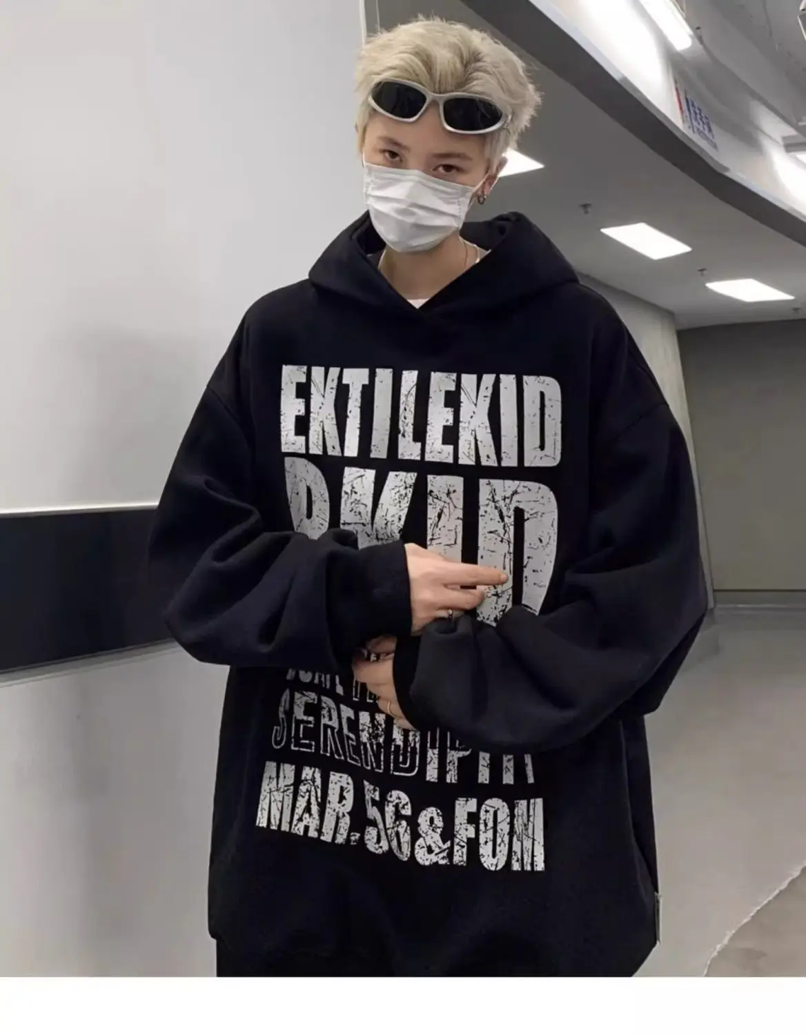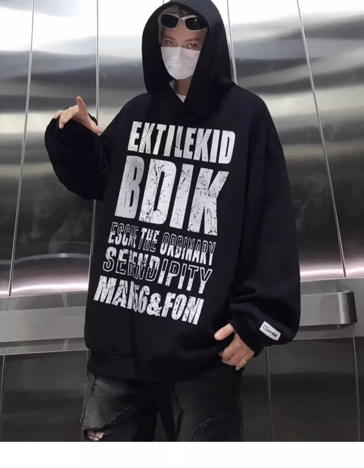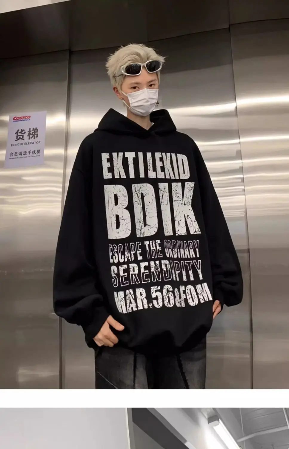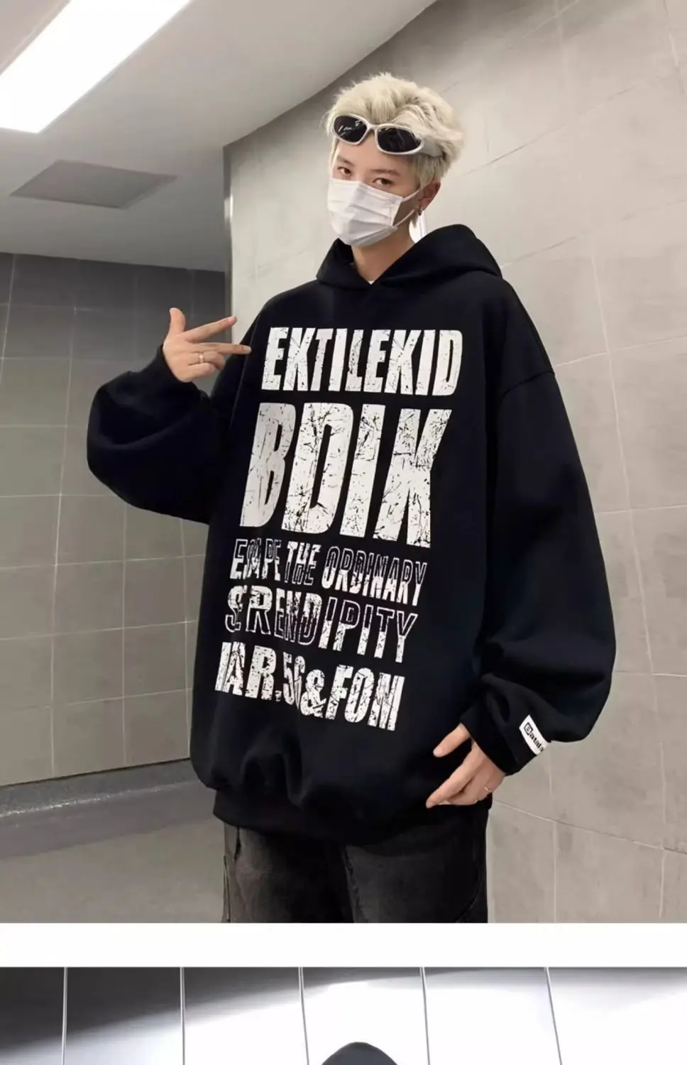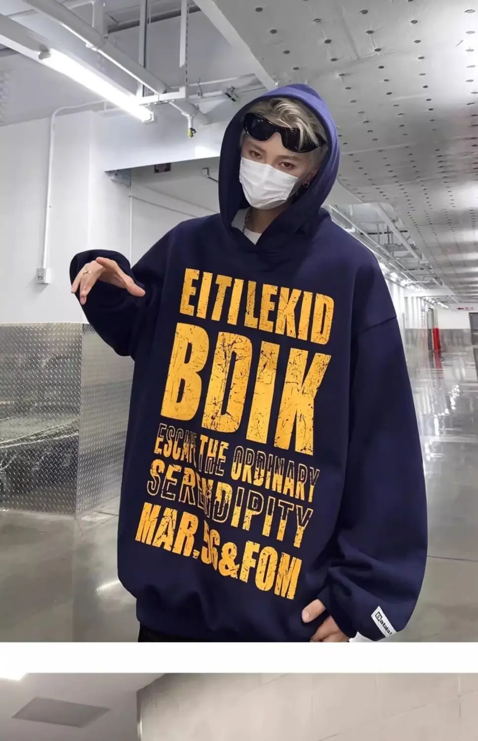 WIAOFELLAS - Navy Heavy Weight Sweater Men's American Retro High Street Hip-hop Couple Coat Oversize China-Chic Top
