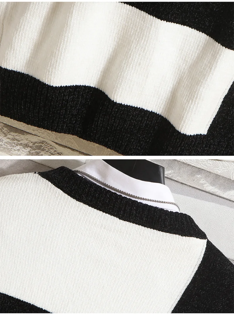 Wiaofellas New Autumn and Winter Men's Pullover Round Neck Contrast Color Sweater Temperament Fashion Casual Knitted Sweater