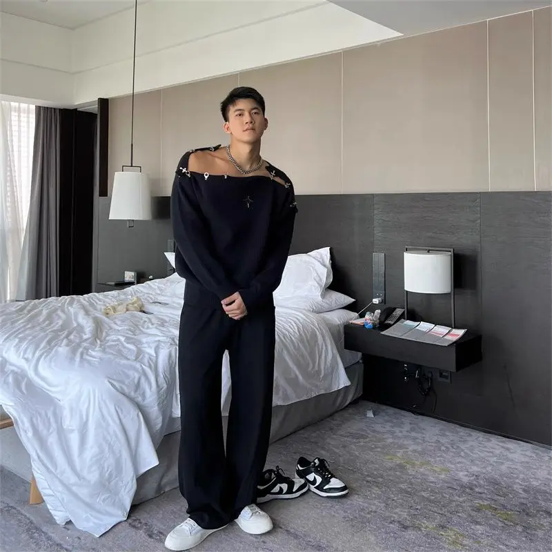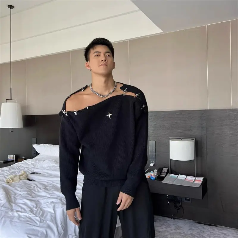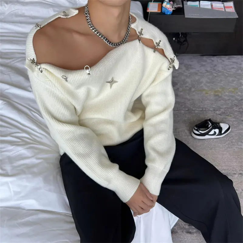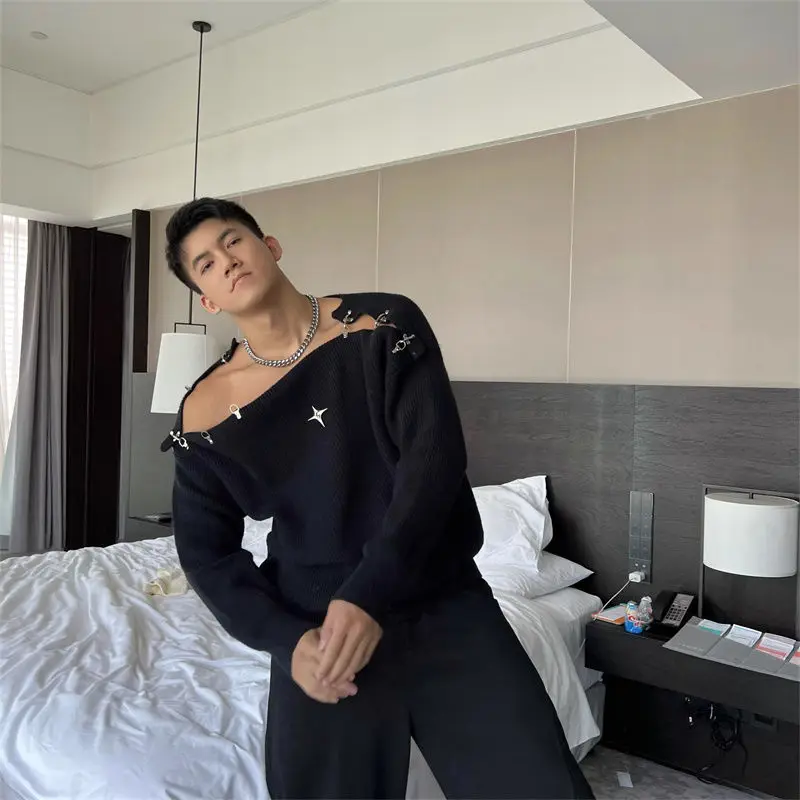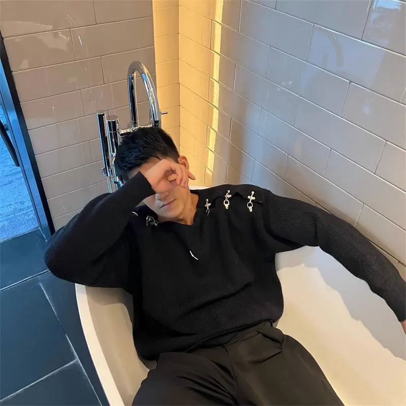 WIAOFELLAS - New Fashion Autumn Winter Casual Men's Sweater Long Sleeve Slim Knitted Pullovers Fashion Contrast Crew Neck Knitted Pullover