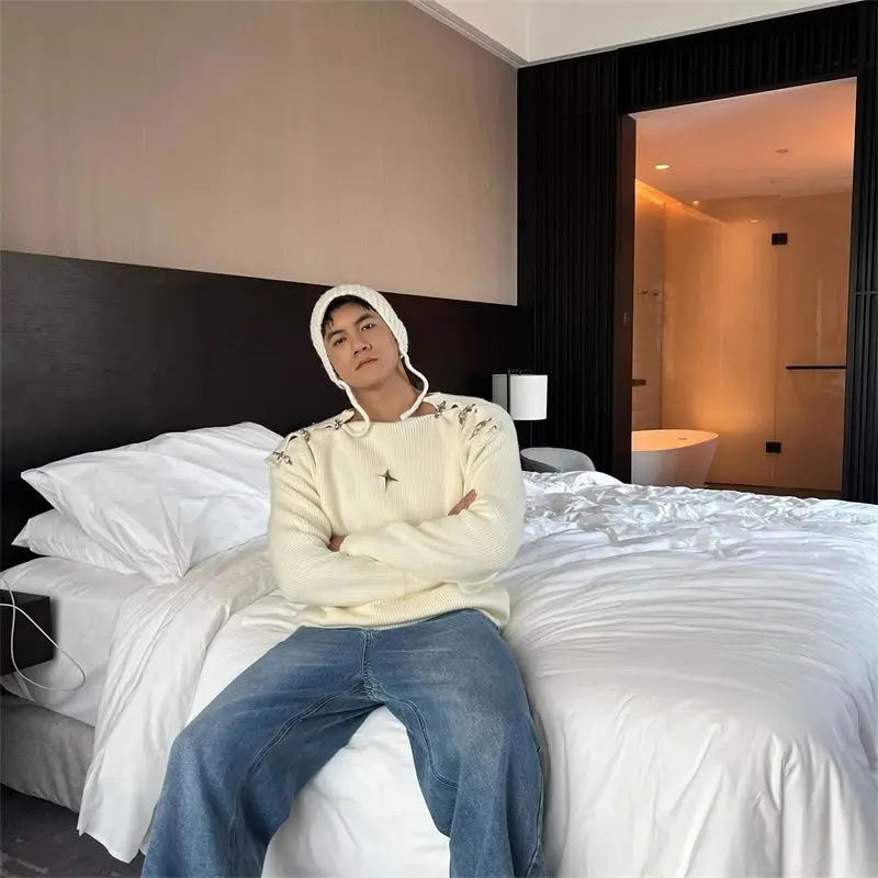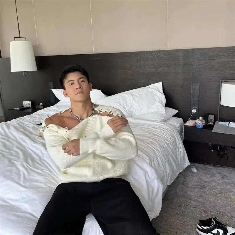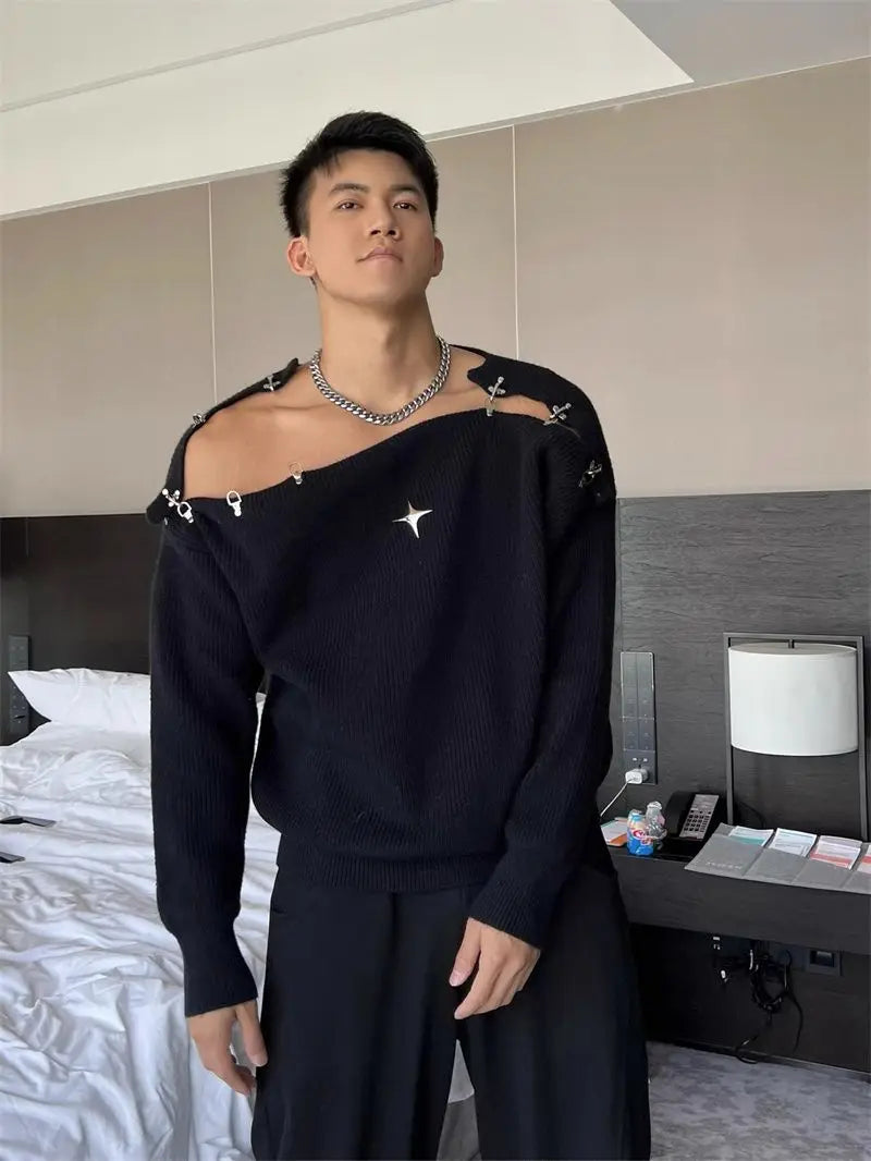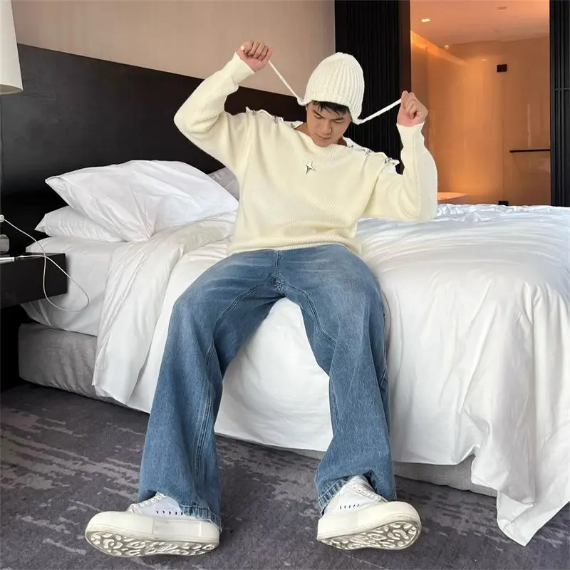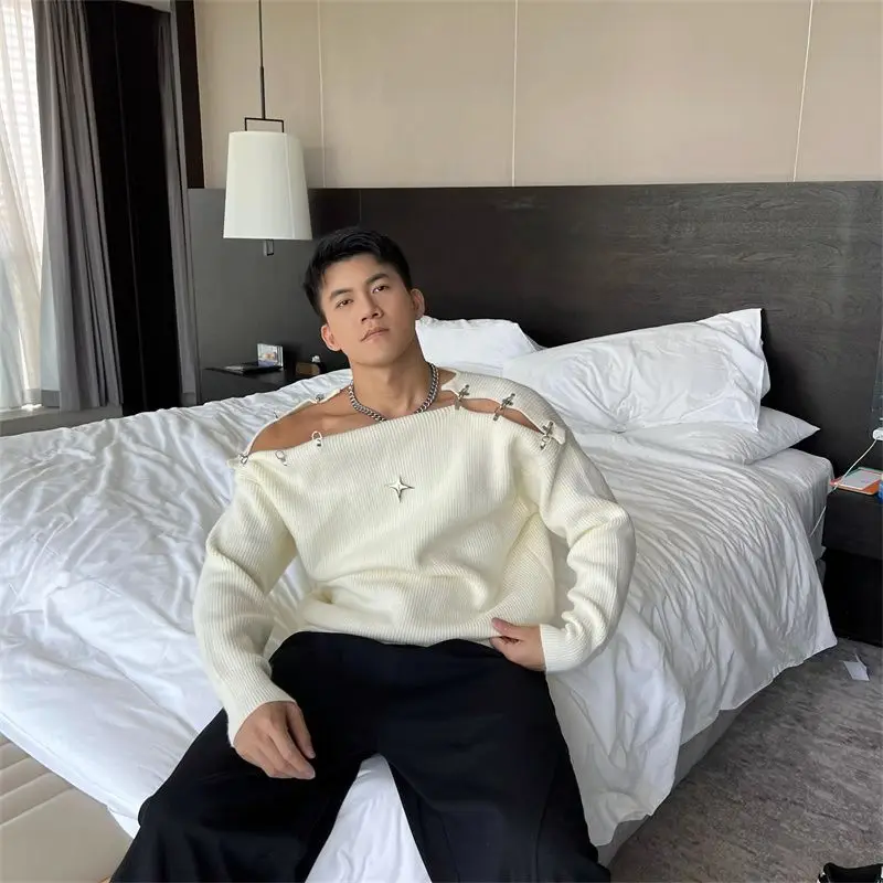 WIAOFELLAS - New Fashion Autumn Winter Casual Men's Sweater Long Sleeve Slim Knitted Pullovers Fashion Contrast Crew Neck Knitted Pullover