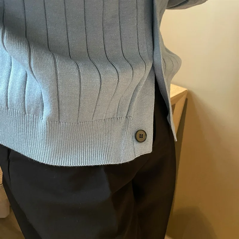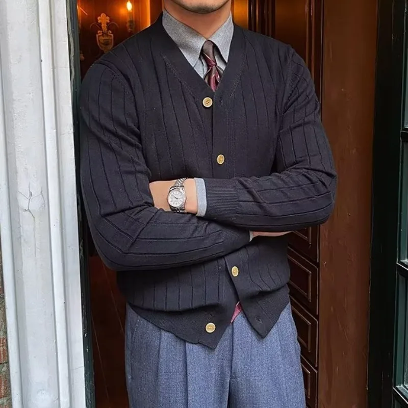 WIAOFELLAS - New Knitted Sweater Men's Spring and Autumn Trend Solid Color V-neck Casual Tops for Youth Breathable Thin Sweater Cardigan