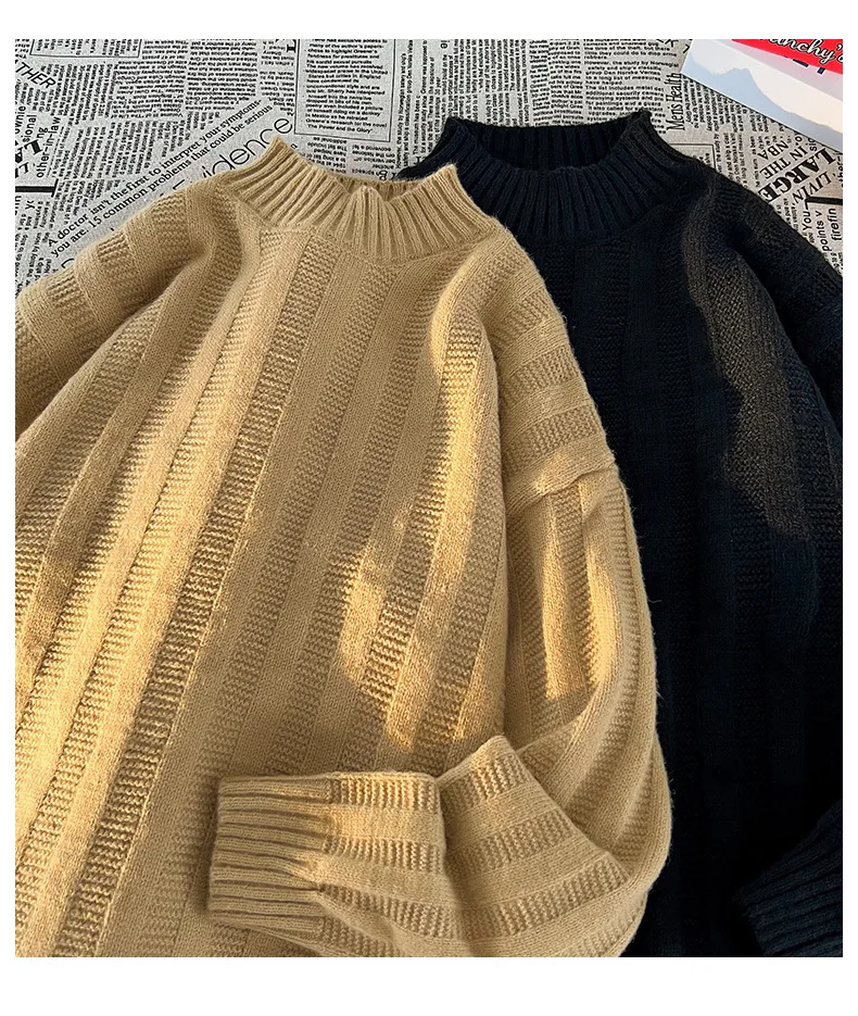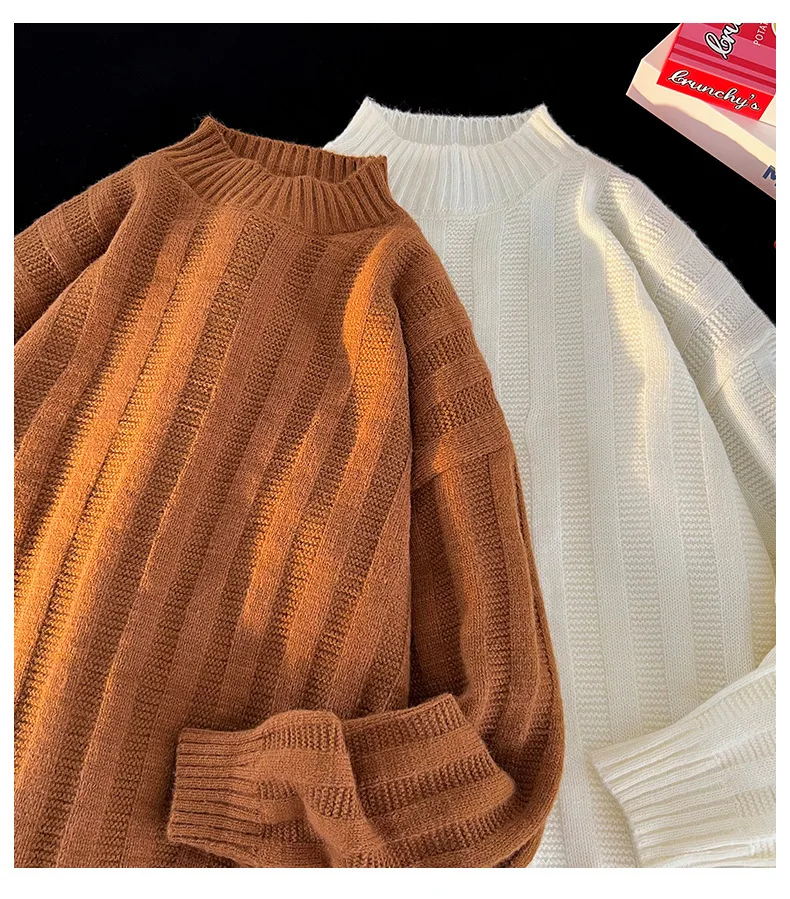 WIAOFELLAS - New Korean Loose Round Neck Lazy Style Half High Neck Sweater