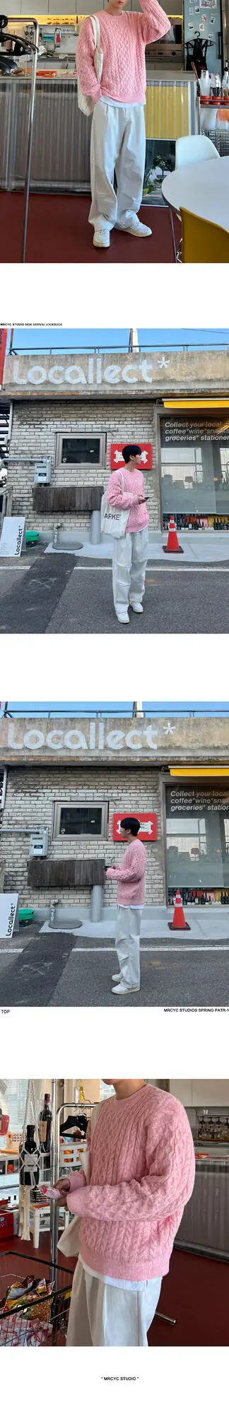 WIAOFELLAS - New Winter Men's Sweaters Casual Round Collar Hemp Pattern Knitting Tops Thickened Pullover Male Loose Tops Niche