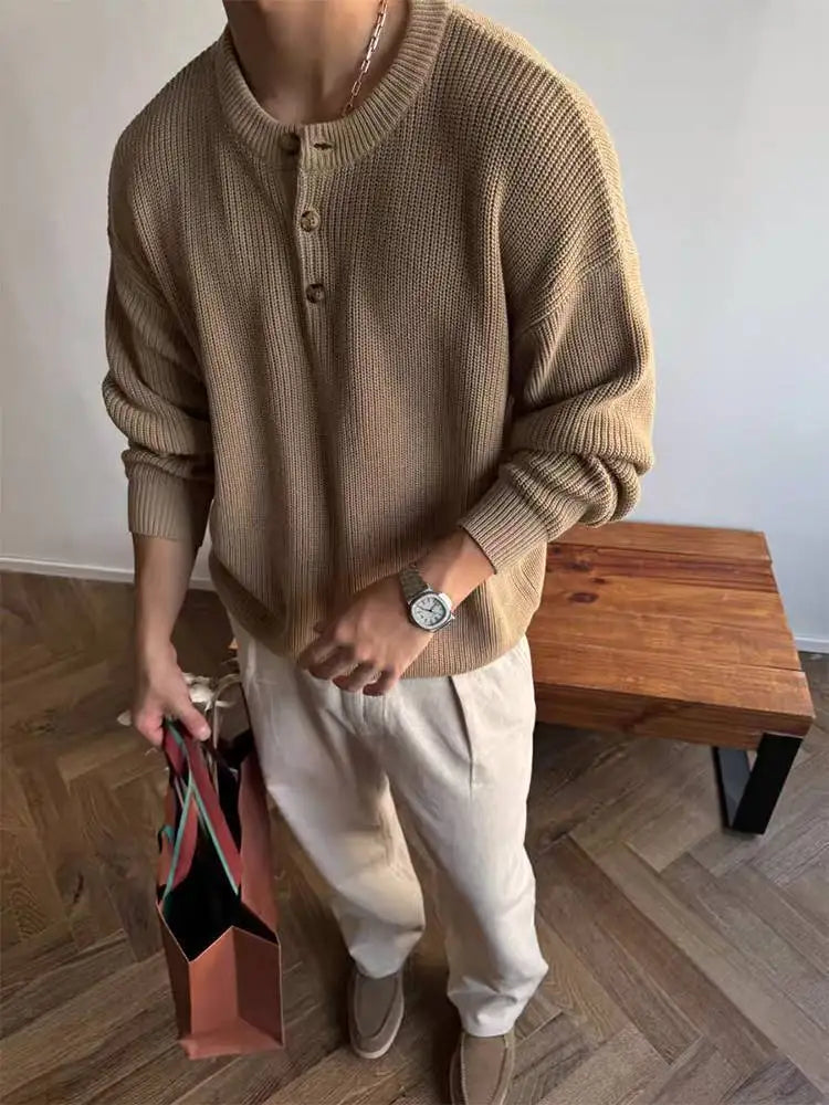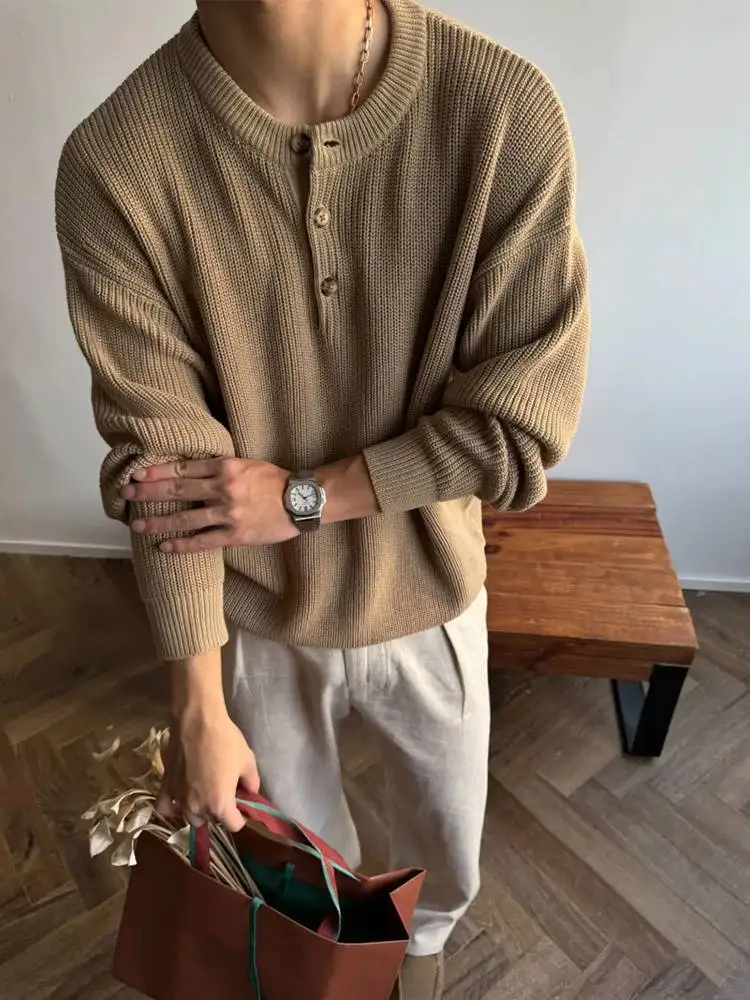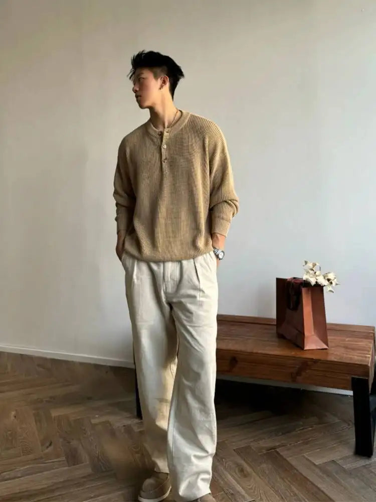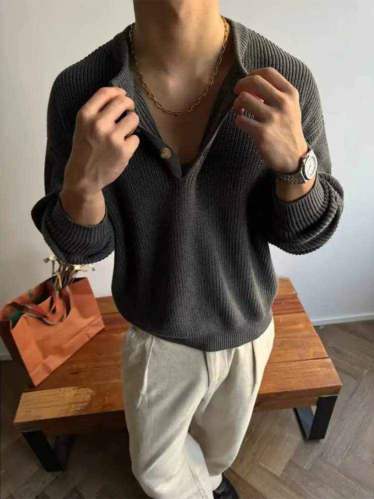 WIAOFELLAS - Old Money Wind Sweater Men's Autumn and Winter Lazy Premium Sense Interior Bottom Long Sleeve Knitted Sweater Relaxed Jacket