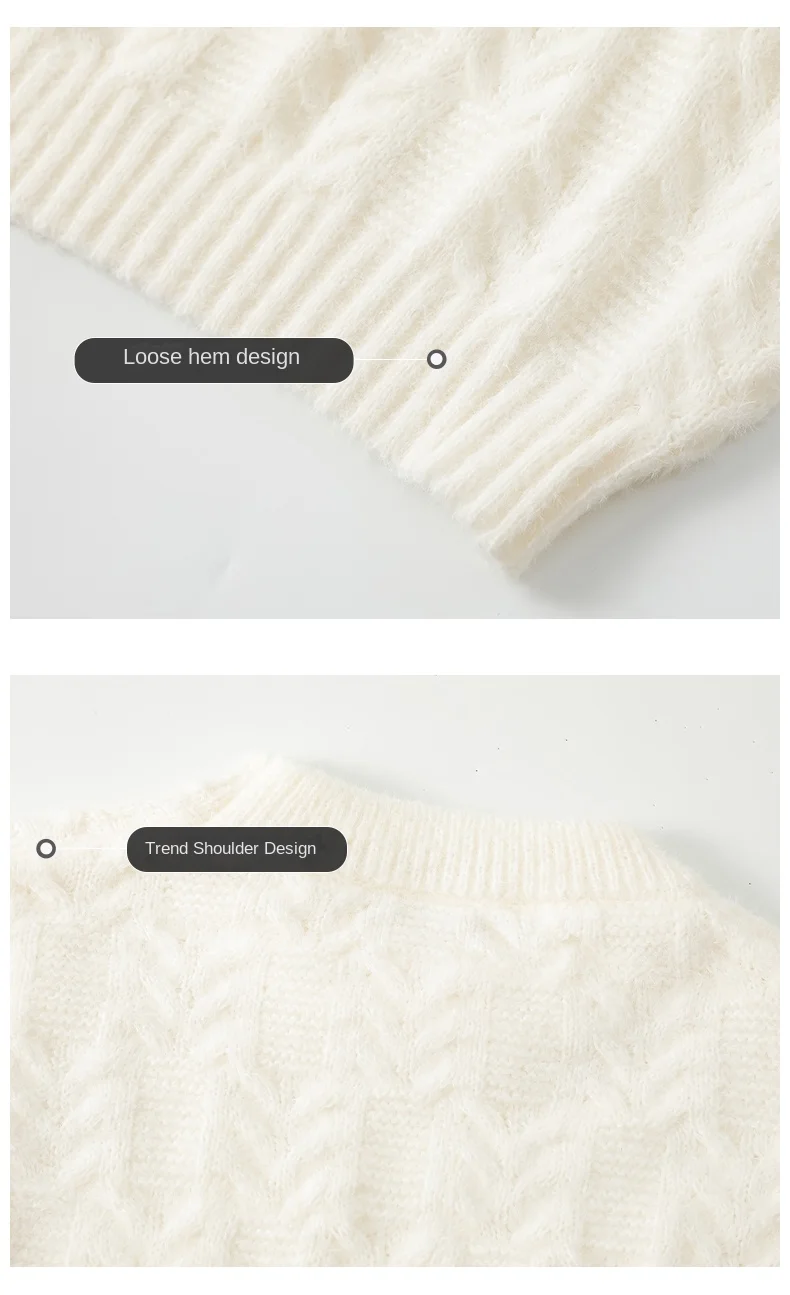 WIAOFELLAS - Round Neck Sweater Ribbed Neckline Not Easy Deform Thick Warm Fashion Trend Crisp Shape High Thin Quality Fabric Comfortable