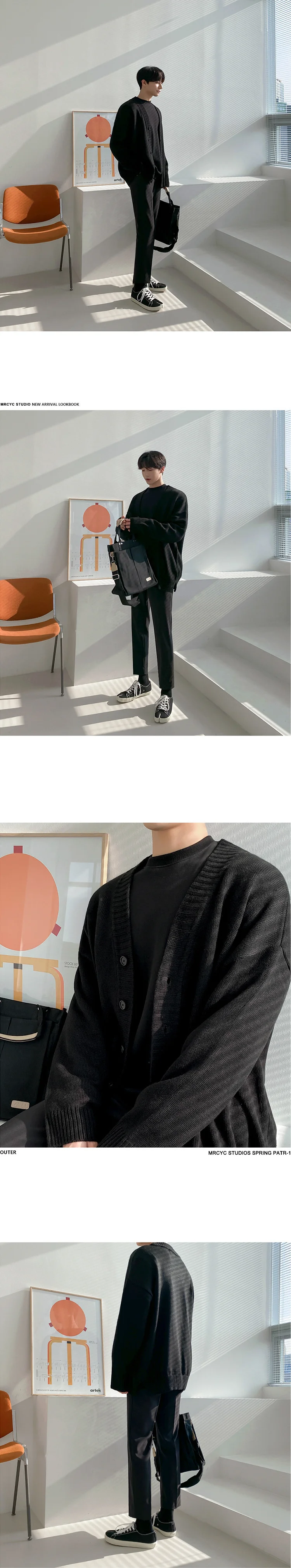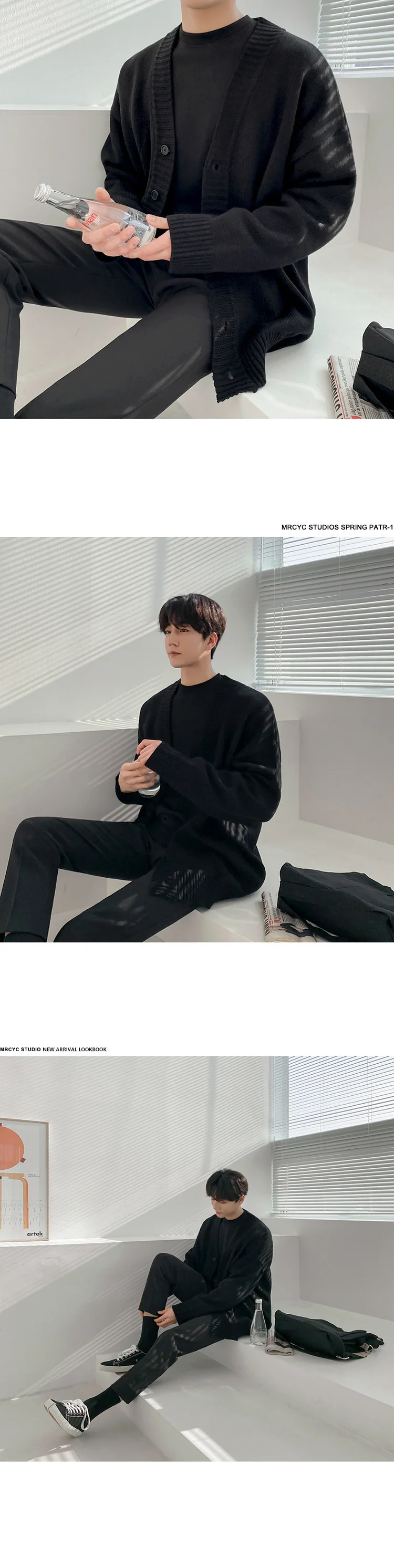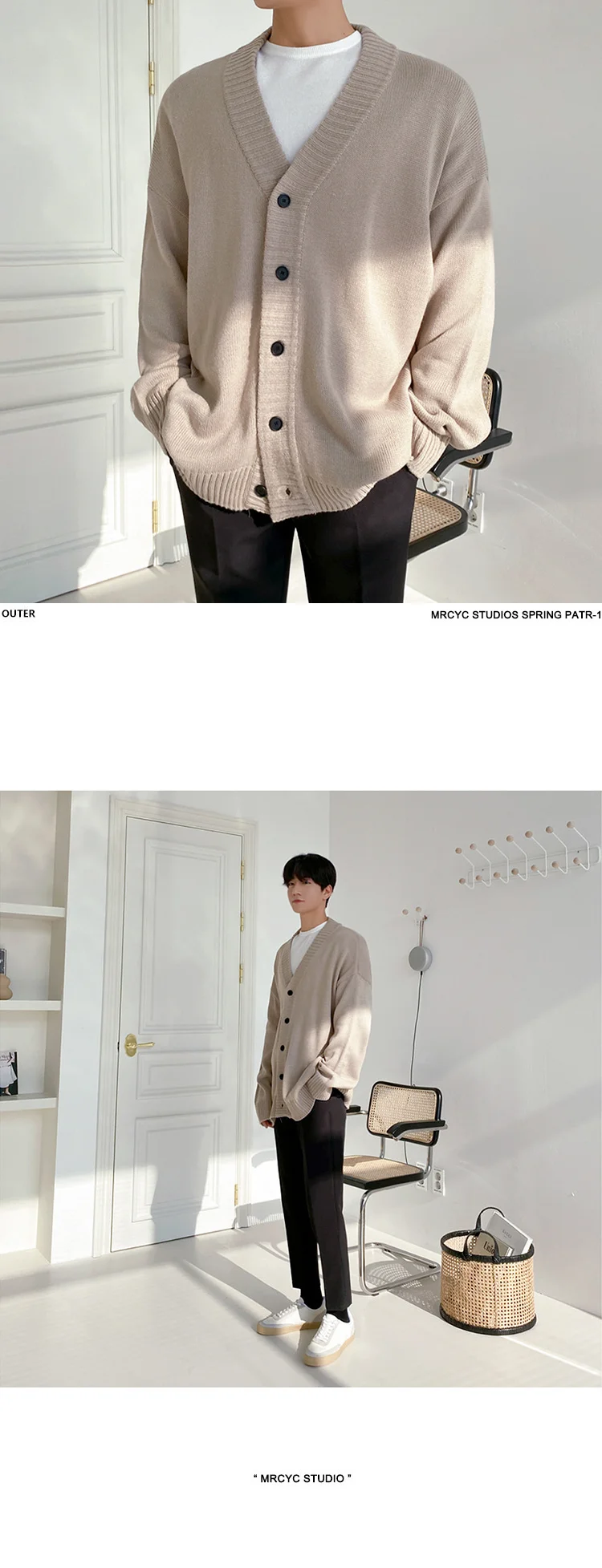 WIAOFELLAS - Single Korean Breasted V Collar Kintted Cardigan Sweater Men's Outerwear Trendy Handsome Mens Knitwear Spring Autumn 2Y4422