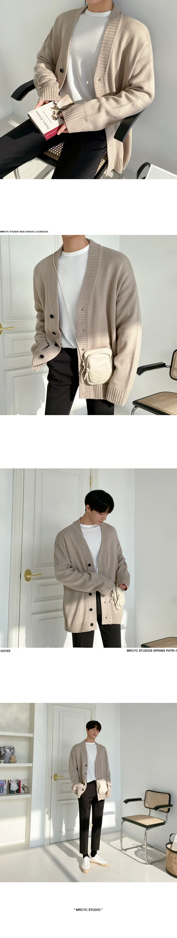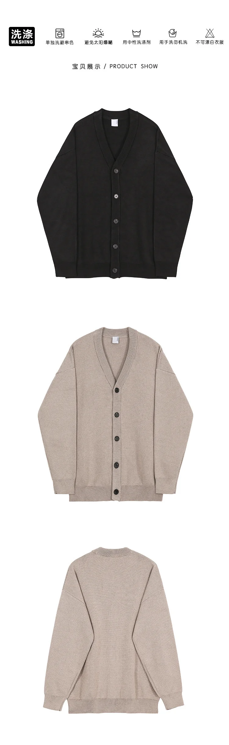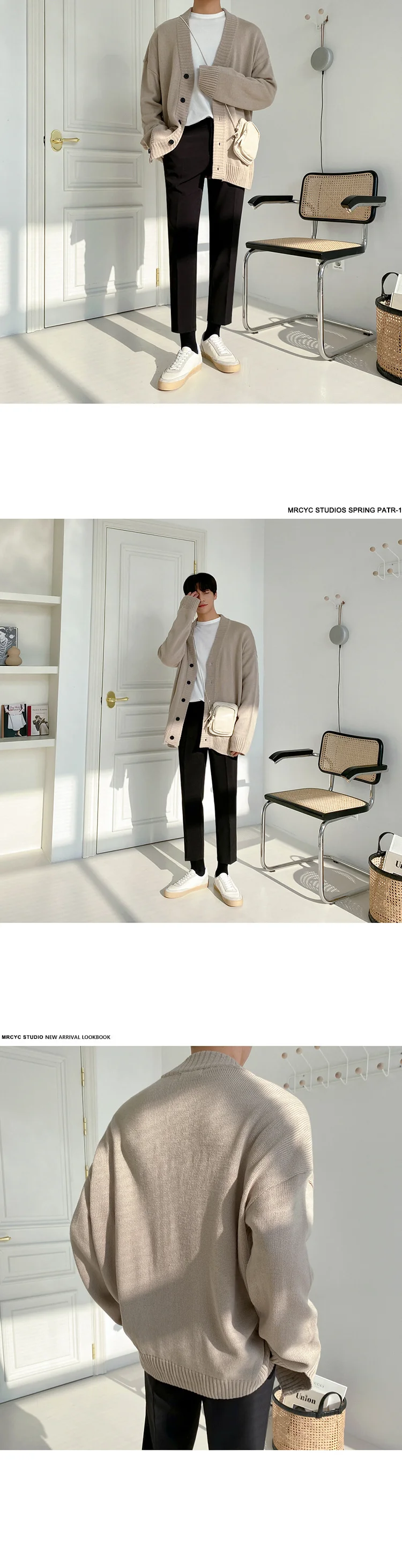 WIAOFELLAS - Single Korean Breasted V Collar Kintted Cardigan Sweater Men's Outerwear Trendy Handsome Mens Knitwear Spring Autumn 2Y4422