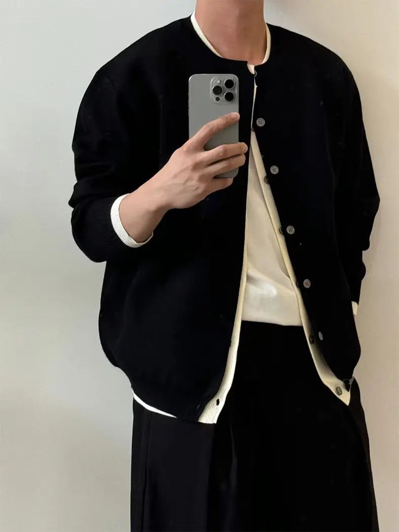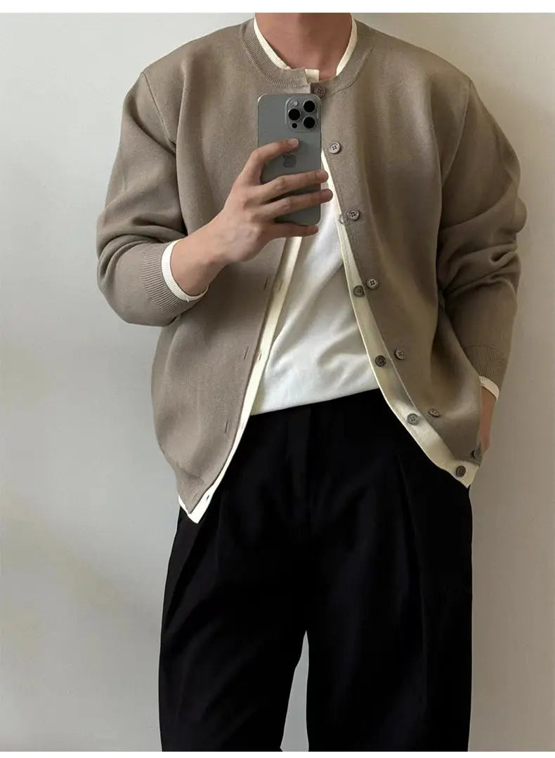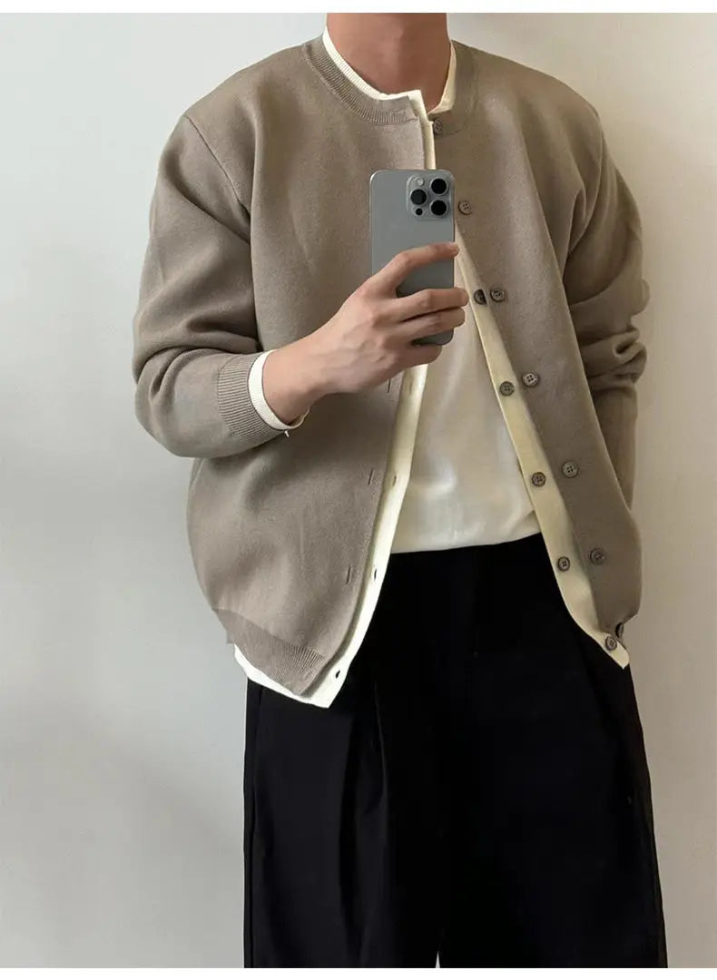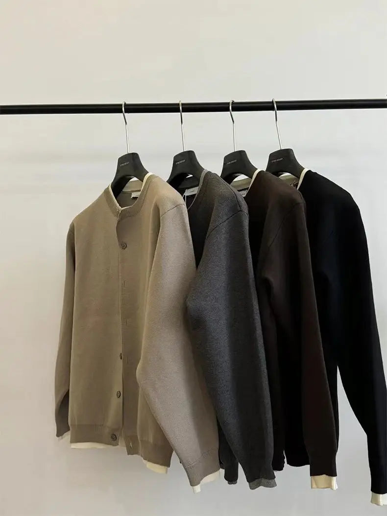 WIAOFELLAS  -  Thickened knitted cardigan fake two pieces wear simple round neck long sleeves lazy layered sweater jacket