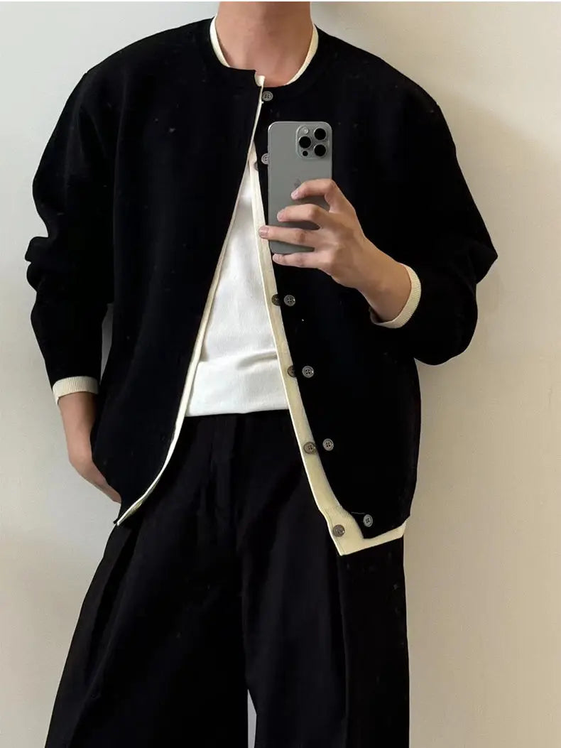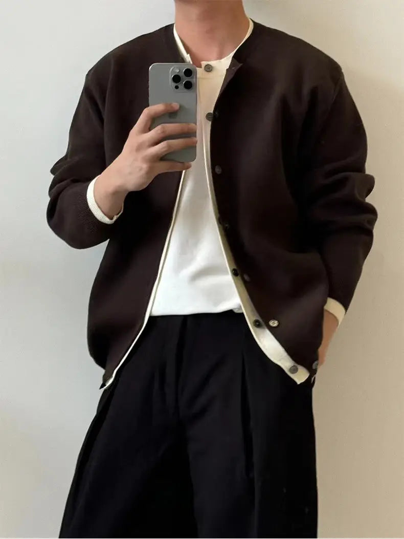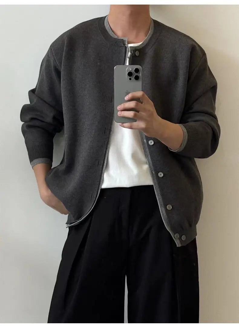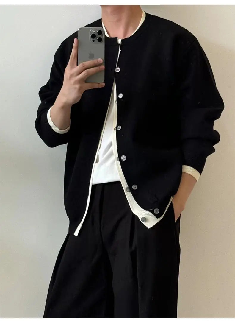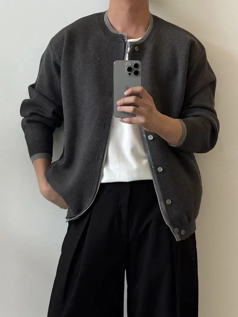 WIAOFELLAS  -  Thickened knitted cardigan fake two pieces wear simple round neck long sleeves lazy layered sweater jacket