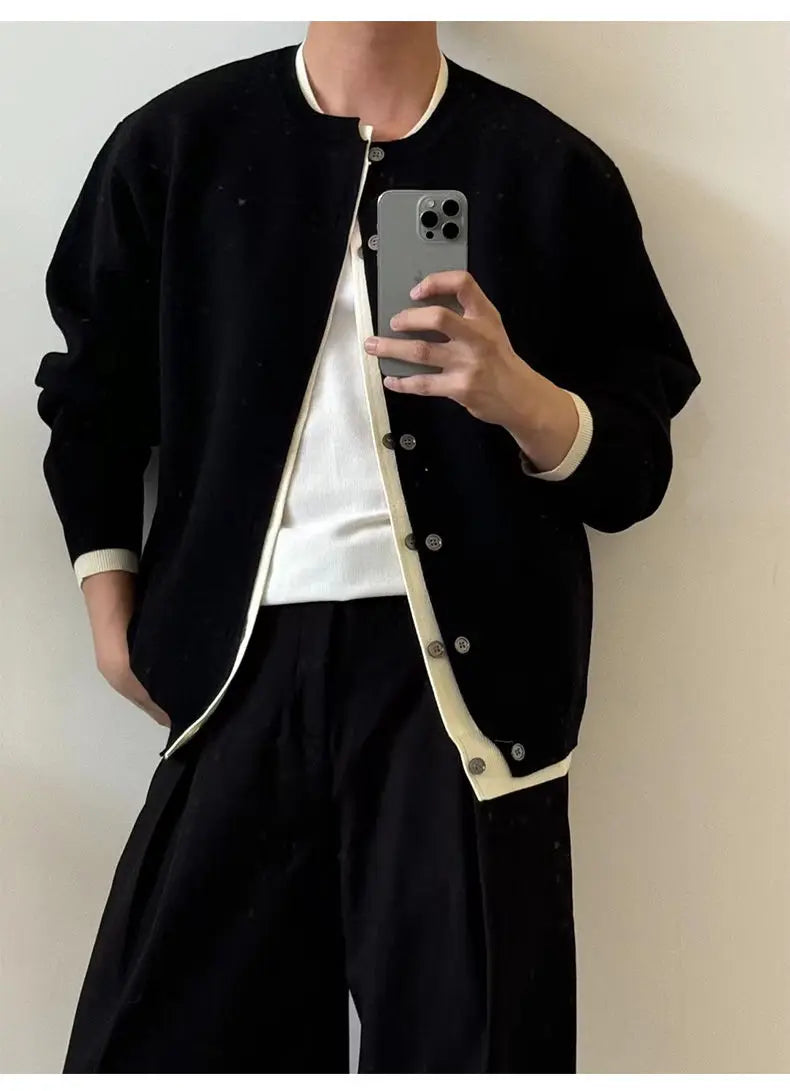 WIAOFELLAS - Thickened knitted cardigan fake two pieces wear simple round neck long sleeves lazy layered sweater jacket