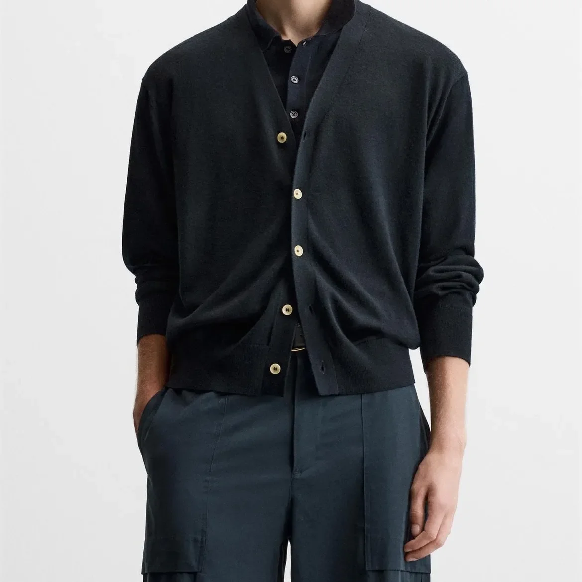 WIAOFELLAS - Thin Knitted Sweater Solid Color Versatile Spring and Autumn New Style Men's Korean Cardigan Simple Casual Sweater Jacket