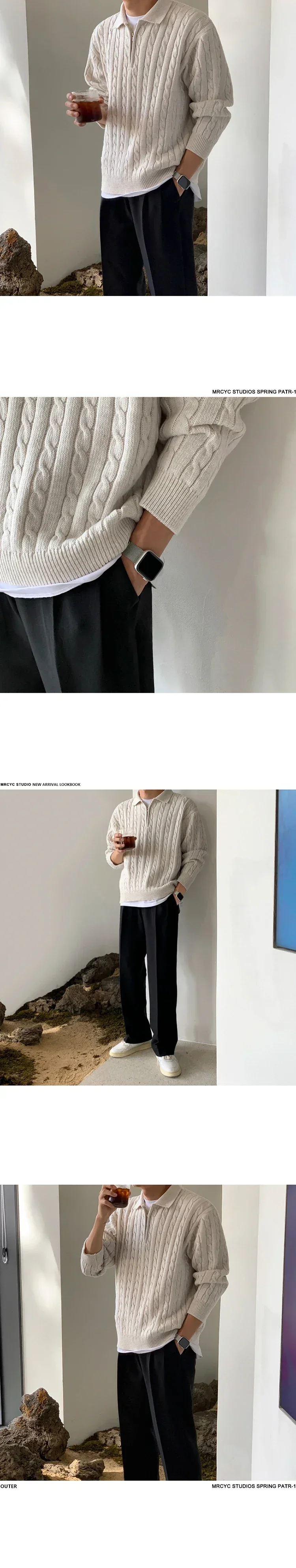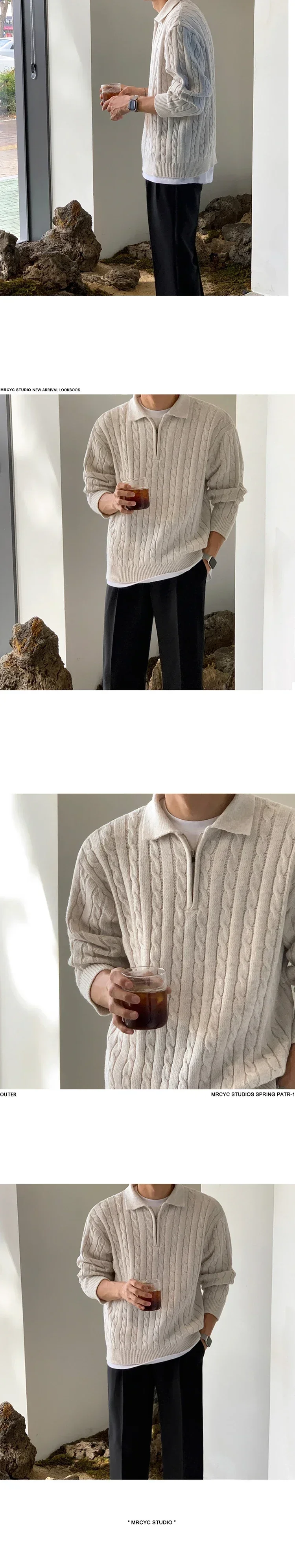 WIAOFELLAS - Trendy Men Knitted Pullover Half Zip Lapel Design Korean Loose Long Sleeve Solid Color New Casual Sweater