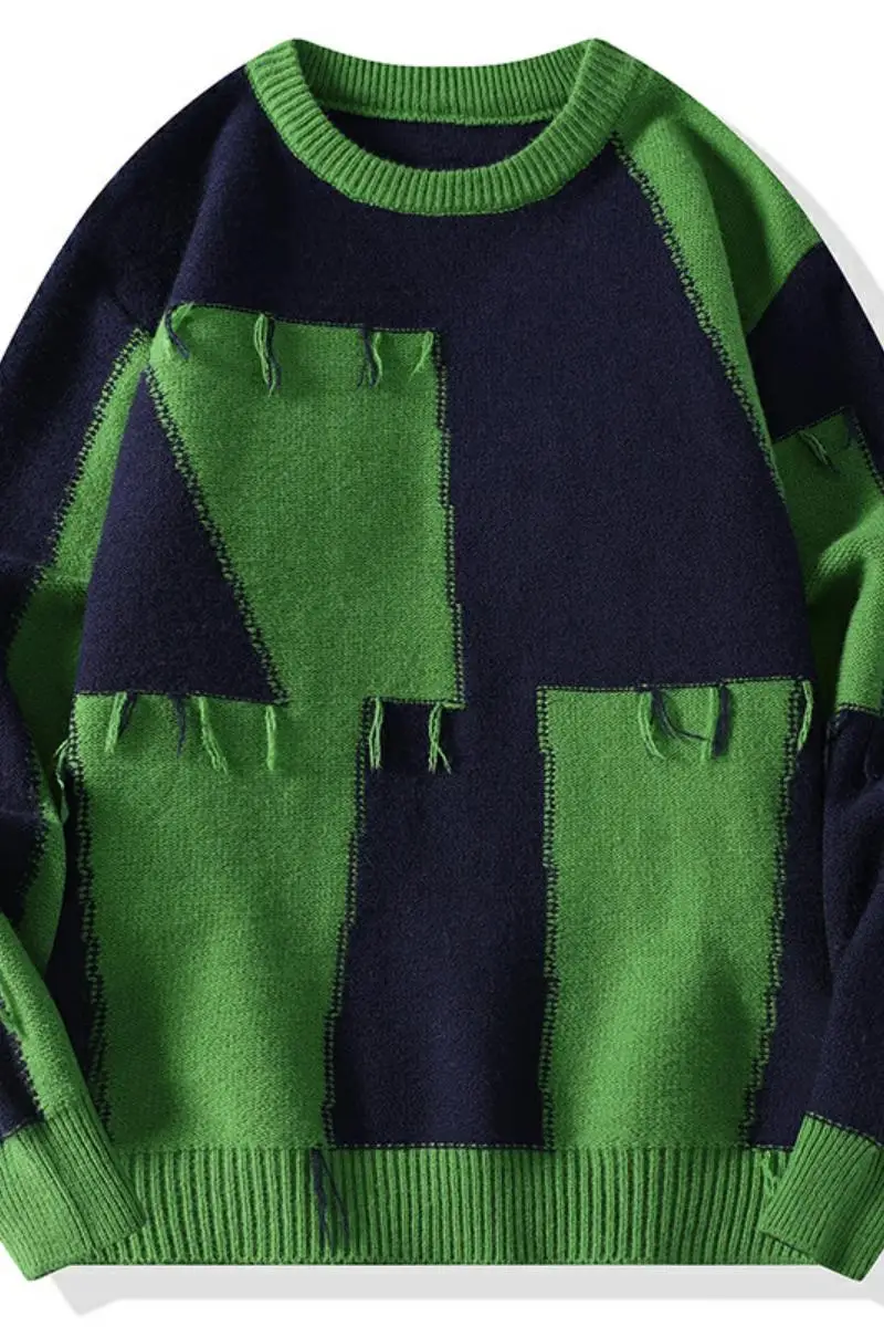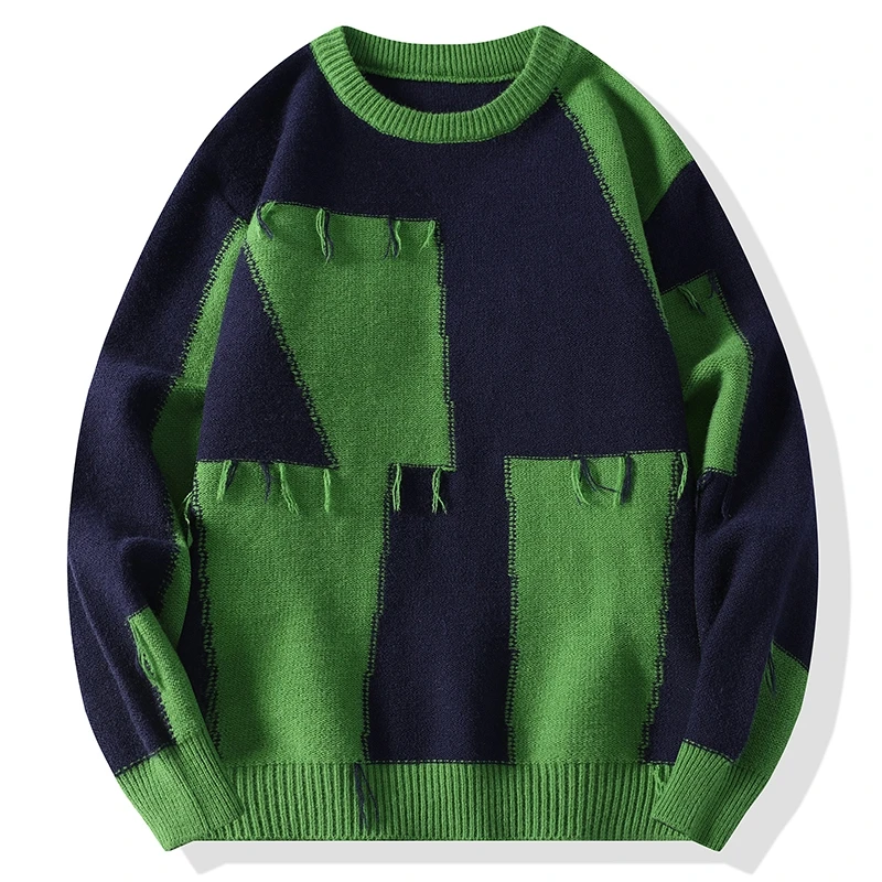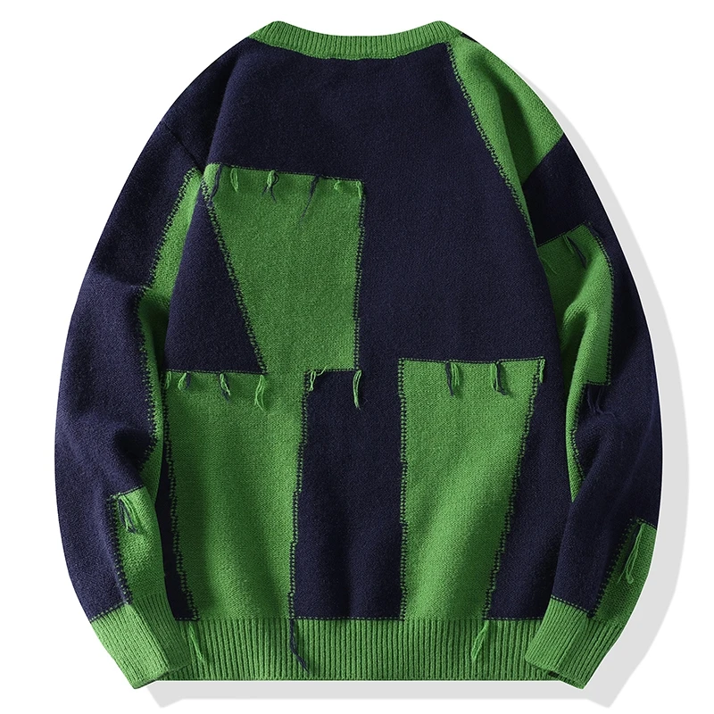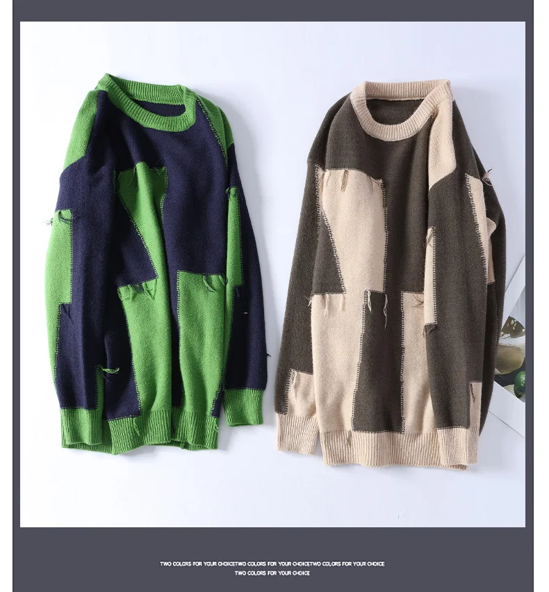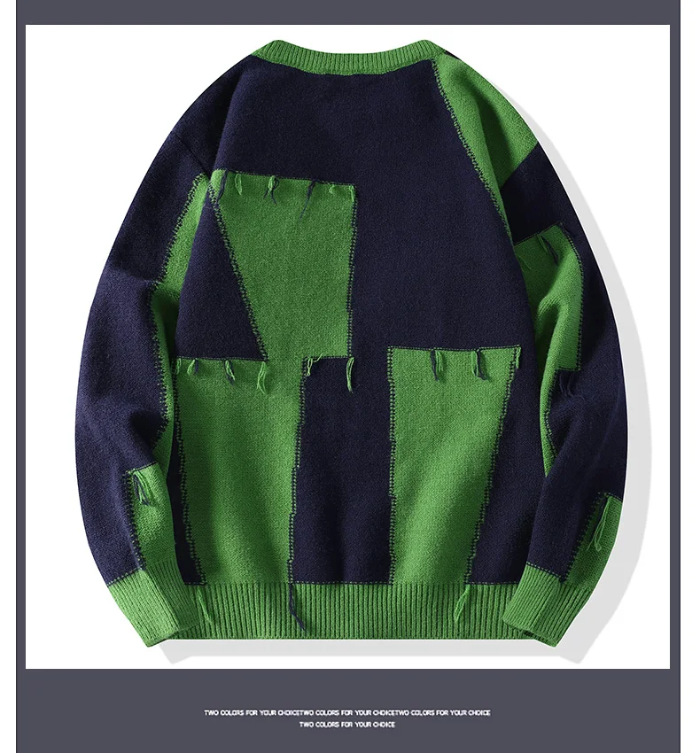 WIAOFELLAS - Trendy Spring Sweater Loose Thick Streetwear Men Winter Spliced Knitted Sweater Men Pullover Men O-Neck Sweater