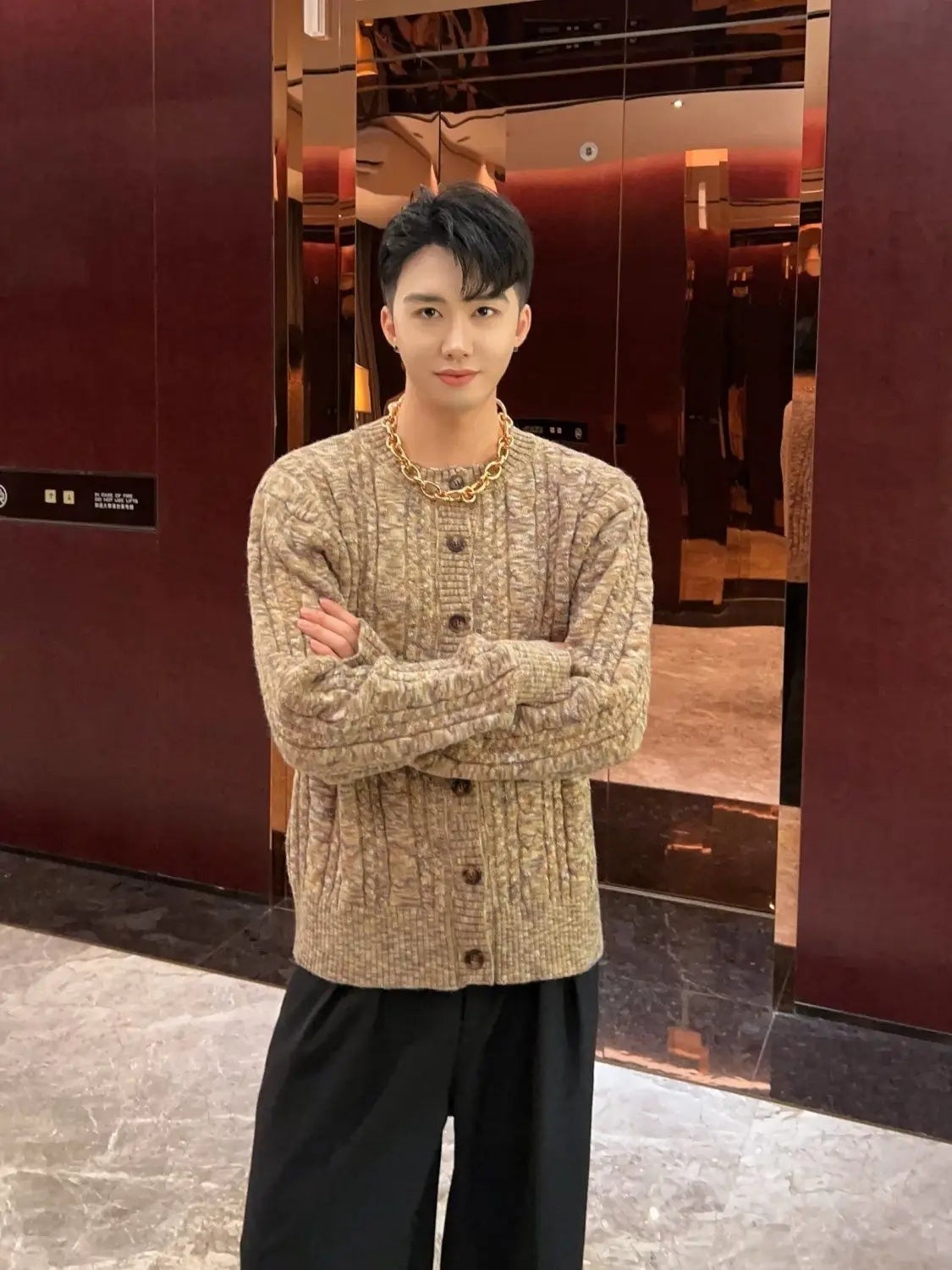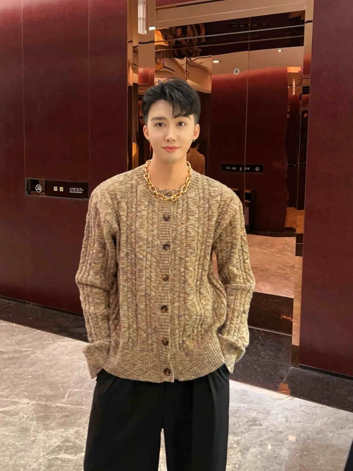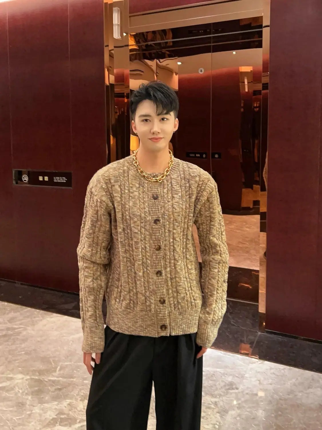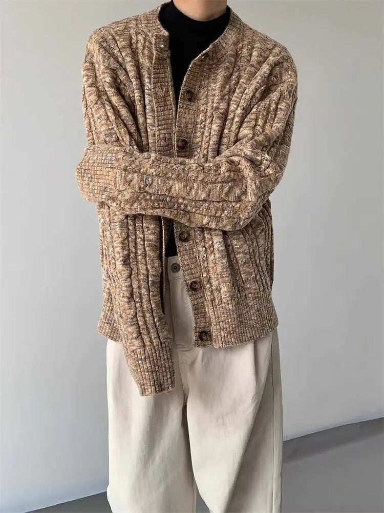 WIAOFELLAS - umn and winter knitted sweater men contrasting color old money style knitted cardigan loose retro twist lazy sweater jacket men