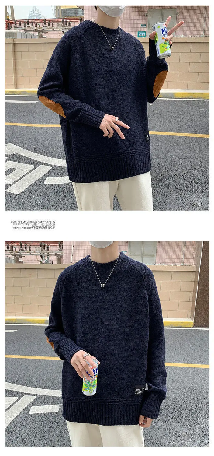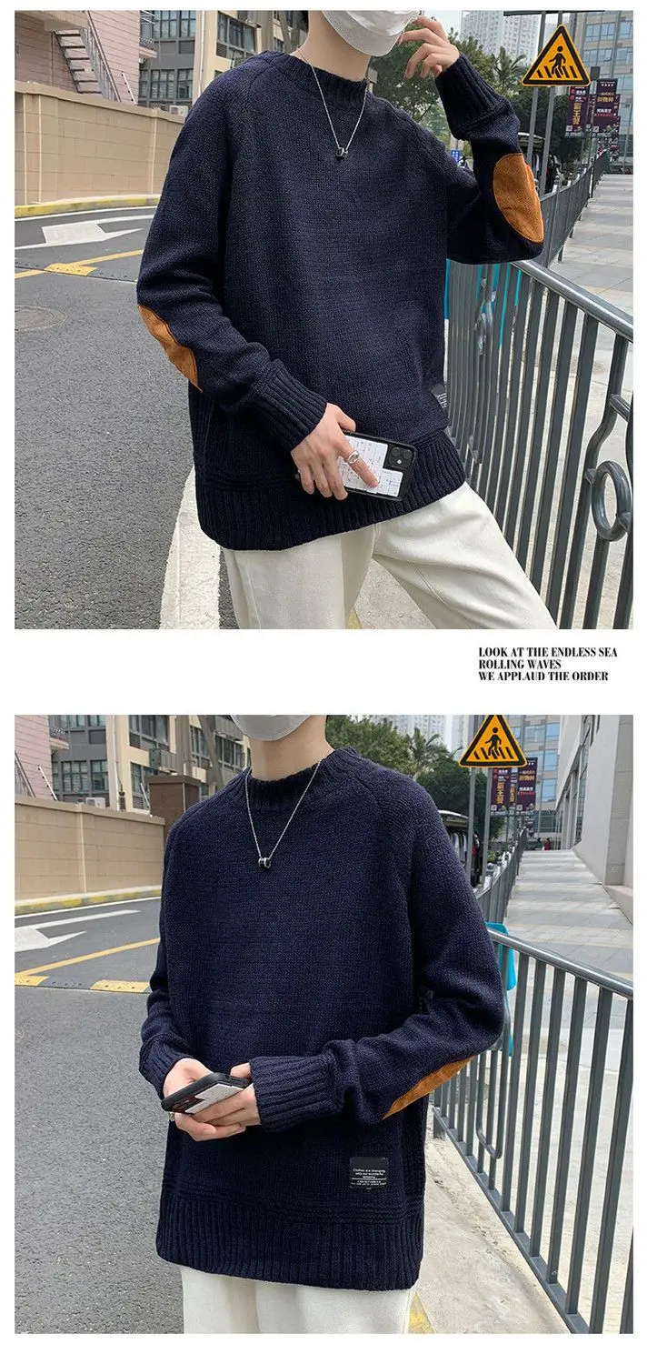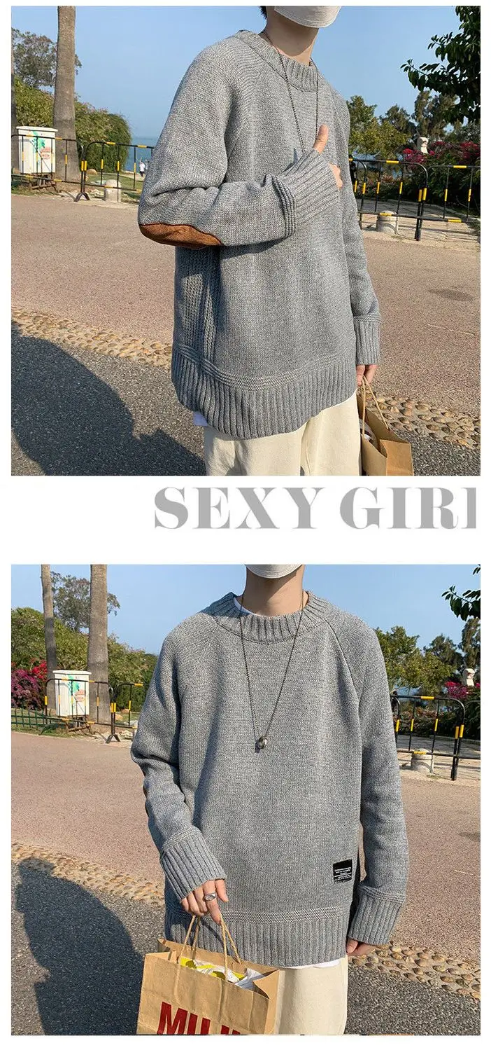 WIAOFELLAS - Winter Fashion Korean Edition Thickened Round Neck Panel Loose and Versatile Puppy Handsome Student Knitted Long Sleeve Sweater