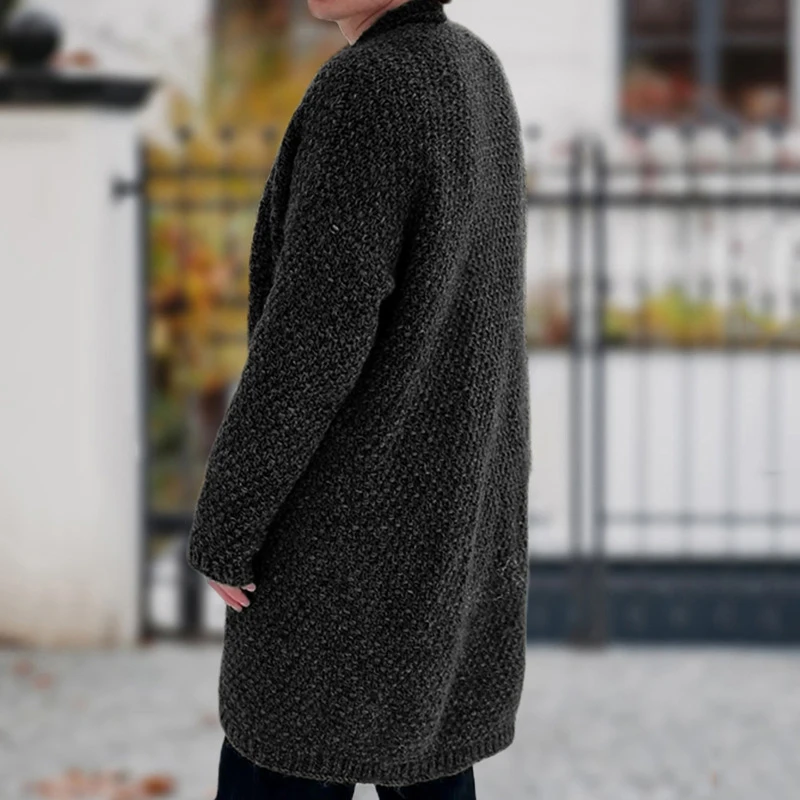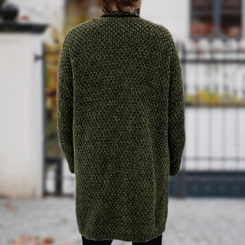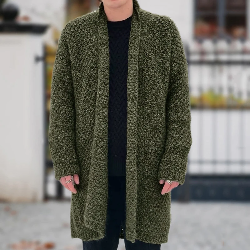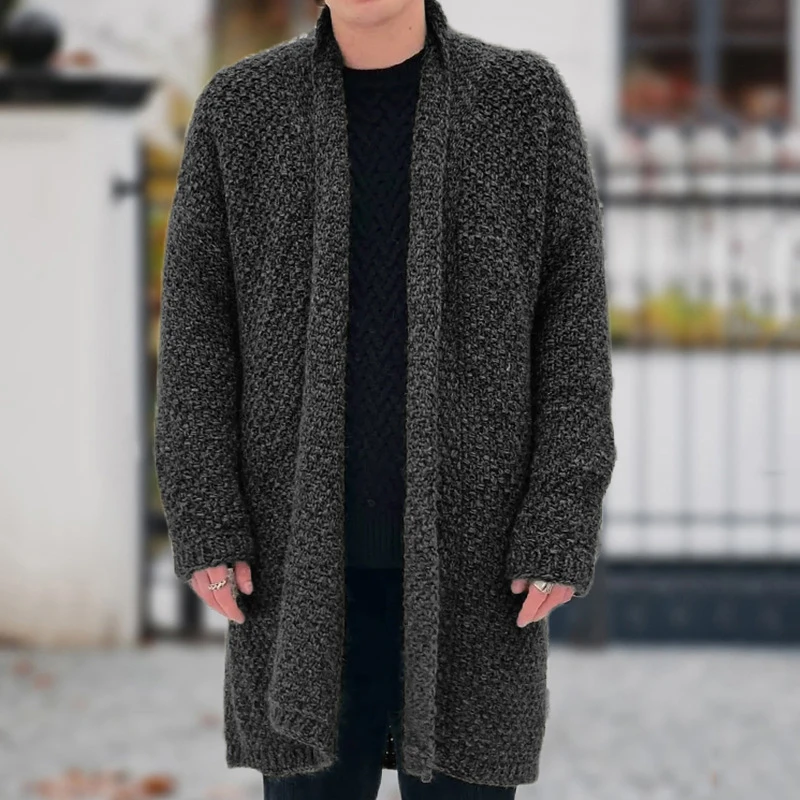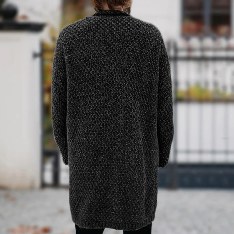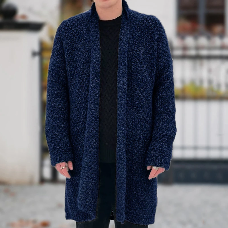 Wiaofellas - Winter Thickness Crochet Long Sleeve Knit Jackets Men's Casual V-Neck Jumpers Vintage Loose Knitted Solid Sweater Cardigan
