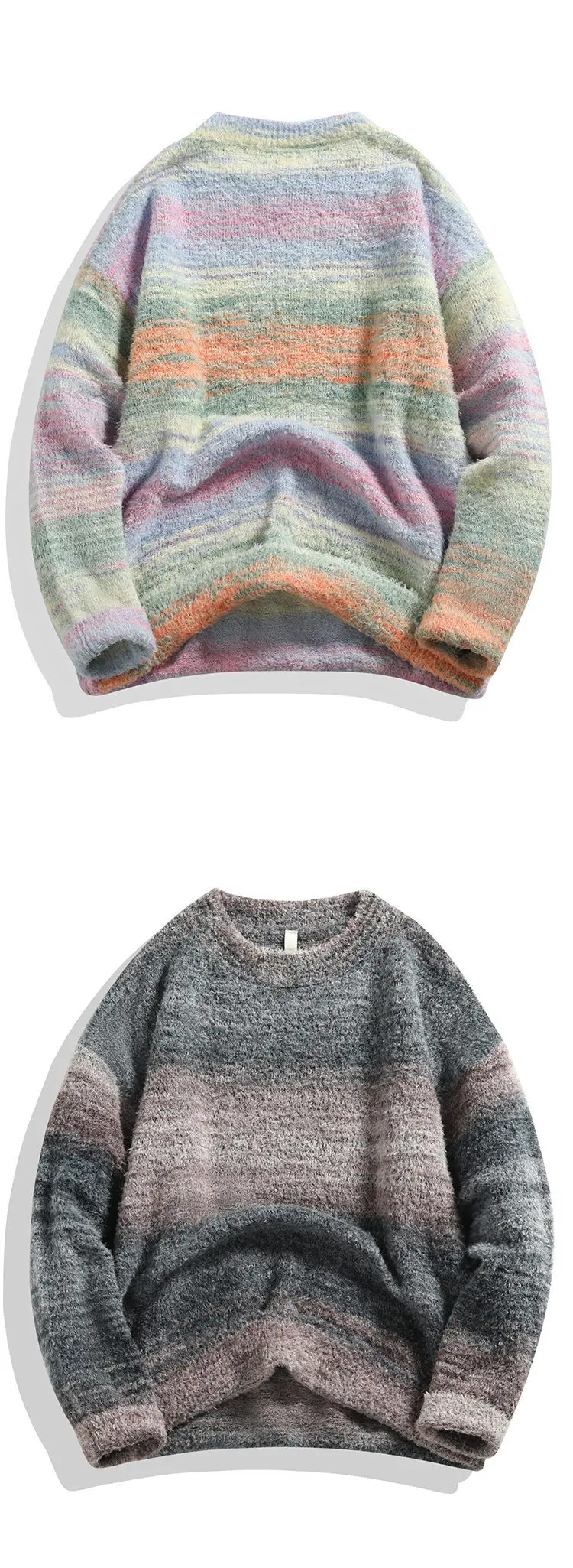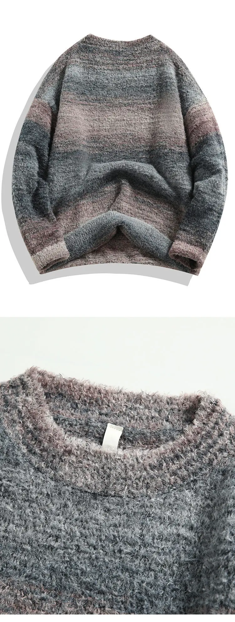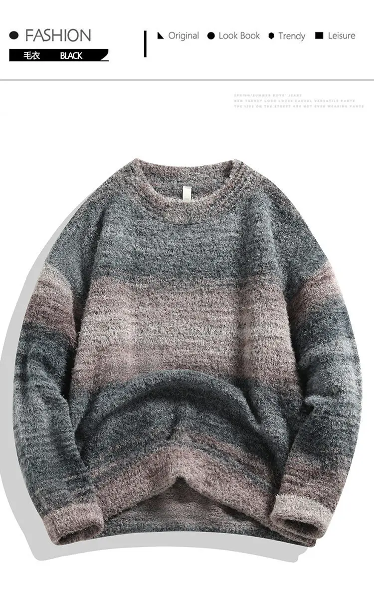 Wiaofellas  -  Winter Velvet Sweater Men Warm Color Casual Knitted Pullover Men Streetwear Loose Long Sleeved Sweater Mens Jumper Clothes