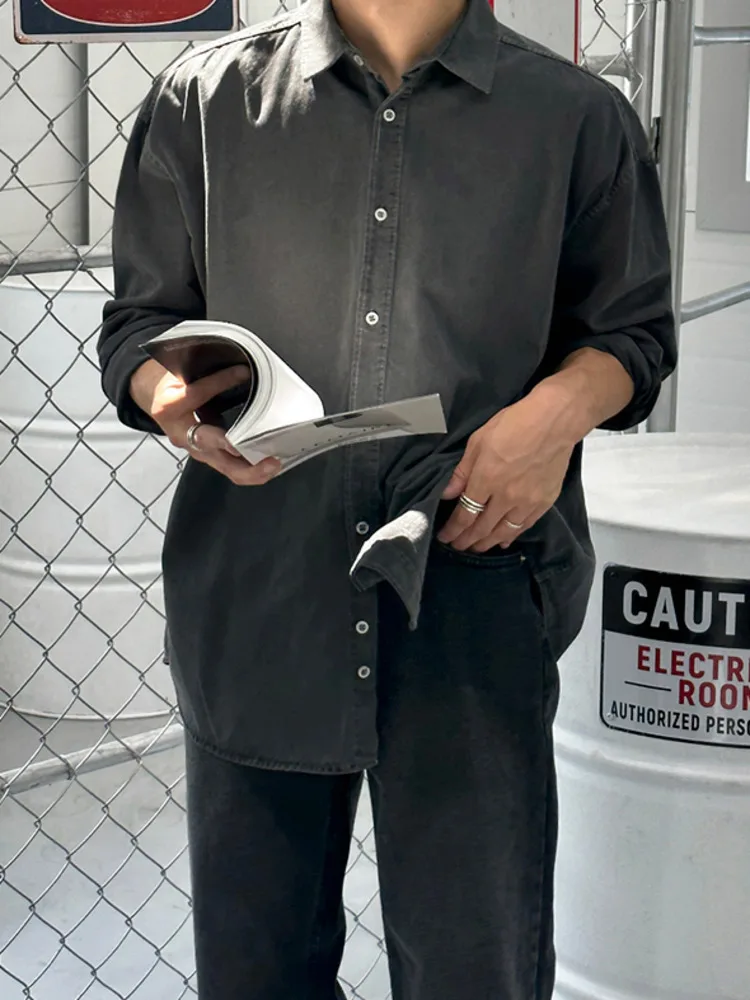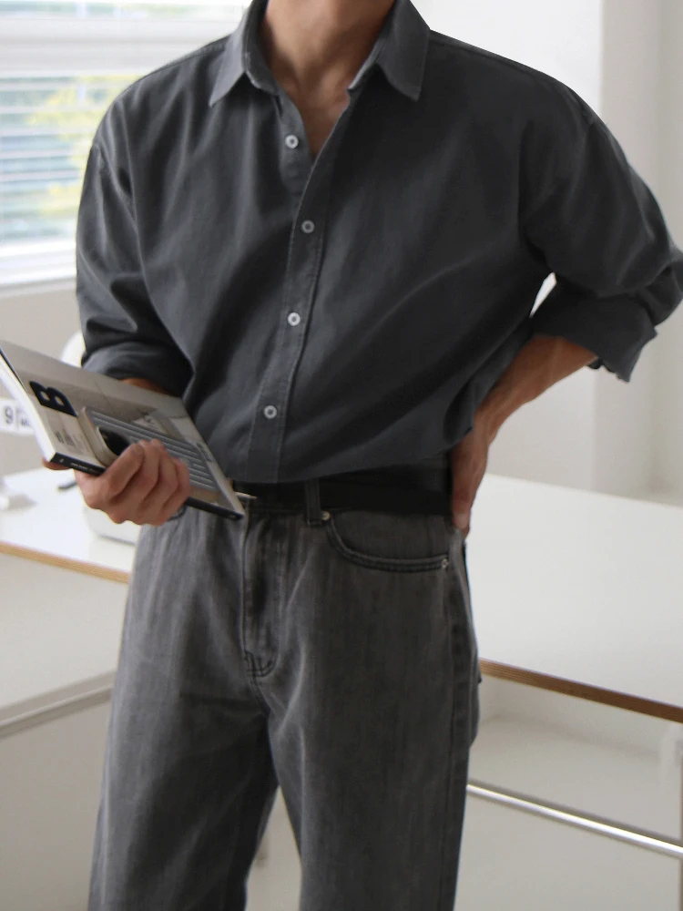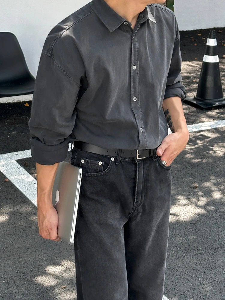 Wiaofellas - fall outfit men Fashion Men's Shirts Solid Color Turn-down Collar Long Sleeve Casual Long Sleeve Single Breasetd Male Top Autumn