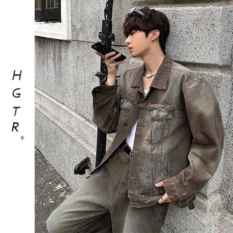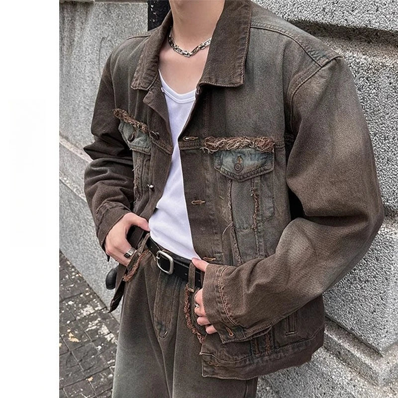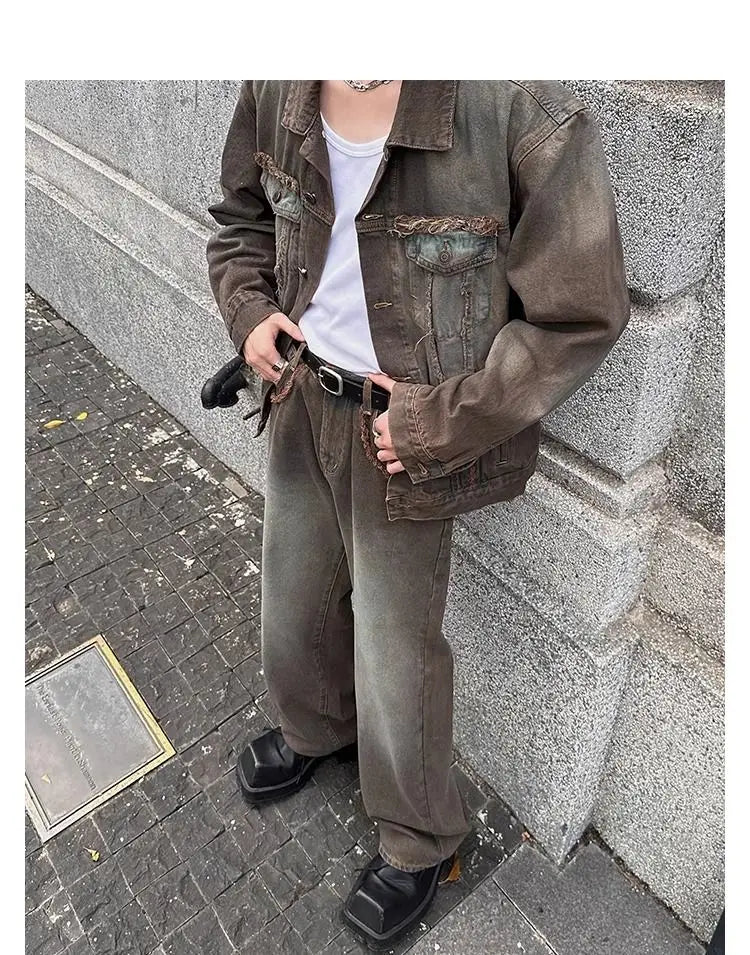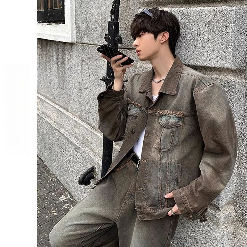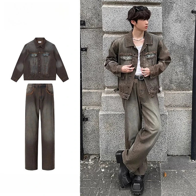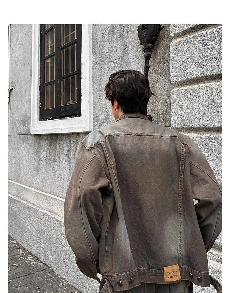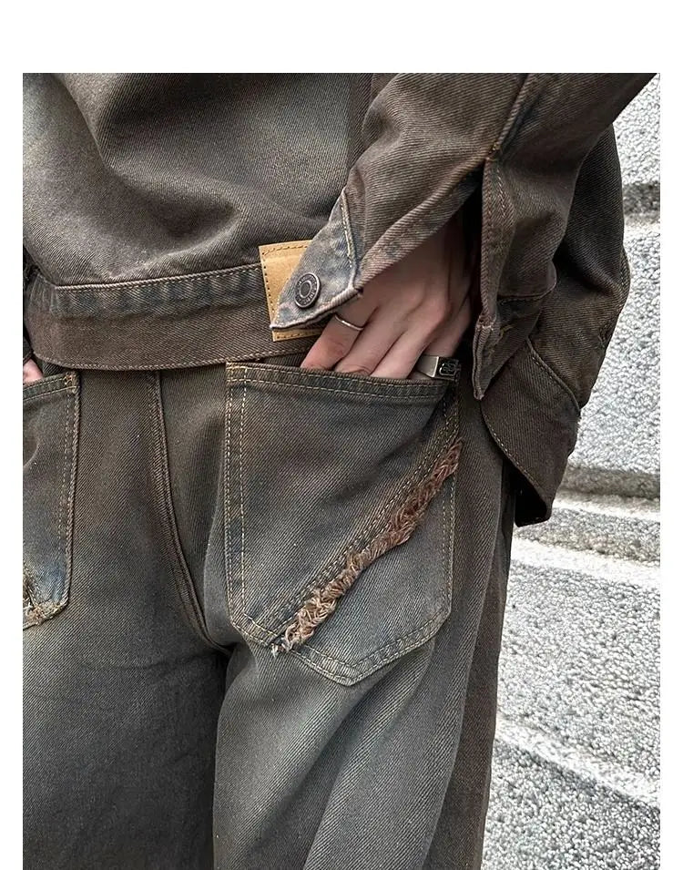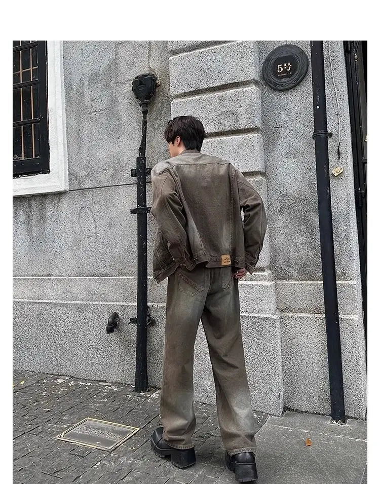 WIAOFELLAS - Autumn and winter Maillard style retro heavy washing and old versatile denim jacket couple set