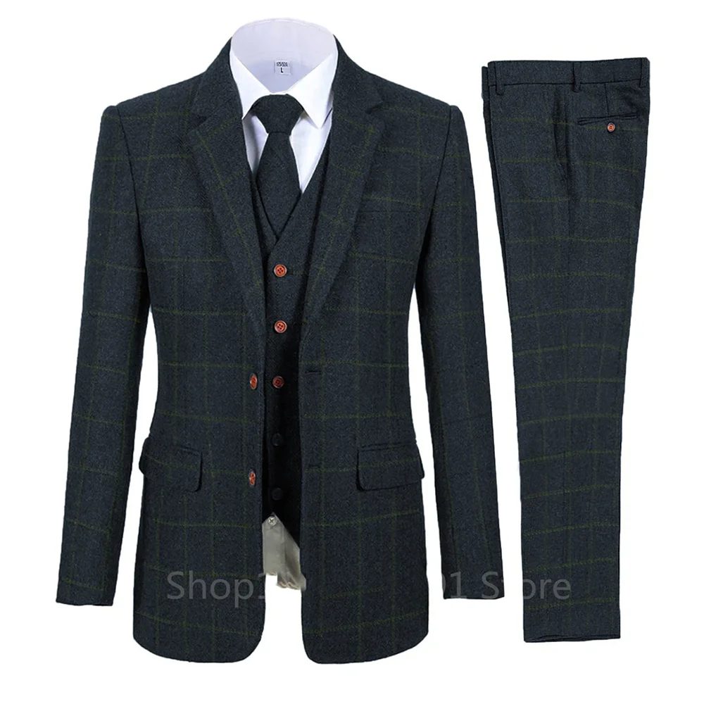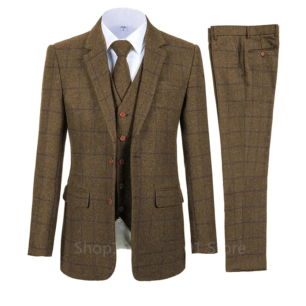Wiaofellas Classic Plaid Men's Suits Notch Lapel Single Breasted Party Prom Tuxedo Blazer Groomsmen Wedding Suits Full Set Custom Made