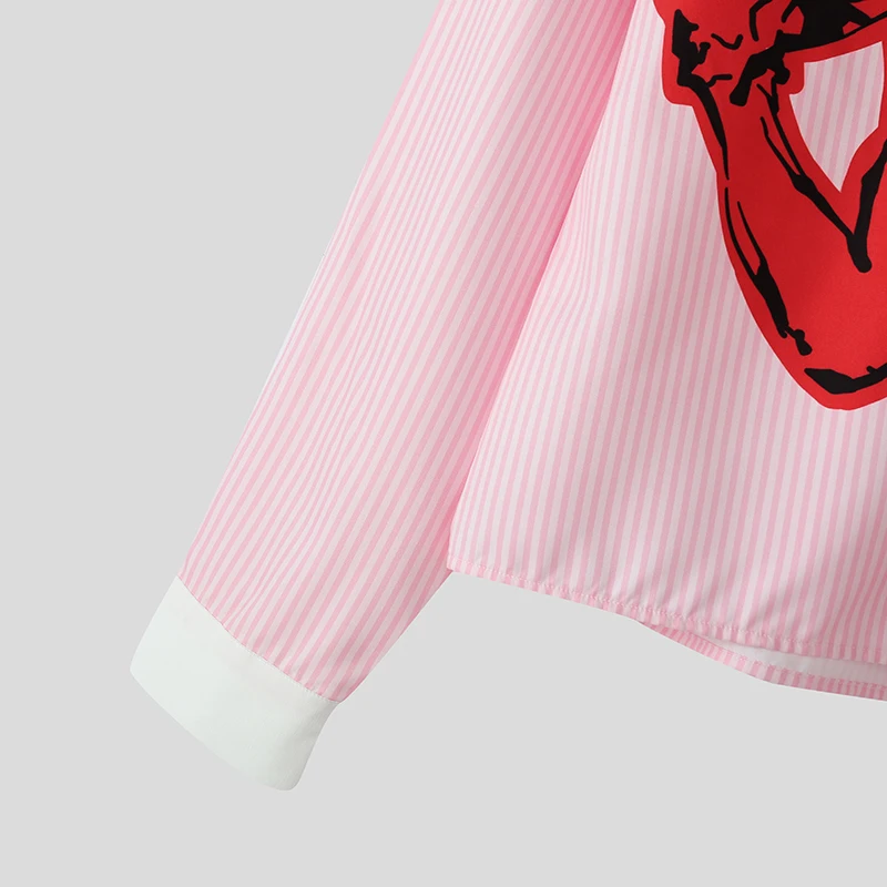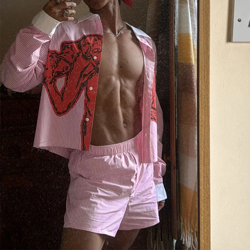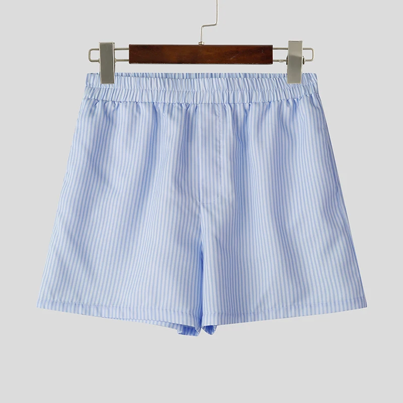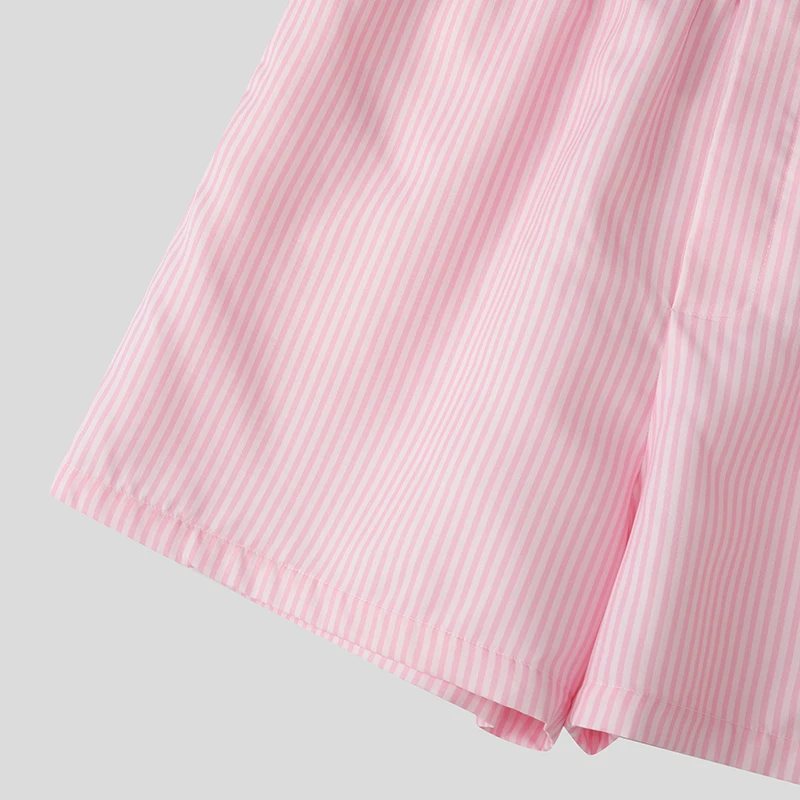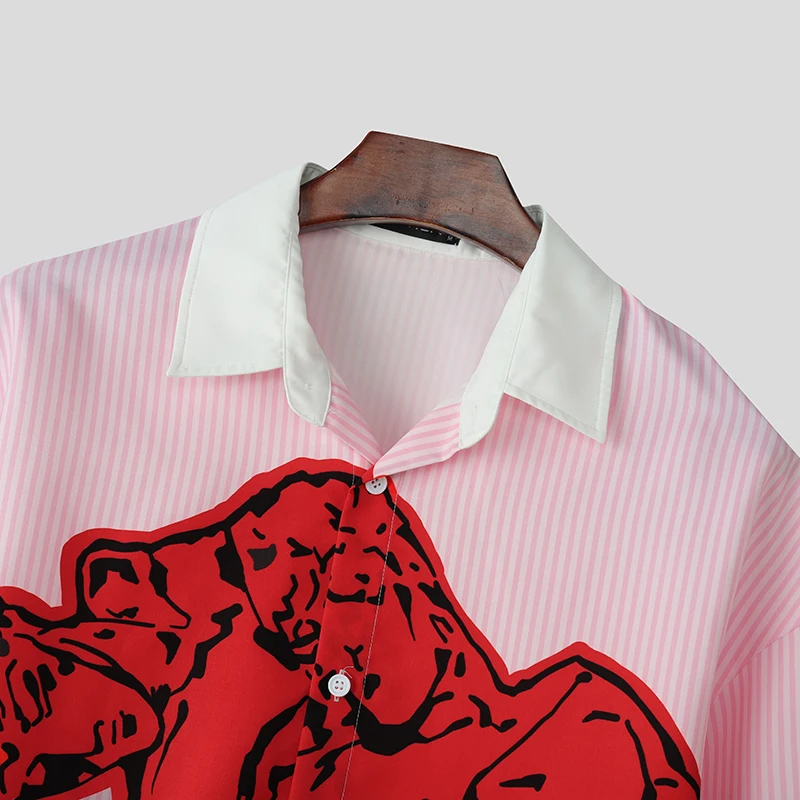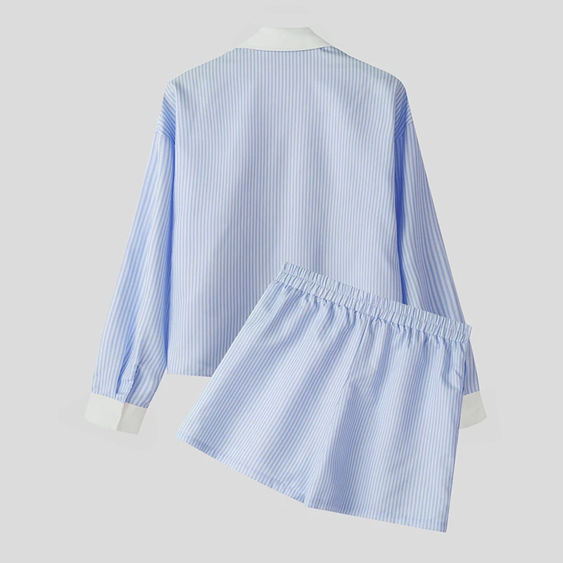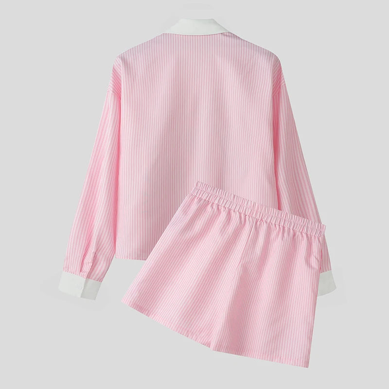 WIAOFELLAS - Men Sets Printing Striped Patchwork Streetwear Lapel Long Sleeve Shirt Crop Tops & Shorts Two Pieces Sets 2025 Men Suits