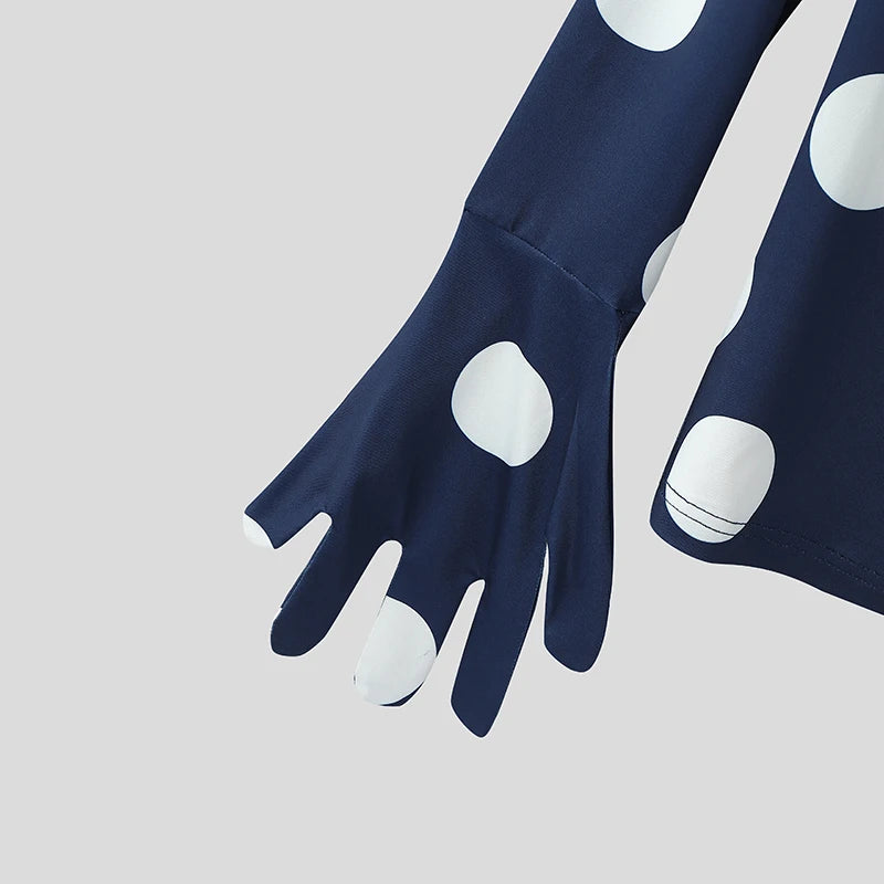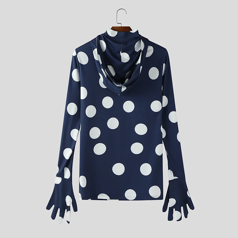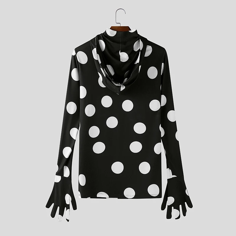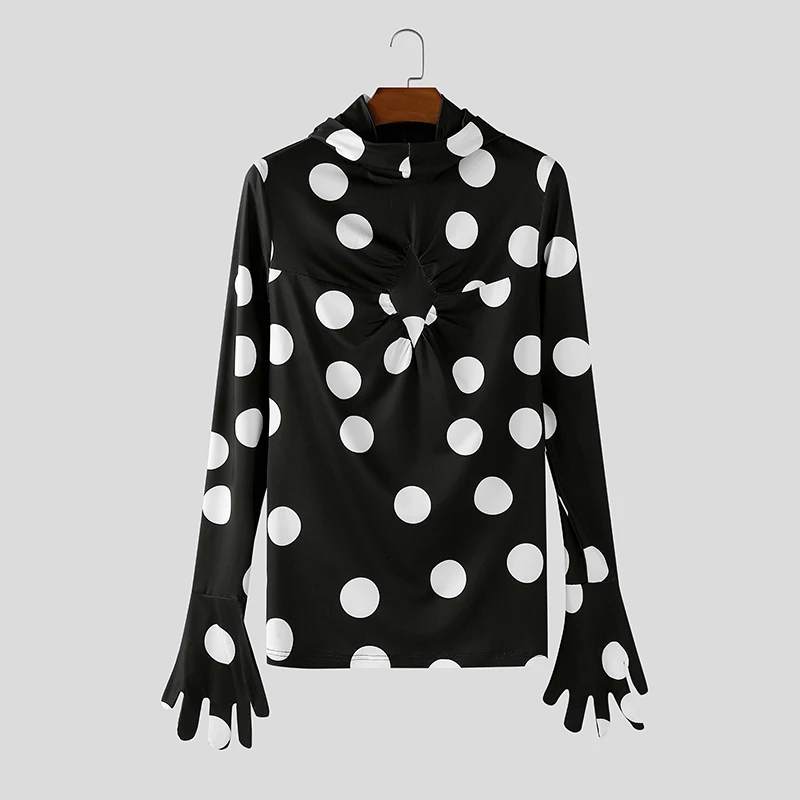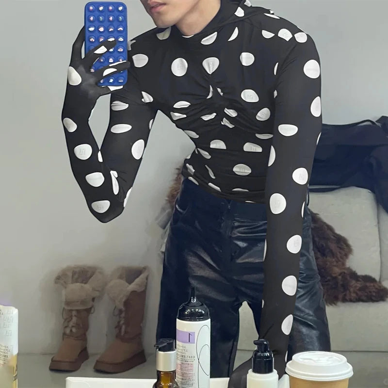 WIAOFELLAS - Men T Shirt Polka Dot Printing Turtleneck Gloves Long Sleeve Male Tee Tops Streetwear Pleated Fashion Casual Camisetas