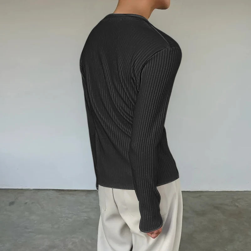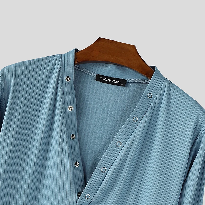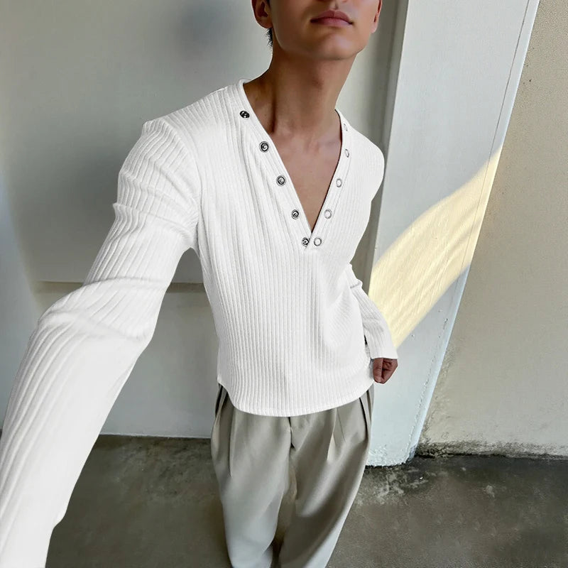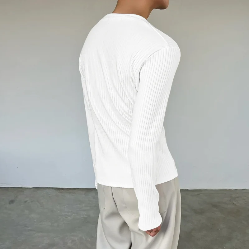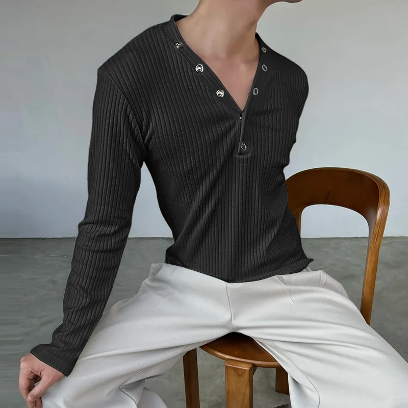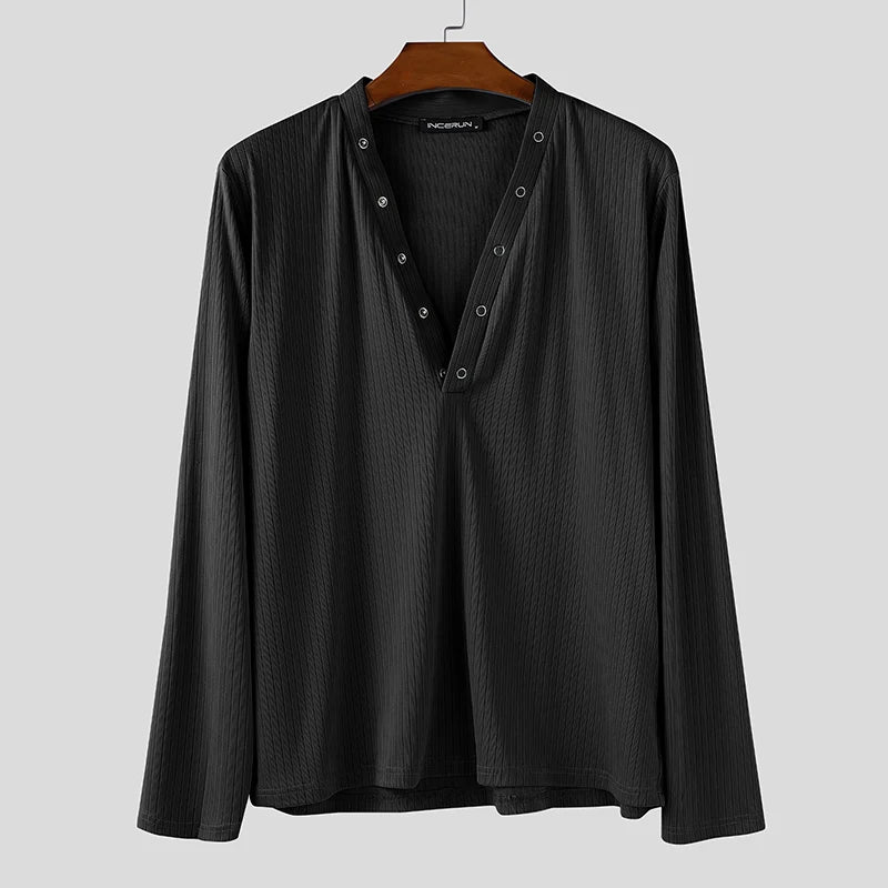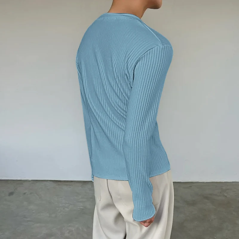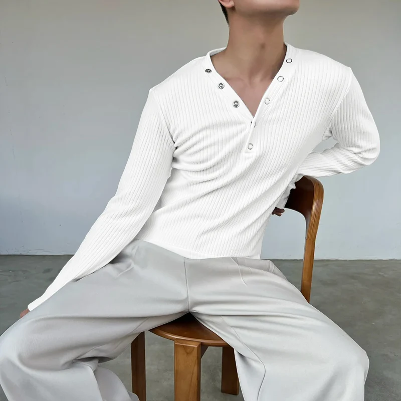 WIAOFELLAS - Men T Shirt Solid Color V Neck Long Sleeve Knitted Male Tee Tops Streetwear Fashion Casual Men Clothing Camisetas S-3XL