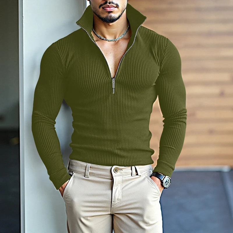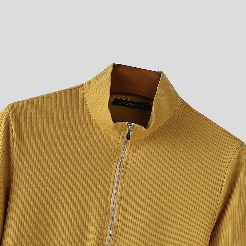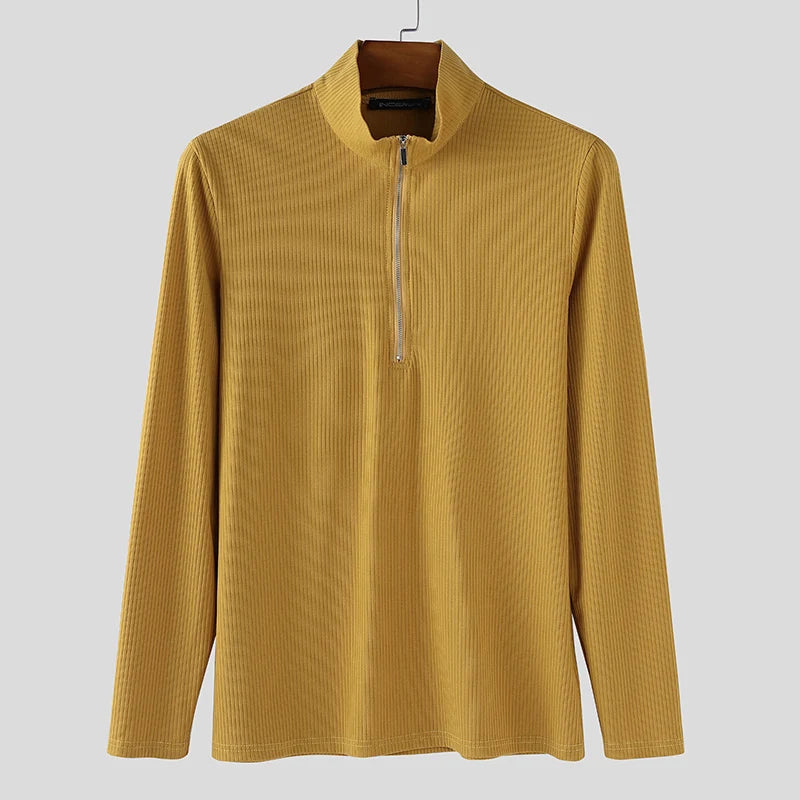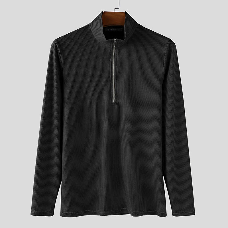 WIAOFELLAS - Men T Shirts Solid Color Long Sleeve Zipper Male Tee Tops Knitted Streetwear Fashion Casual Camisetas Men Clothing S-3XL