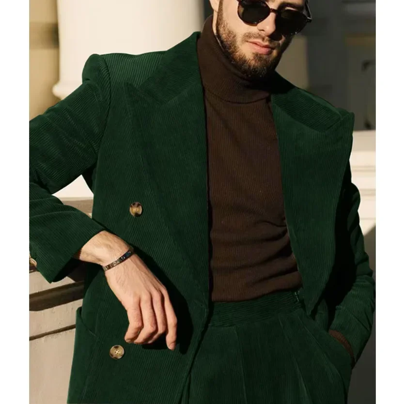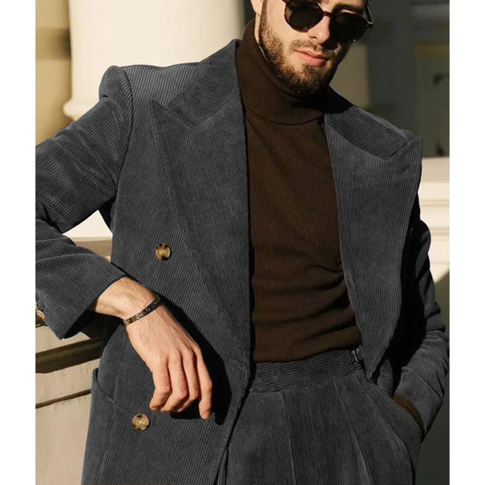 Wiaofellas - Men's Suit Corduroy 2 Pieces Groomsman Party Hallowen Costume Fashionable Casual Comfortable Work Wear Man Pant Sets