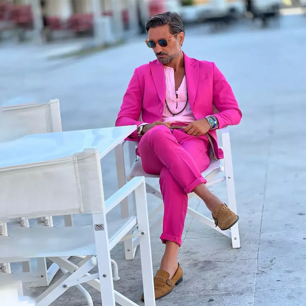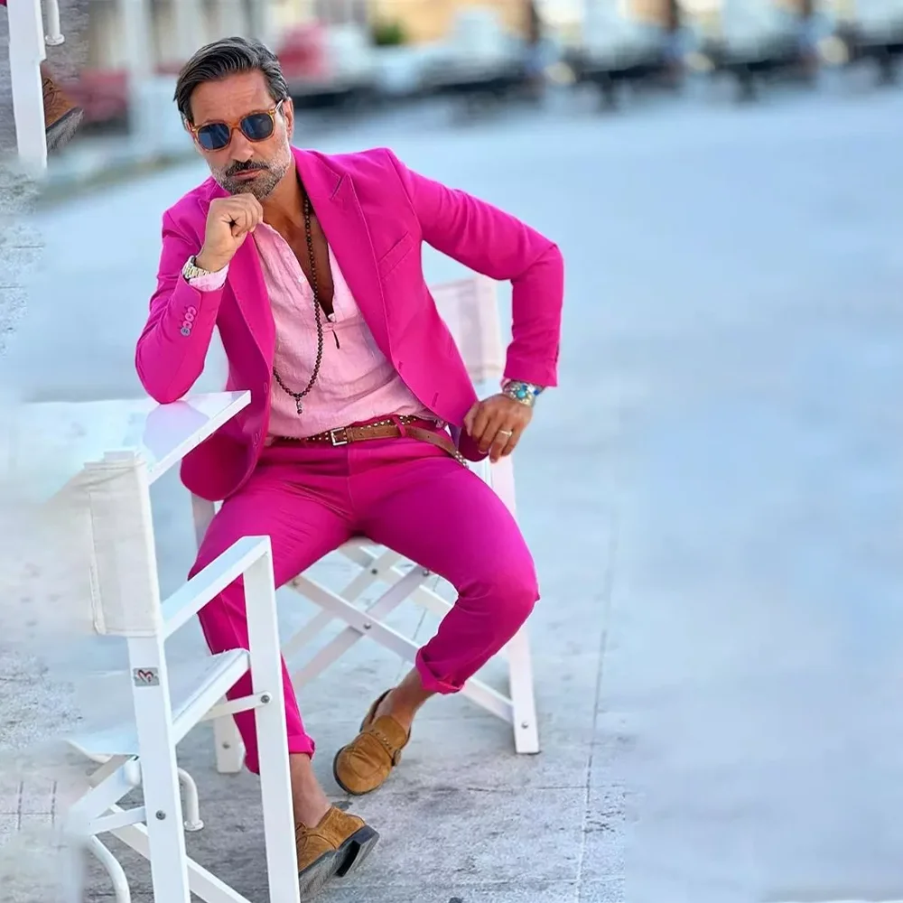 WIAOFELLAS - Men's Suits Two Piece Summer Peak Lapel Single Breasted Male Suit Elegant and Fashionable Breathable Solid Mens Clothing