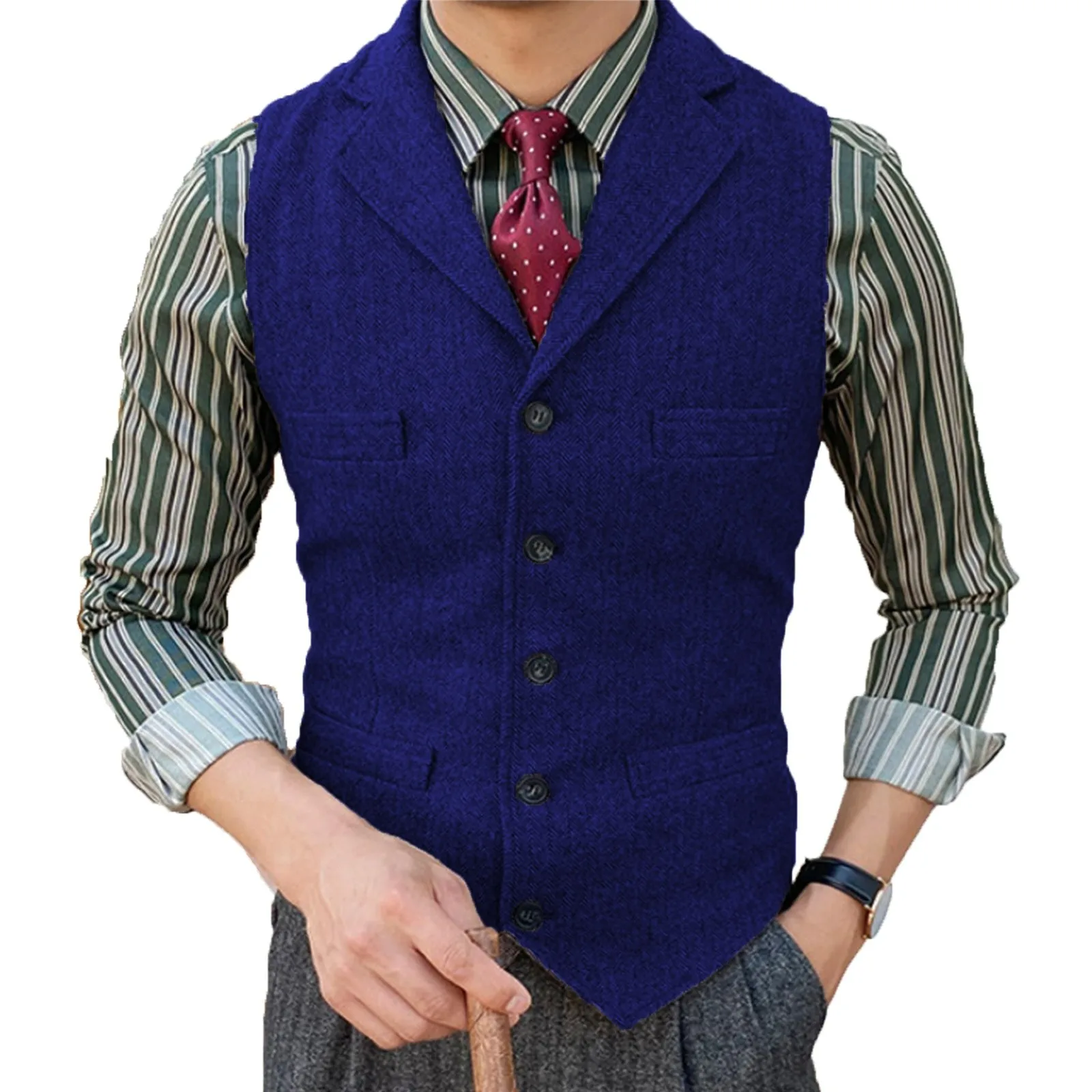 Wiaofellas - Men's Vest Burgundy Slim Fit Suits Vest Tweed Notch Lapel Wool Business Casual Waistcoat Grossmen For Wedding